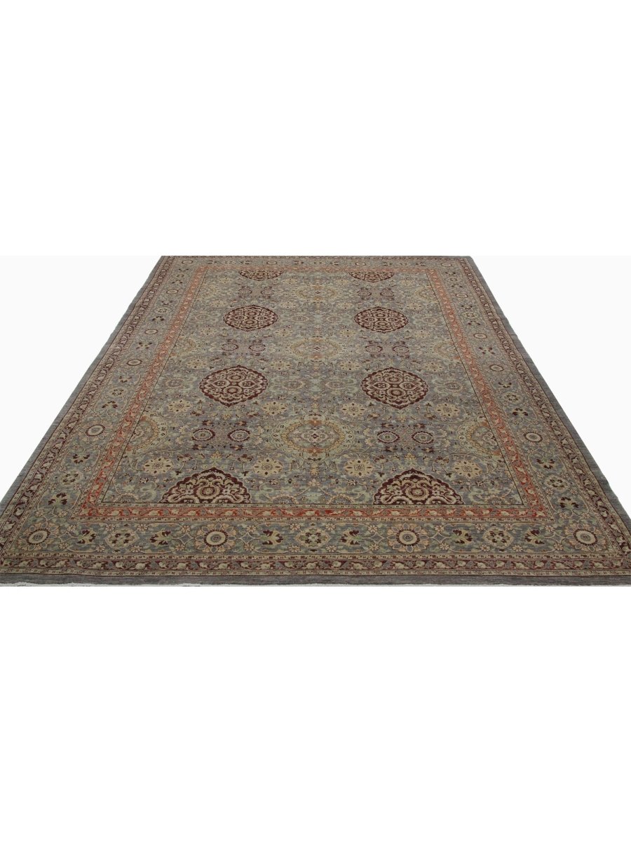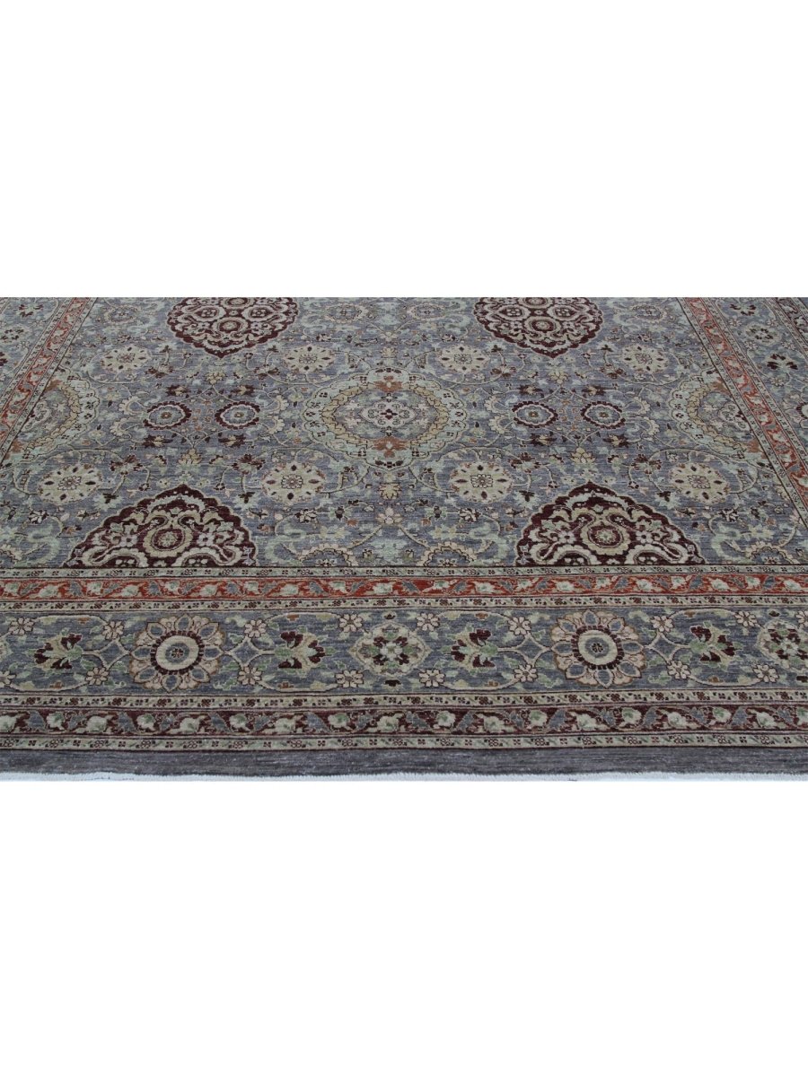 Discover the captivating appeal of the 10x14 Pakistani Transitional Area Rug, perfect for both transitional and traditional spaces. Hand-knotted from premium wool, this exquisite rug features a geometric design that adds character and personality to any room. Its warm and inviting blend of gray, reddish-orange, burgundy, green, cream, and brown hues creates a cozy ambiance, making it a versatile choice for a variety of interior styles. More than just a rug, it’s a stunning piece of art that enhances your décor. Enjoy free U.S. delivery on this exceptional accent piece.