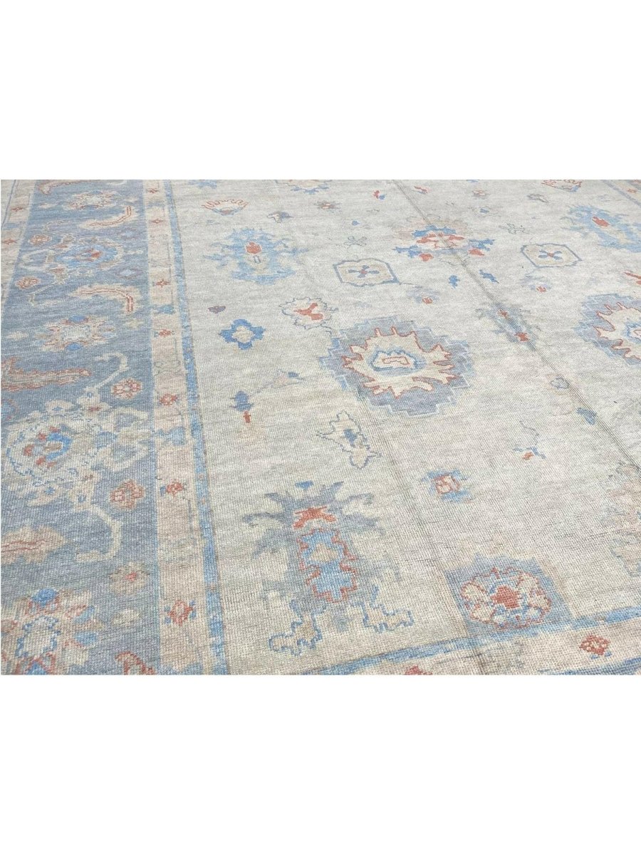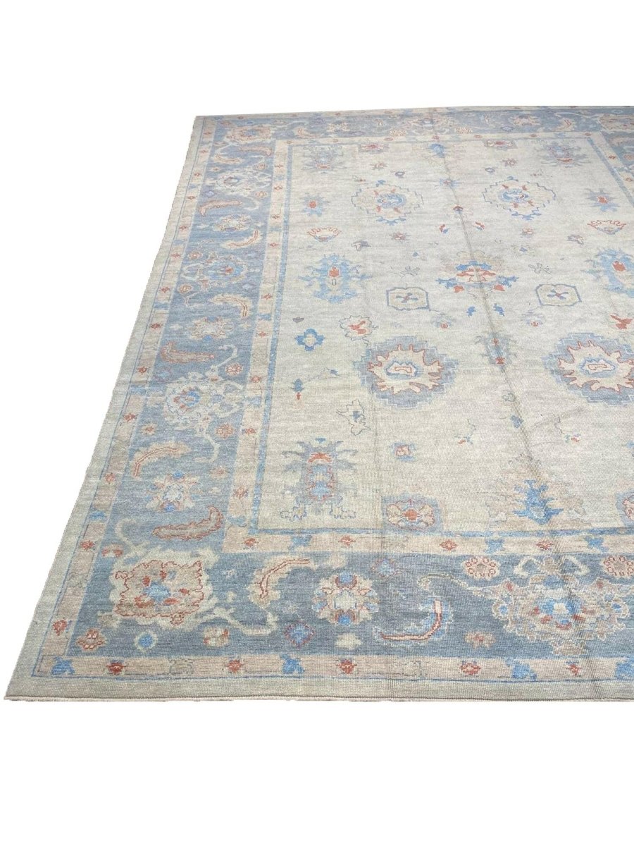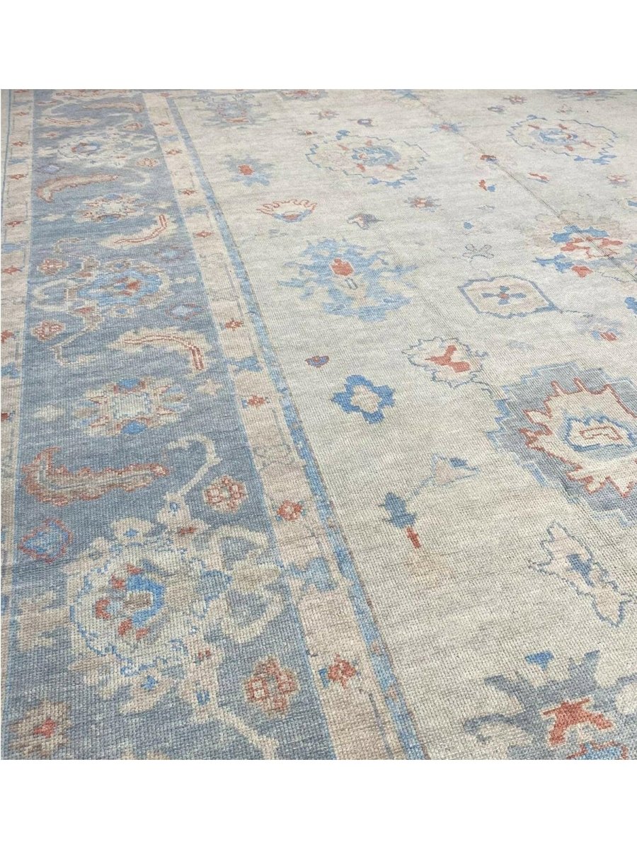 The 12x15 Turkish Oushak Area Rug, is a unique treasure that embodies the rich history of Turkish weaving and will elevate your decor. Made from high-quality wool, this gorgeous rug features a geometric design that blends in perfectly with any type of interior design. It provides a friendly atmosphere and is perfect for large dining rooms, comfortable living spaces, or as a chic addition in your workplace. It is a flexible addition to your house because of the rich blend of red, beige, blue, and gray tones that offer depth and character. This amazing traditional rug is a stunning work of art that elevates your living area and goes beyond simple decoration. Take advantage of free US delivery.