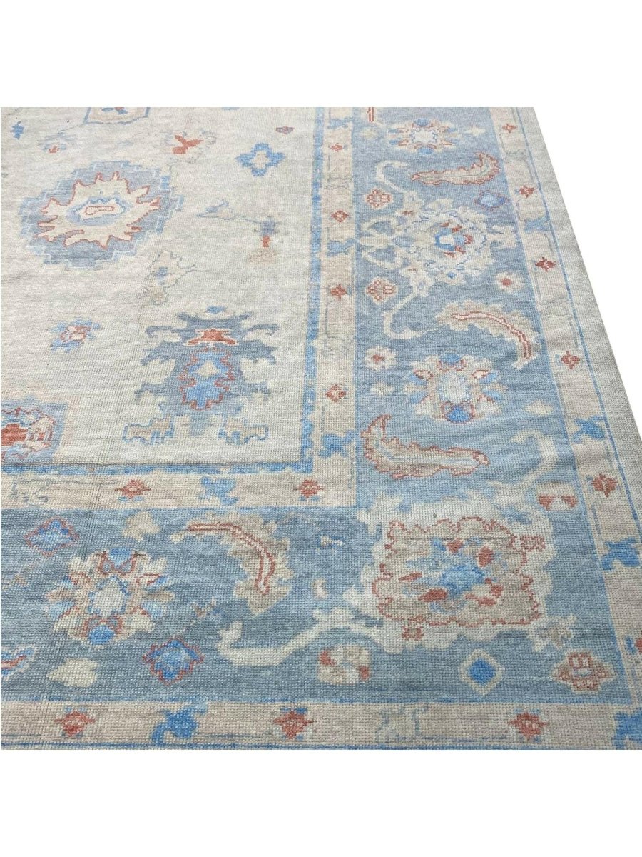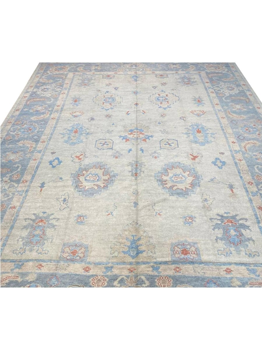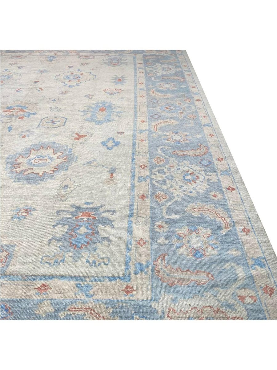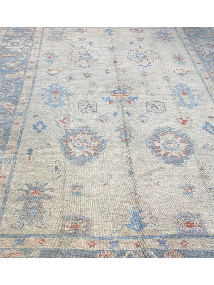 The 12x15 Turkish Oushak Area Rug, is a unique treasure that embodies the rich history of Turkish weaving and will elevate your decor. Made from high-quality wool, this gorgeous rug features a geometric design that blends in perfectly with any type of interior design. It provides a friendly atmosphere and is perfect for large dining rooms, comfortable living spaces, or as a chic addition in your workplace. It is a flexible addition to your house because of the rich blend of red, beige, blue, and gray tones that offer depth and character. This amazing traditional rug is a stunning work of art that elevates your living area and goes beyond simple decoration. Take advantage of free US delivery.