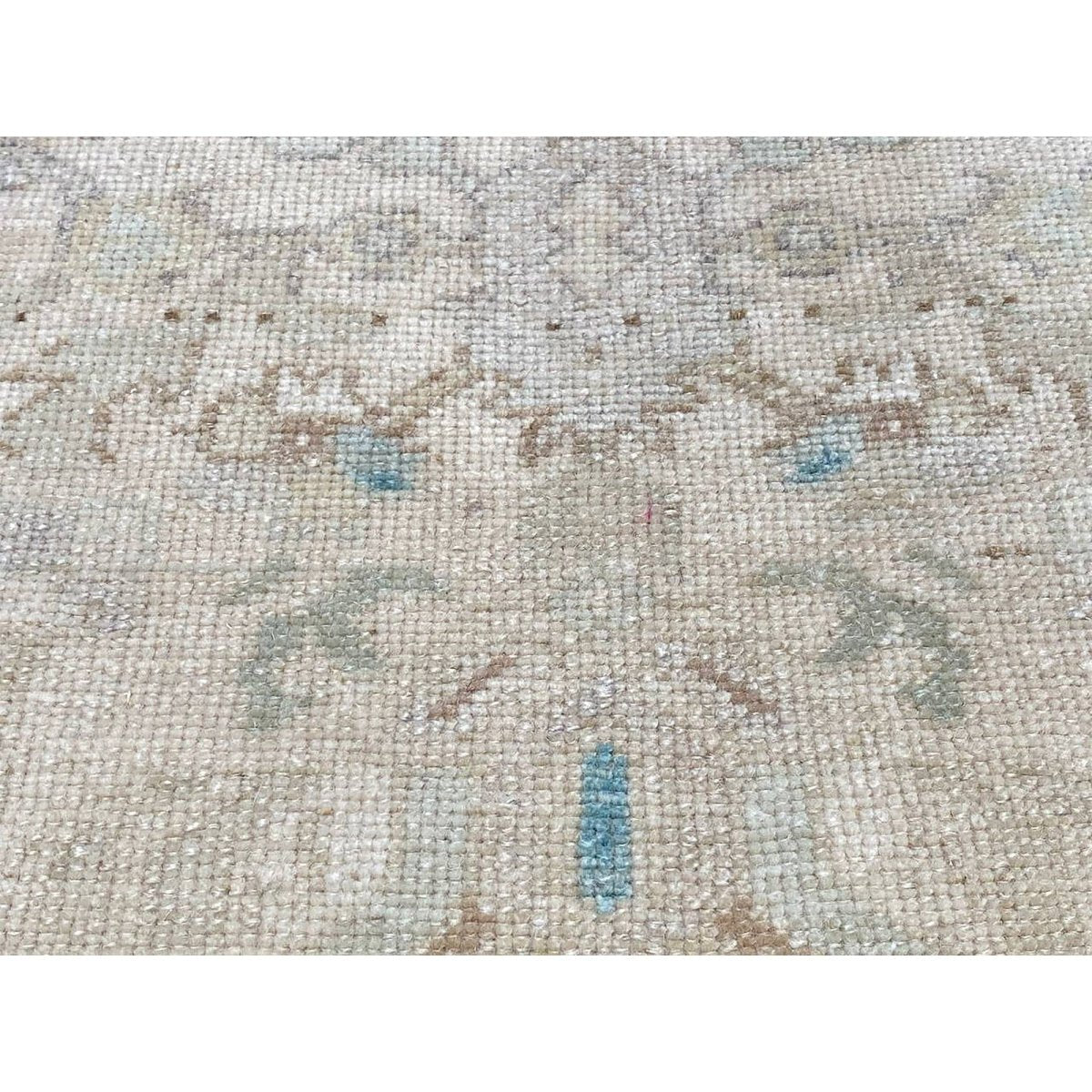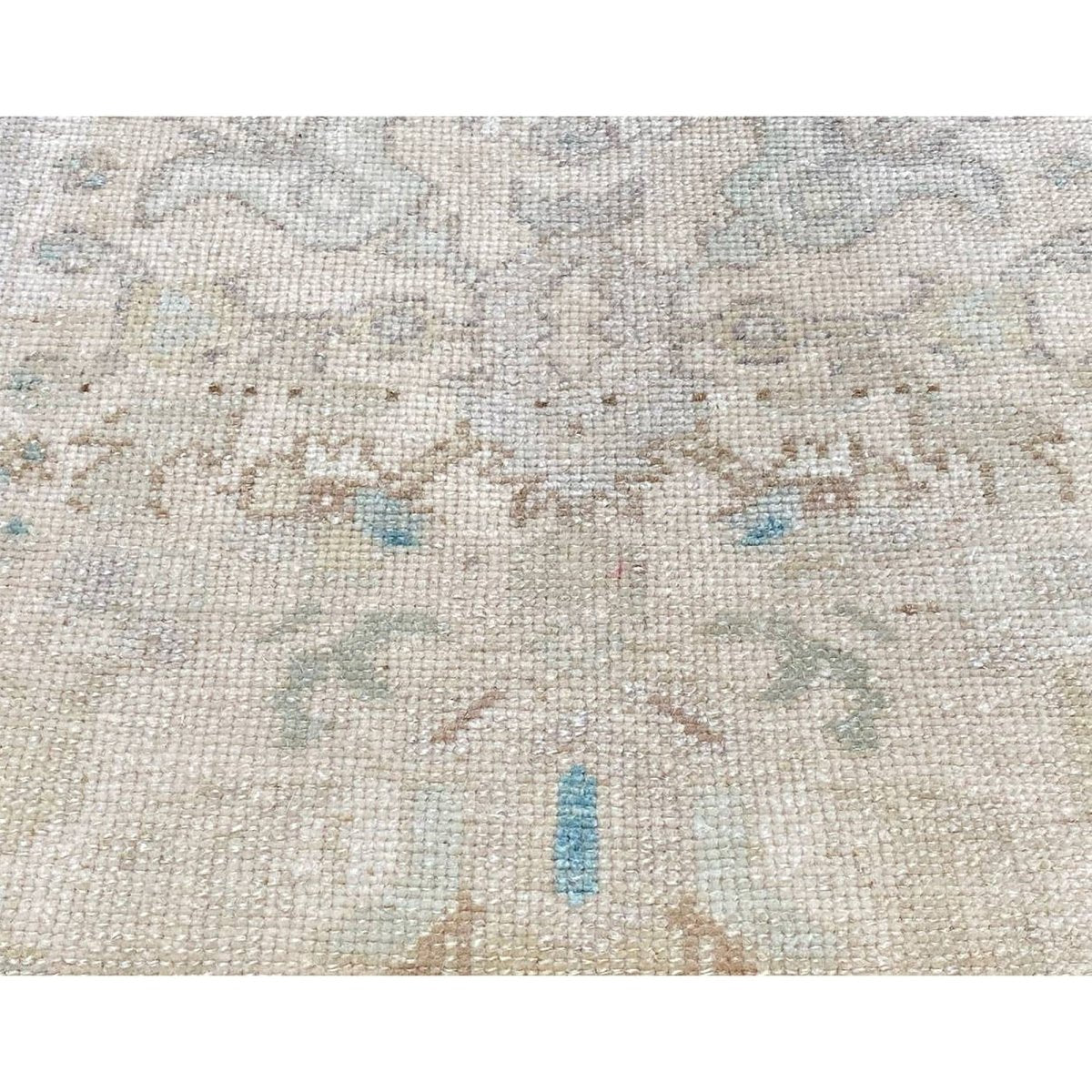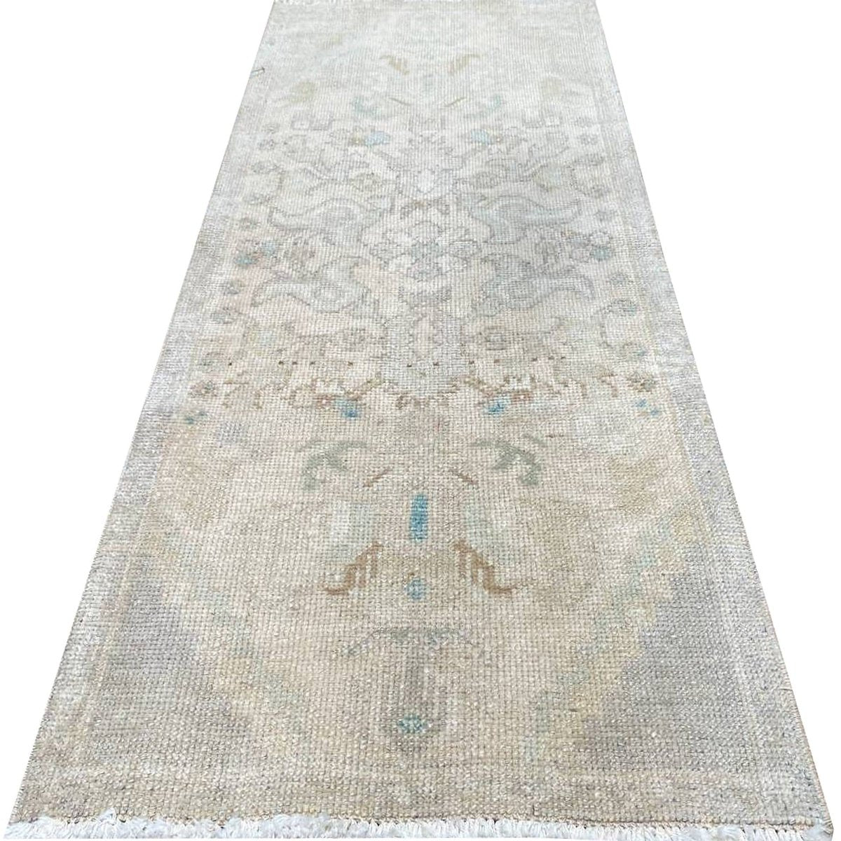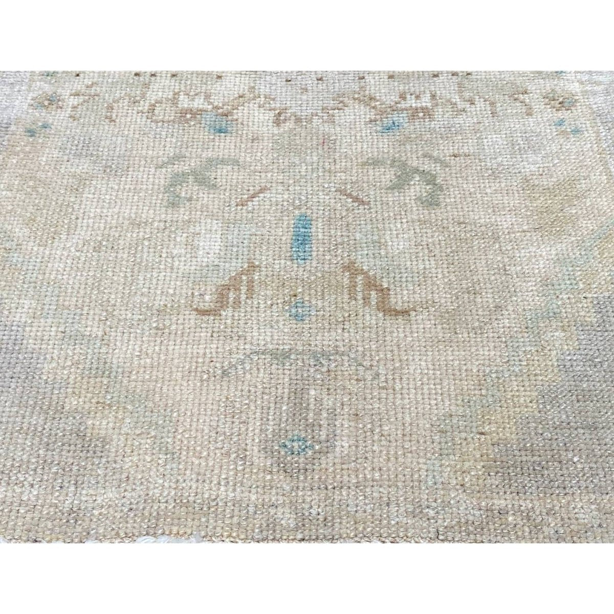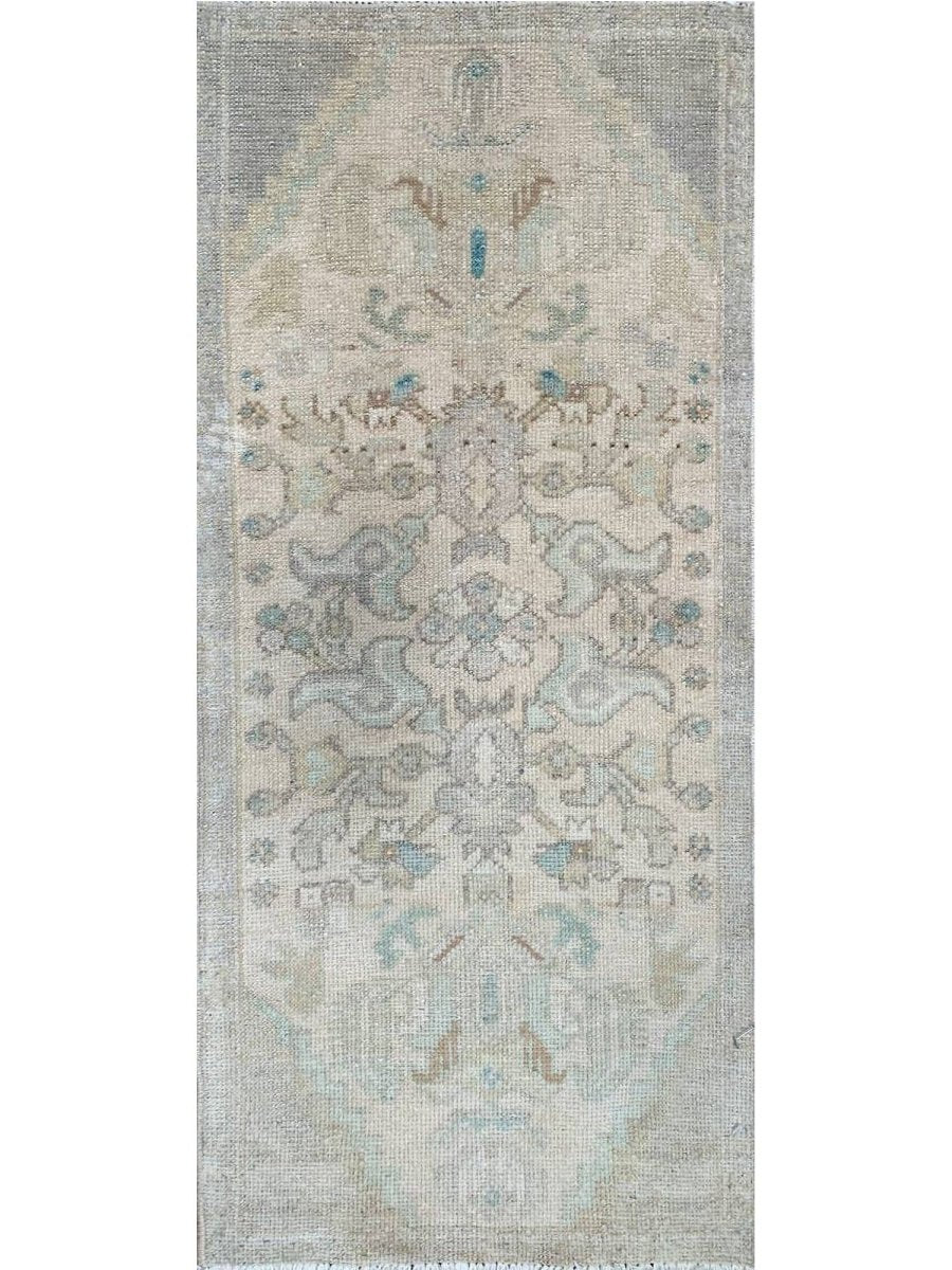 This exceptional 2x3 antique Turkish Oushak area rug is a testament to the enduring beauty of traditional Turkish craftsmanship. Expertly woven using whole hand-knotted construction, this antique rug has a rich central medallion and a unique floral design. The rug's earthy color palette features a beautiful combination of beige and gray. This thoughtful balance of tones creates a sense of warmth and coziness, making the rug perfect for adding a touch of antique charm to small spaces like entryways or under the study table. With its compact size of 1'6" x 3'5", this rug is also ideal for smaller spaces, such as entryways or home offices.