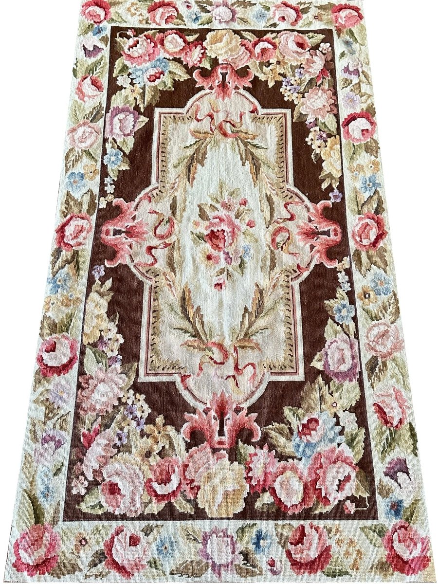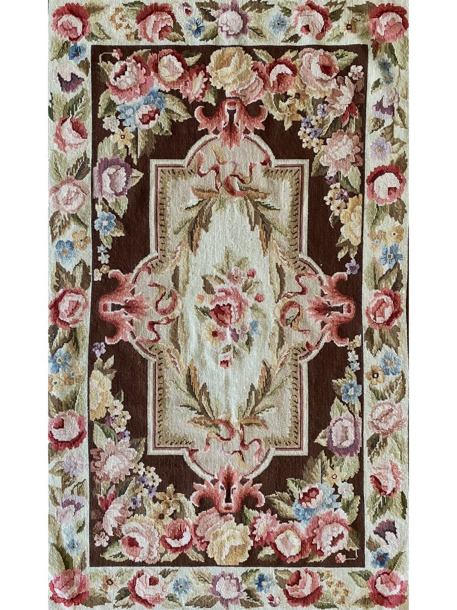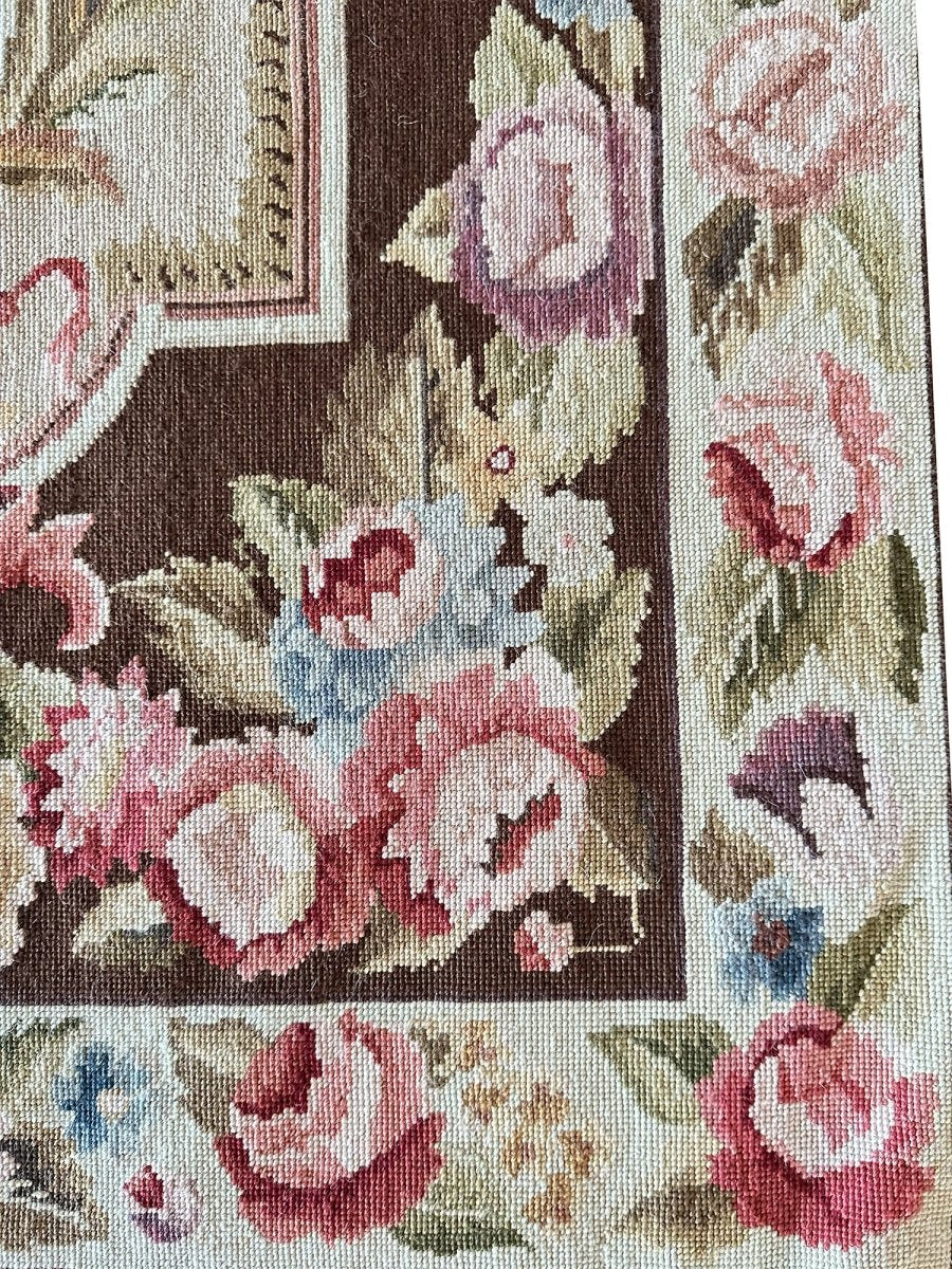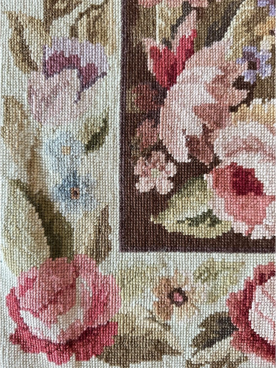 Enhance your interiors with this one-of-a-kind 3x5 French Style Needlepoint Area Rug, which blends soft ivory, brown, burgundy pink, blue, and olive green. Hand-knotted by skilled artisans, this rug adds a comfortable and artistic touch to any area. Its durable wool construction makes it ideal for high-traffic zones, while the floral pattern creates a chic yet inviting atmosphere. This elegant piece brings unique character, sophistication, and warmth to your home decor. Enjoy the benefit of free shipping within the U.S. for a hassle-free purchase.
