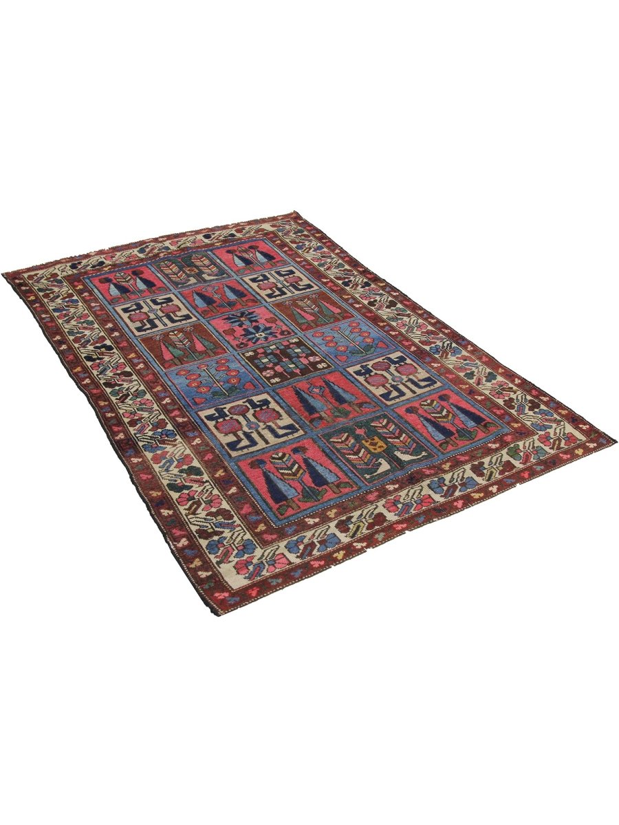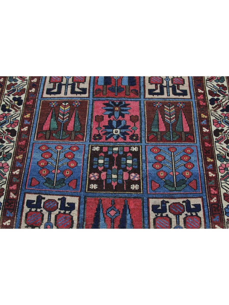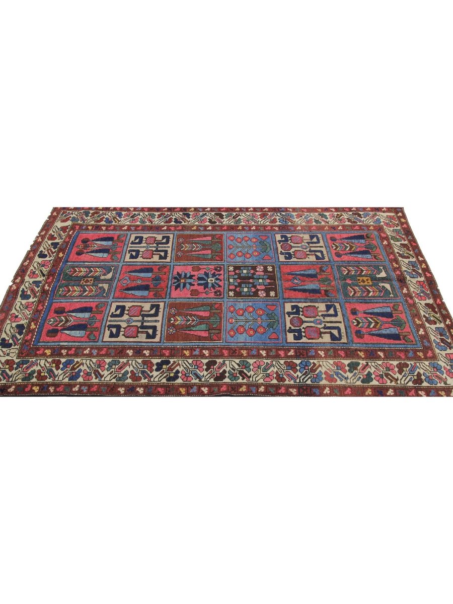 This exquisite 4x6 Antique Persian Bakhtiari Area Rug is a true luxury, showcasing traditional craftsmanship. Hand-knotted from high-quality wool in Persia, it boasts a stunning color palette that adds a touch of warmth and elegance to any room. The beautiful base provides a serene backdrop for the geometric pattern, which features a delicate balance of rust, beige, blue, and pink hues. The result is a visually striking design that creates a sense of depth and visual interest. This area rug is perfect for anchoring spaces, such as living rooms, dining rooms, or family rooms. Its durable construction and high-quality materials ensure it will remain a beautiful and functional addition to your home for years to come. Enjoy free shipping in the US.