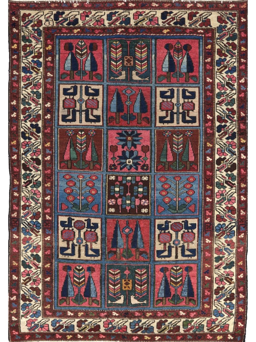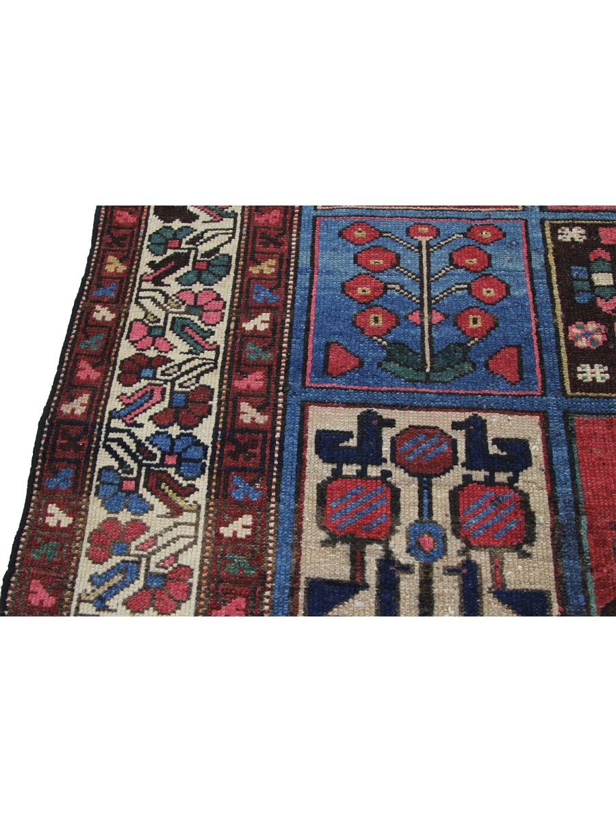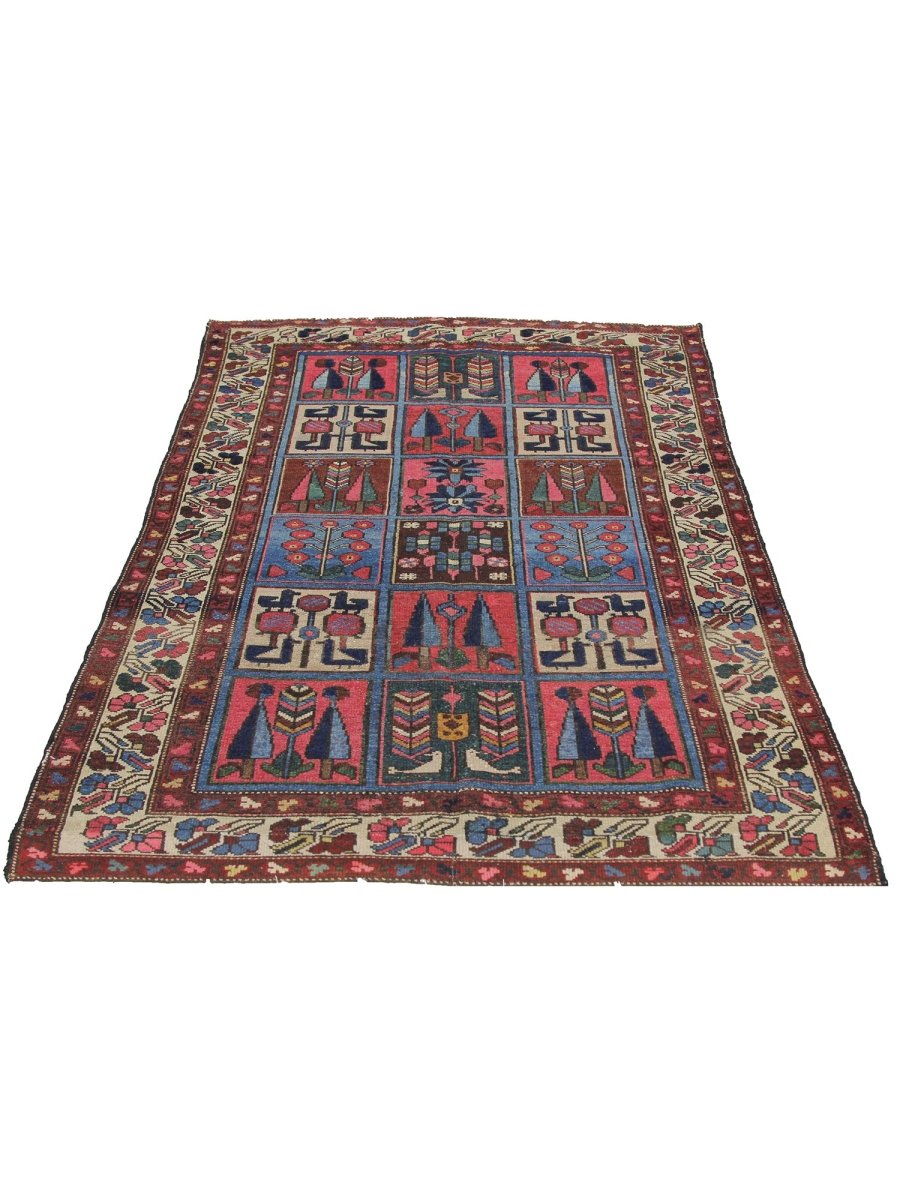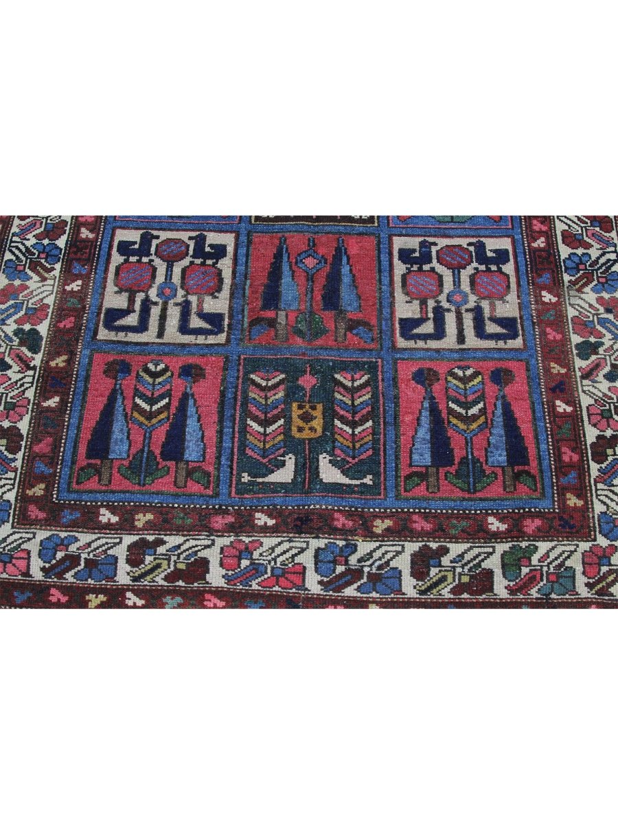 This exquisite 4x6 Antique Persian Bakhtiari Area Rug is a true luxury, showcasing traditional craftsmanship. Hand-knotted from high-quality wool in Persia, it boasts a stunning color palette that adds a touch of warmth and elegance to any room. The beautiful base provides a serene backdrop for the geometric pattern, which features a delicate balance of rust, beige, blue, and pink hues. The result is a visually striking design that creates a sense of depth and visual interest. This area rug is perfect for anchoring spaces, such as living rooms, dining rooms, or family rooms. Its durable construction and high-quality materials ensure it will remain a beautiful and functional addition to your home for years to come. Enjoy free shipping in the US.