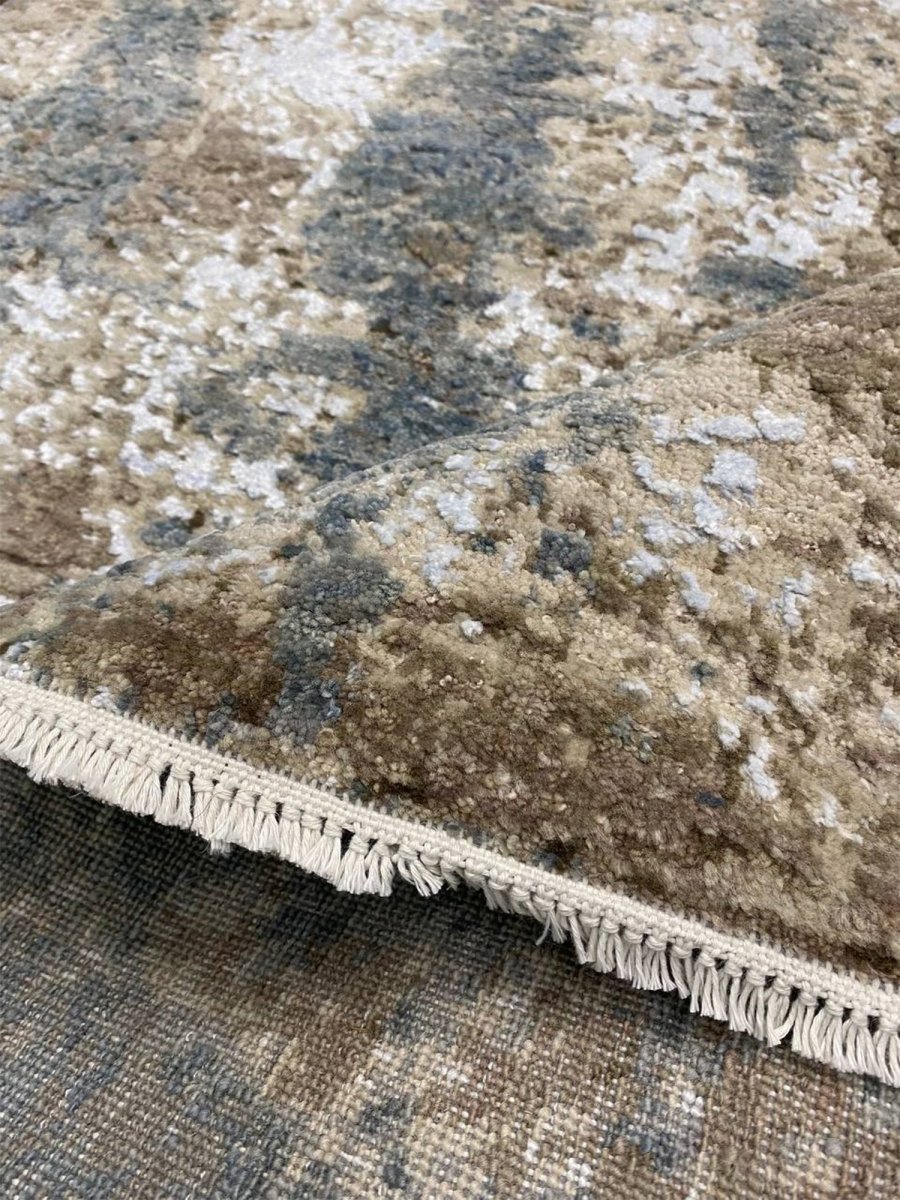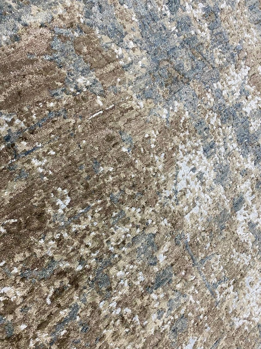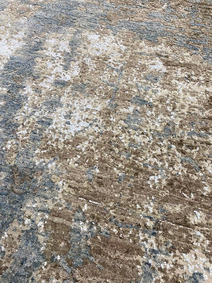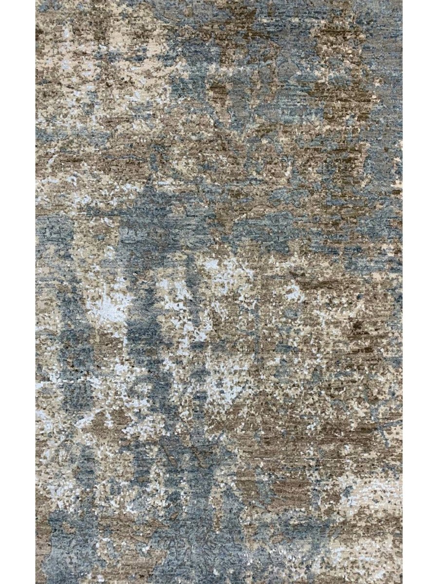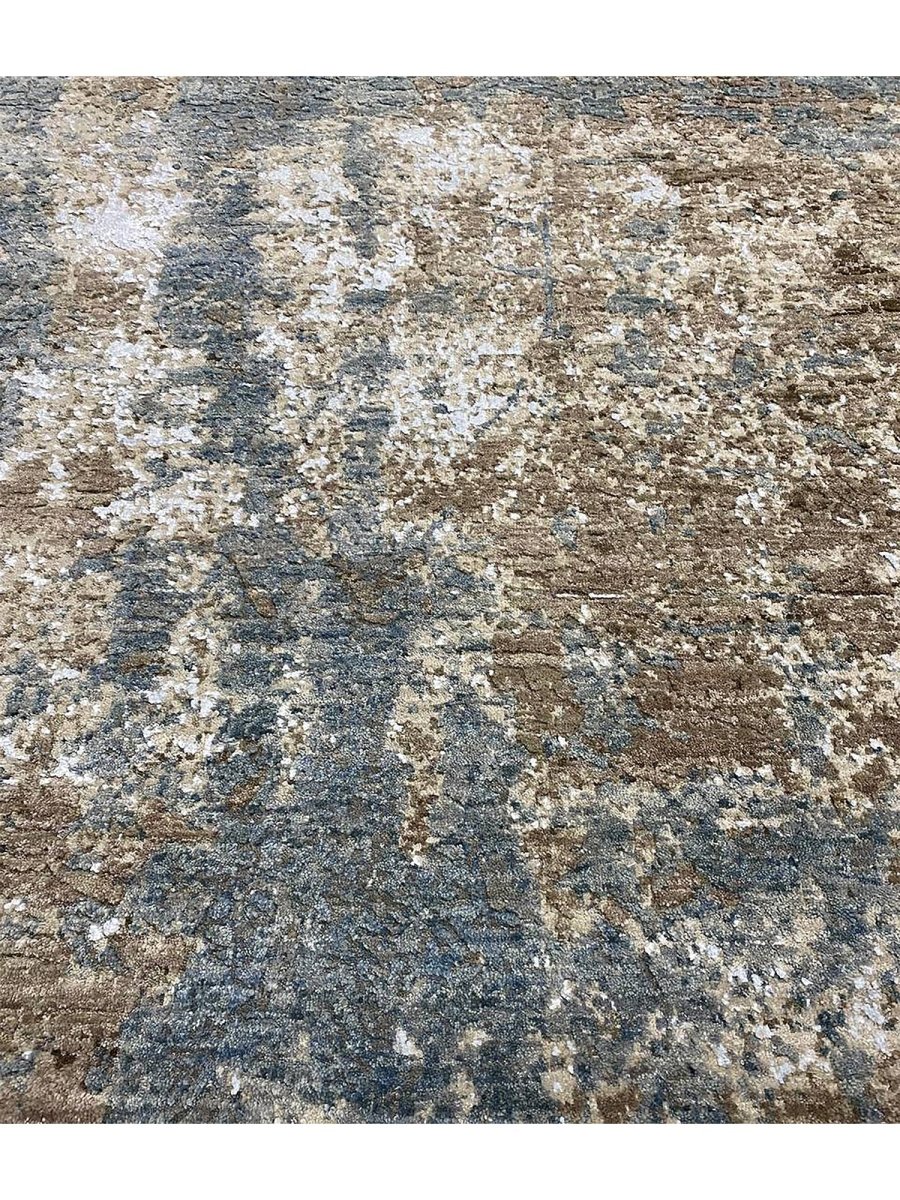 Elevate your space with this 4' x 6' modern abstract area rug, meticulously hand-knotted in India from a premium wool and bamboo silk blend. Combining luxury and durability, this rug features an elegant abstract pattern in earthy tones of brown, beige, ivory, and bluish-gray, creating a sophisticated and versatile look. Measuring 4'1" x 6'1", it enhances any interior with warmth and refined style. Enjoy free U.S. delivery.