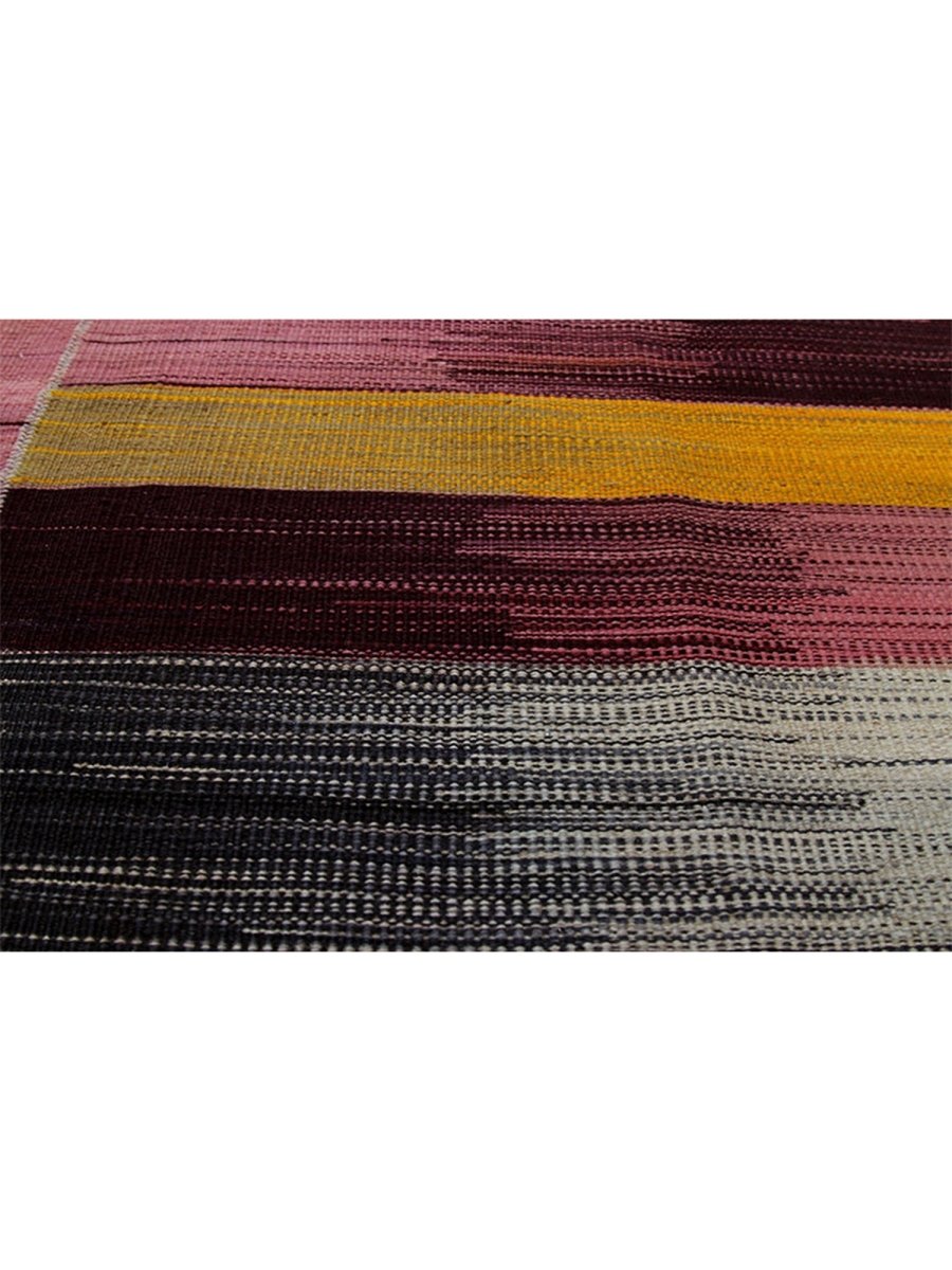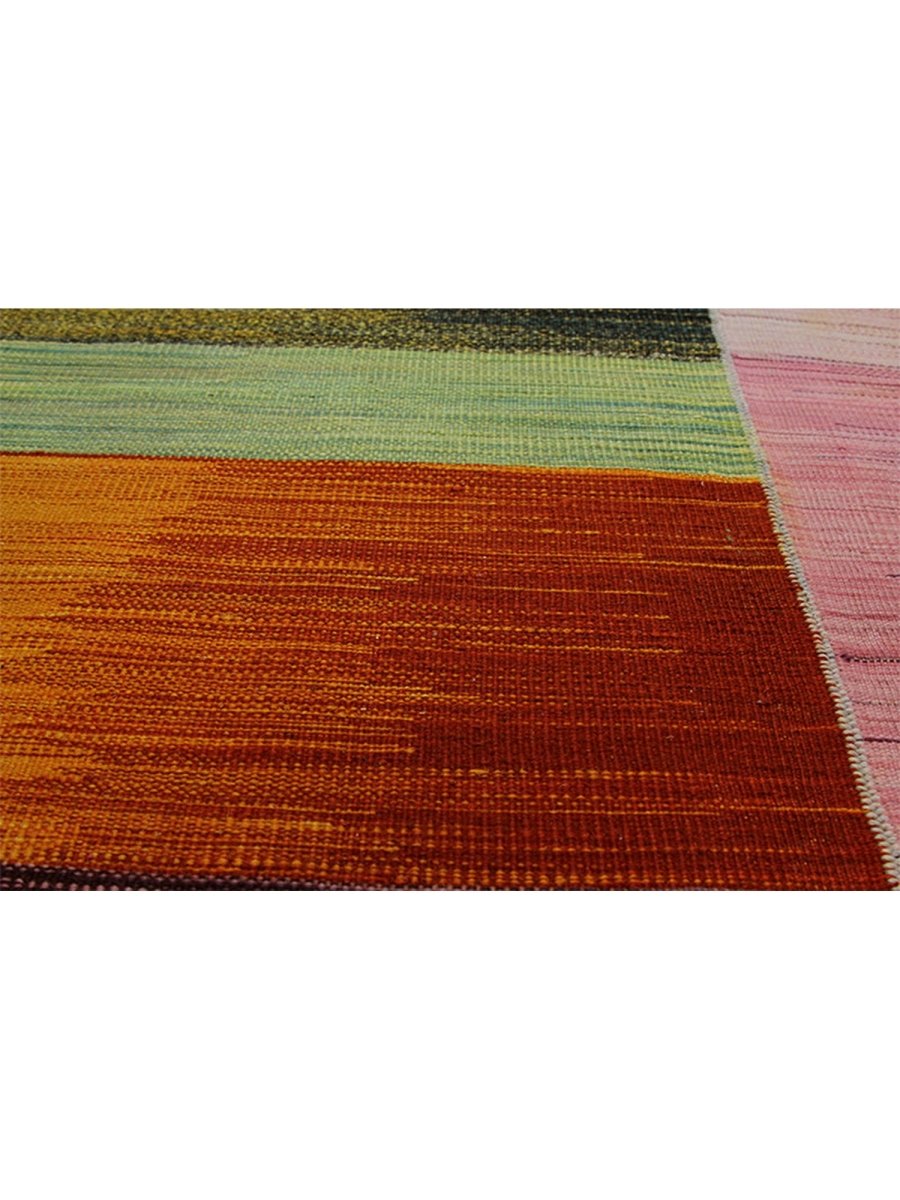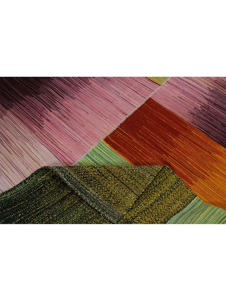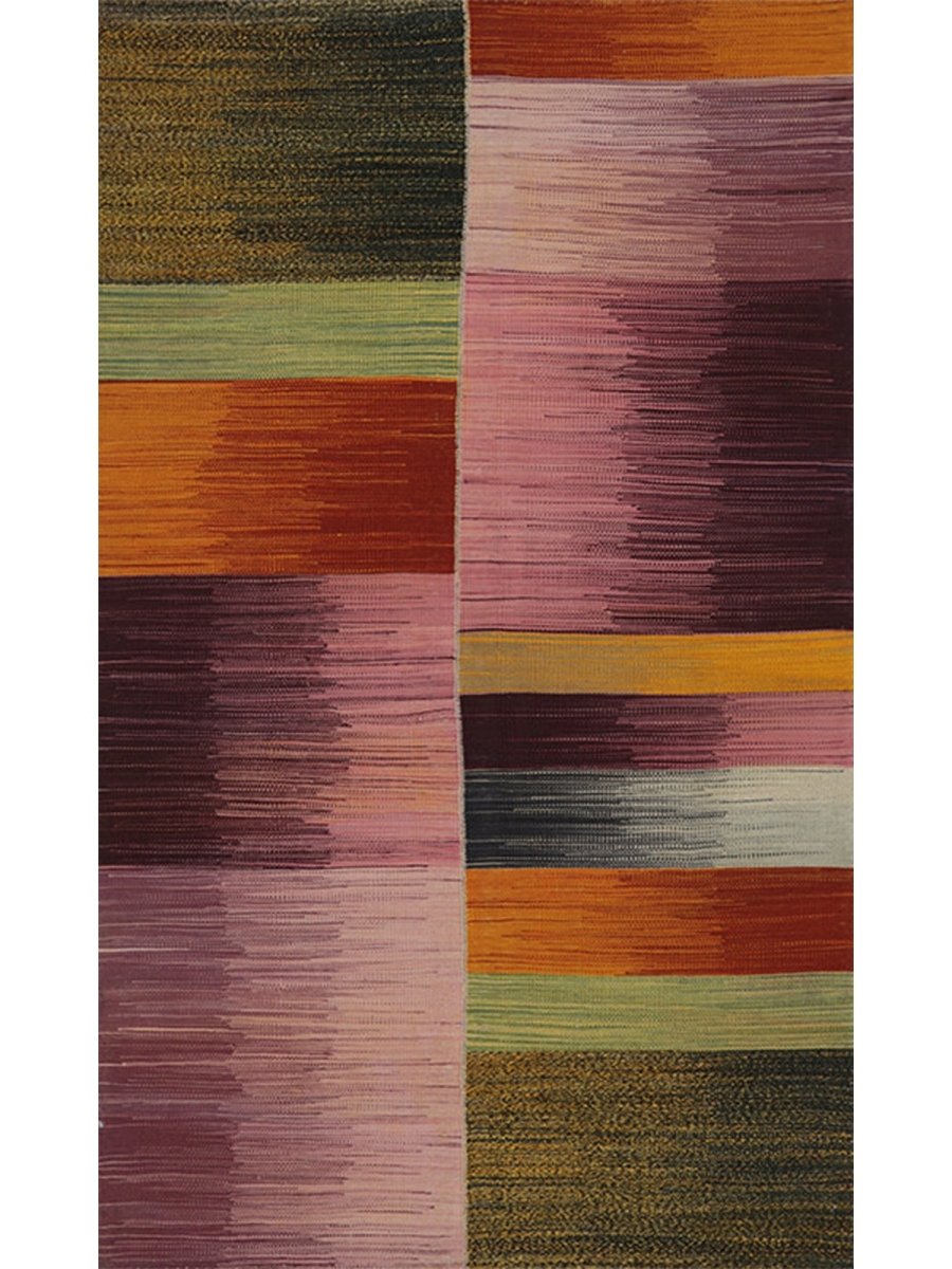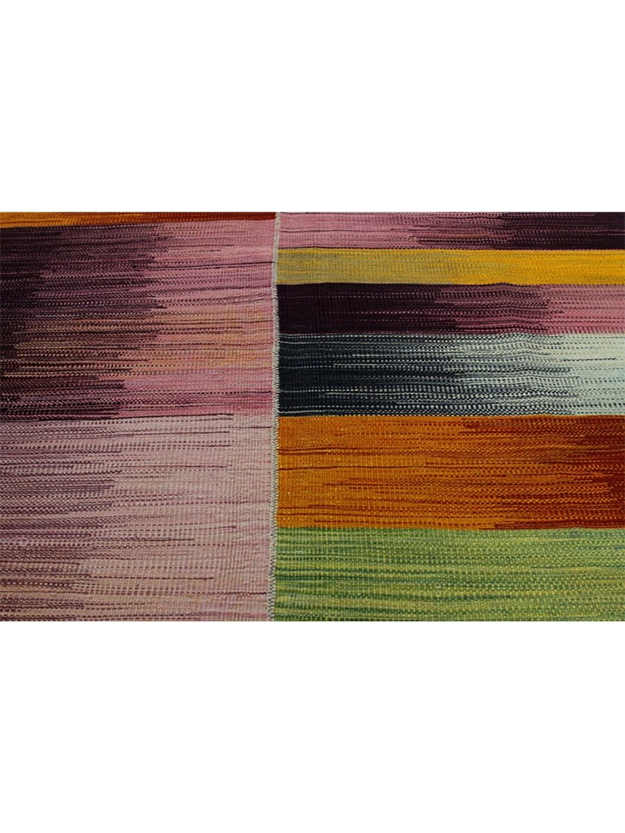 Infuse your home with the artistic beauty of this 4x6 Persian Kilim area rug, a masterpiece of classic craftsmanship. Handwoven from 100% premium wool, it showcases a striking mix of purple, warm orange, muted pink, earthy green, and golden hues, creating a harmonious blend of colors. The flatweave texture ensures durability, while its vibrant yet earthy tones make it the perfect accent for bohemian or eclectic interiors. This stunning Persian Kilim rug adds warmth, character, and artistic charm to any space.