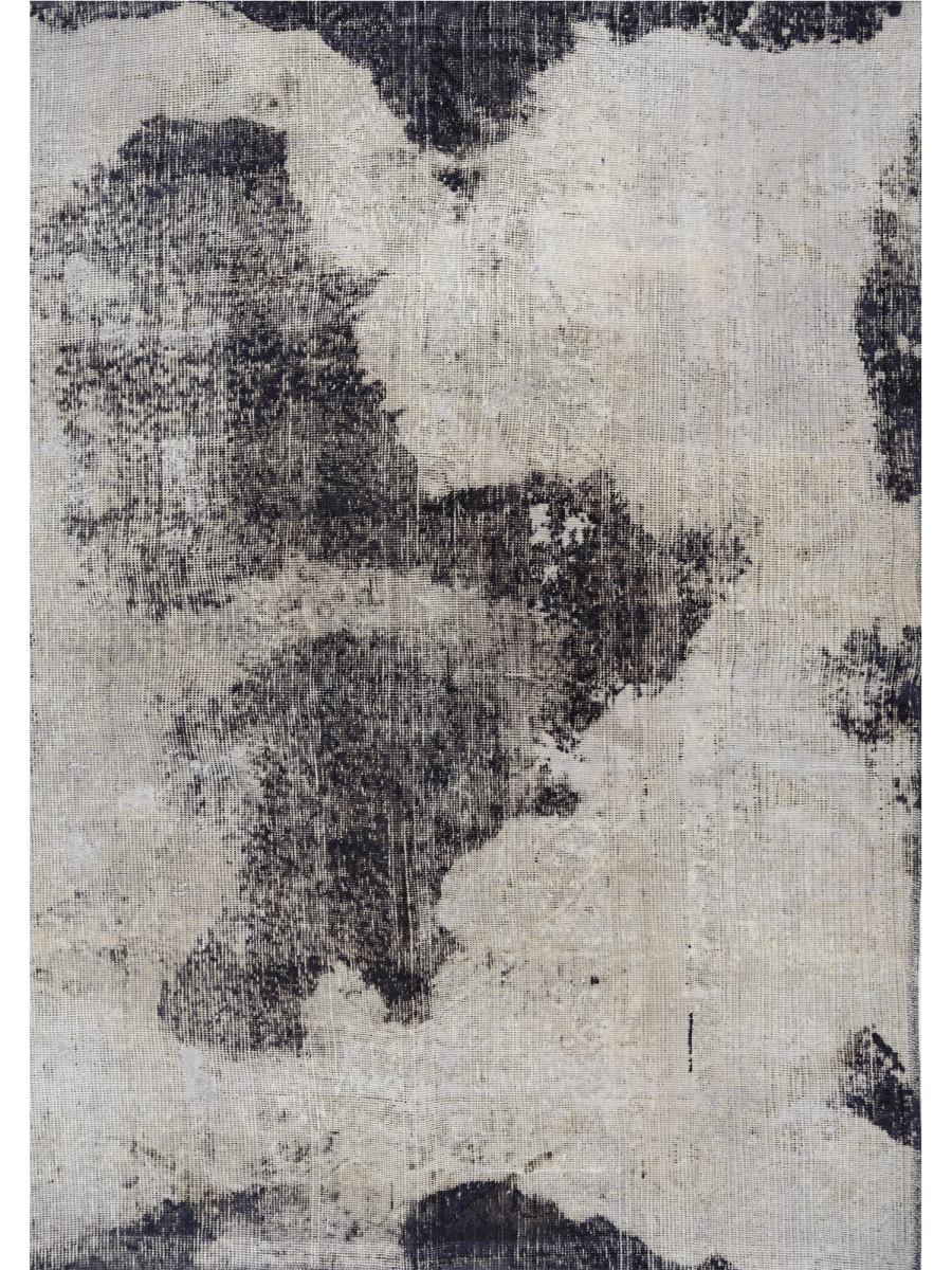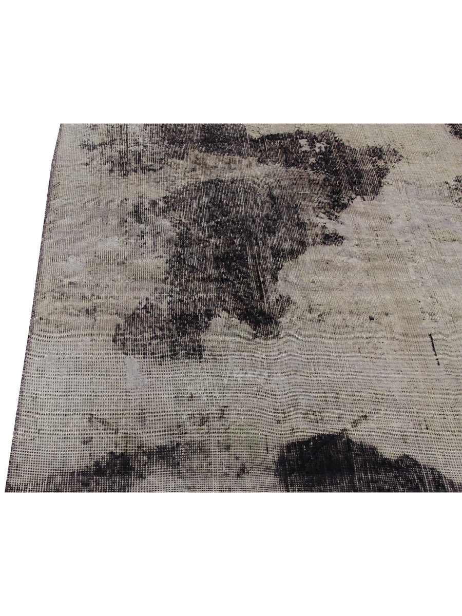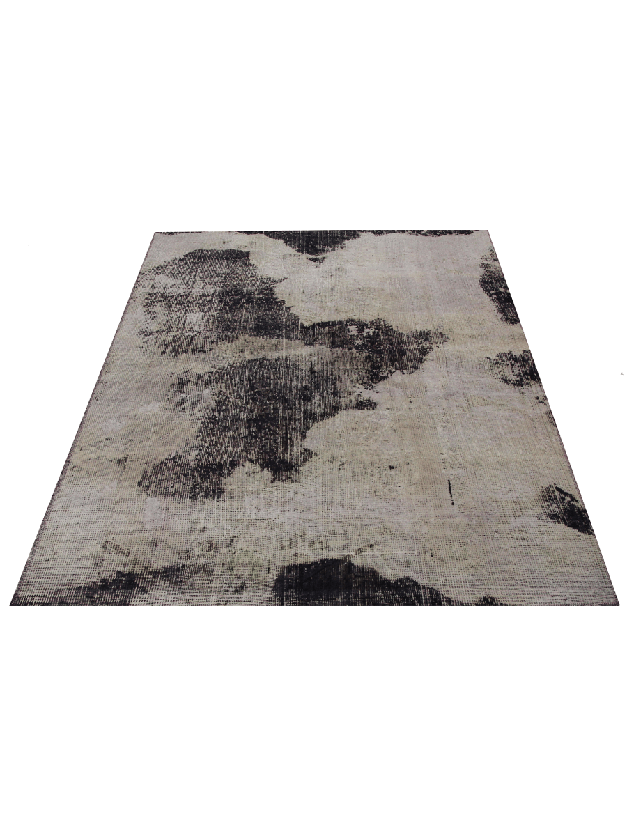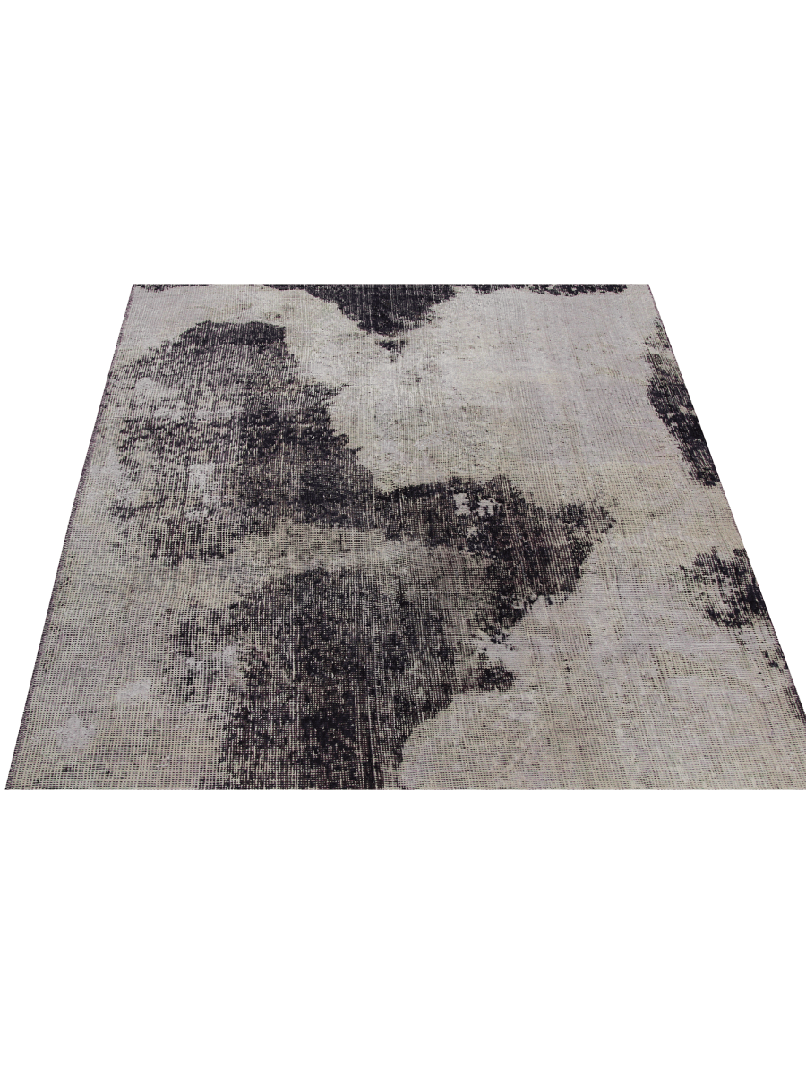 This one-of-a-kind 4x6 vintage Persian rug captivates with its striking geometric pattern and rich distressed overdyed finish. Expertly hand-knotted from premium wool, it boasts a soft yet sturdy texture that withstands the test of time. The cream and black color combination creates a sophisticated contrast. Whether used as a focal point or layered with other decor elements, this rug enhances interiors with its timeless charm. Bring depth, warmth, and character to your home with this exquisite Persian creation.