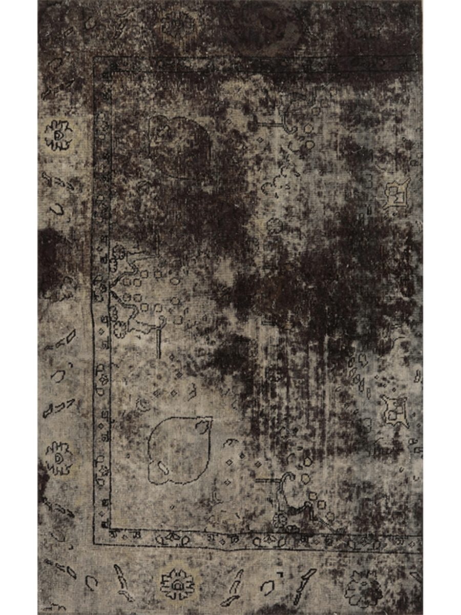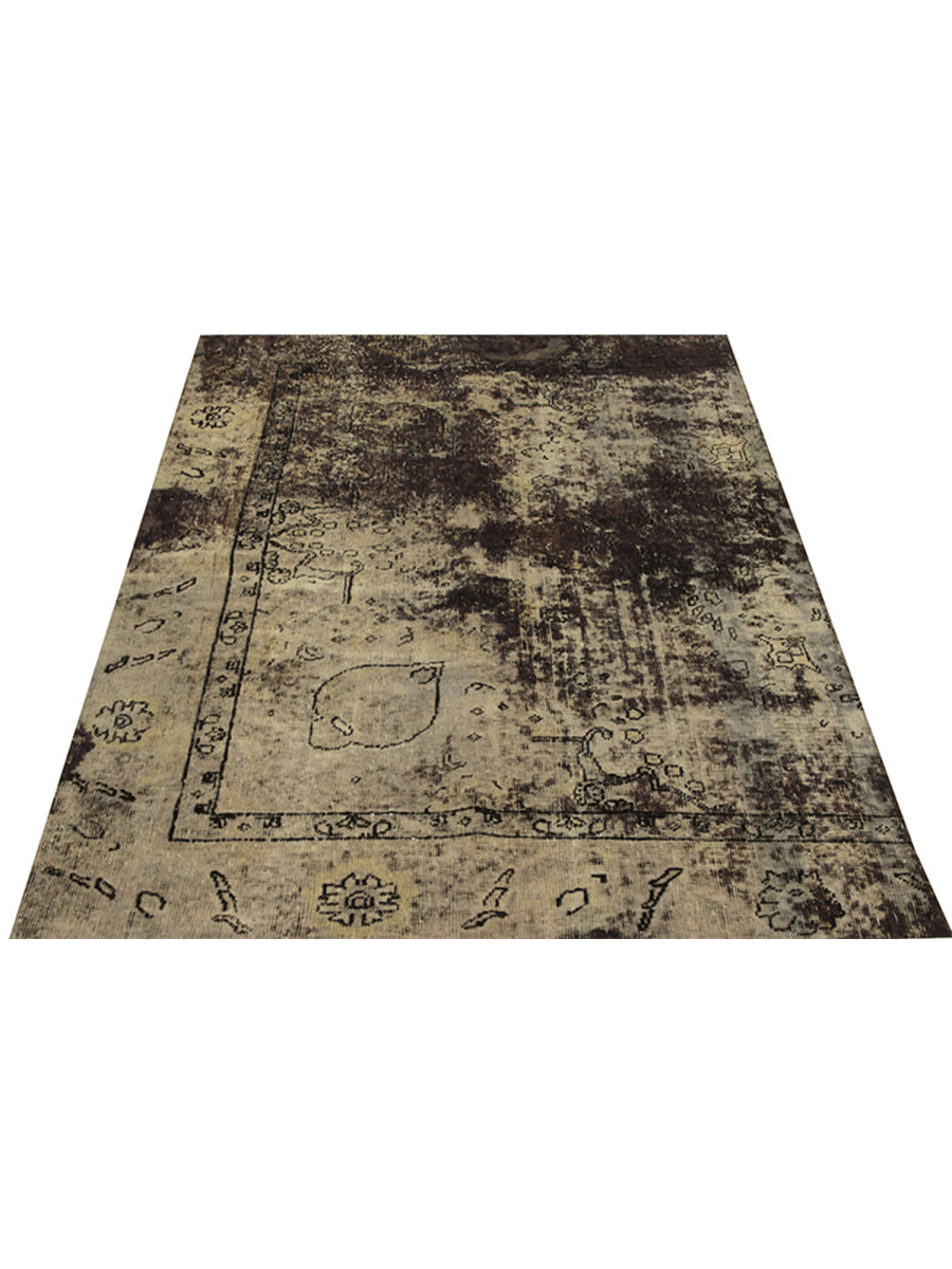 This one-of-a-kind 4x6 vintage Persian rug is a true masterpiece, featuring an intricate no border pattern enhanced by a distressed overdyed finish. Hand-knotted from fine wool, it provides a rich texture and unmatched durability. The warm brown and tan hues create a welcoming atmosphere. Whether used as a statement piece or to complement existing decor, this rug brings an air of sophistication and timeless beauty to any interior. Elevate your space with this exquisite Persian treasure.