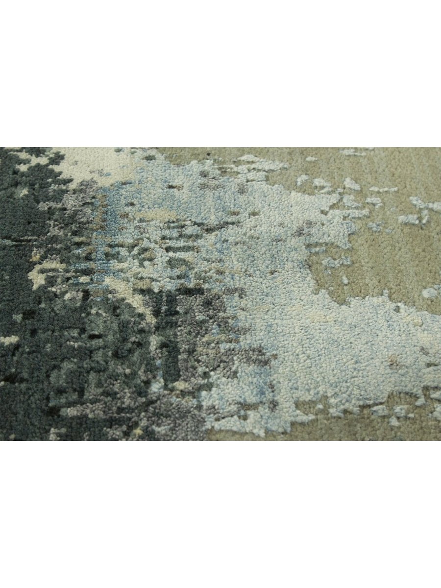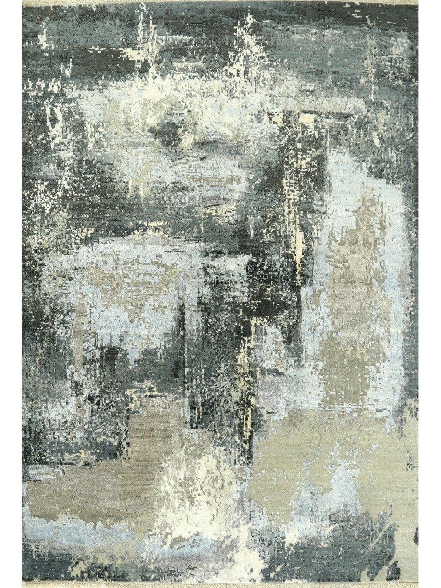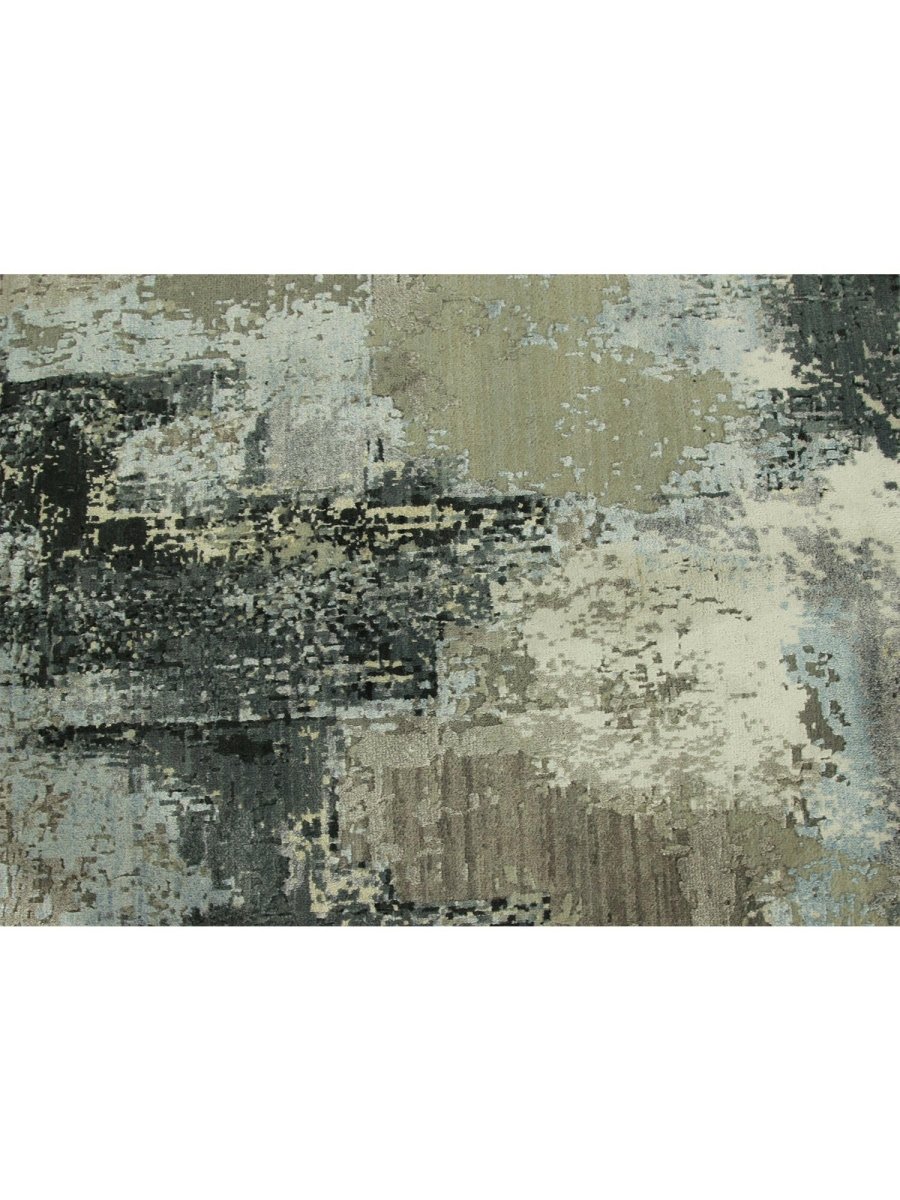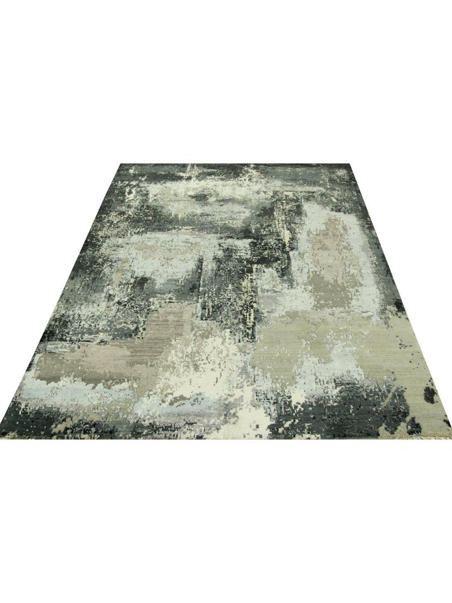 Add a touch of modern sophistication to your space with this magnificent 5x7 Modern Abstract area rug. Expertly hand-knotted in India from a premium blend of wool and bamboo silk, this rug offers a luxurious sheen and exceptional softness that enhances any room. The artistic abstract pattern in subtle green, beige, deep gray, and silver tones creates a refined yet appealing aesthetic, allowing it to seamlessly complement a variety of decor styles.