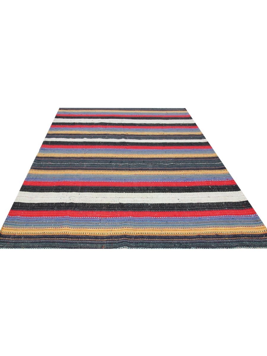 This charming 5x7 Kilim area rug is a delightful addition to any room, boasting a stunning color palette that adds a touch of warmth and playfulness. Made from high-quality wool using a hand-knotted construction, it features a beautiful combination of black, white, red, blue, and yellow hues, perfectly balanced to create a sense of energy and vitality. The intricate hand-knotted design adds a touch of dynamism and visual interest to the rug's design, which is characterized by delicate motifs and subtle color gradations. Its exceptional quality and beautiful design make it a valuable addition to any home. Whether displayed in a formal setting or a cozy retreat, this Kilim area rug is sure to impress.
