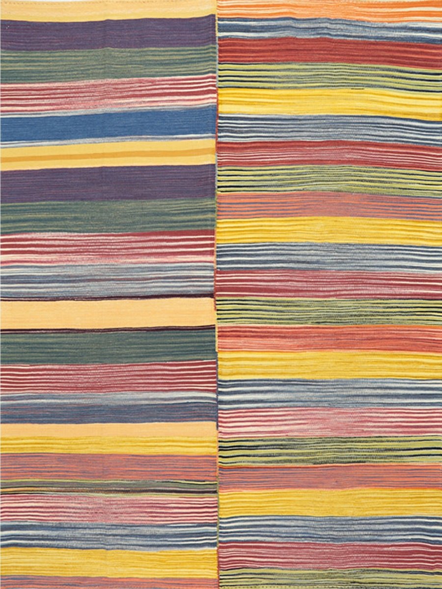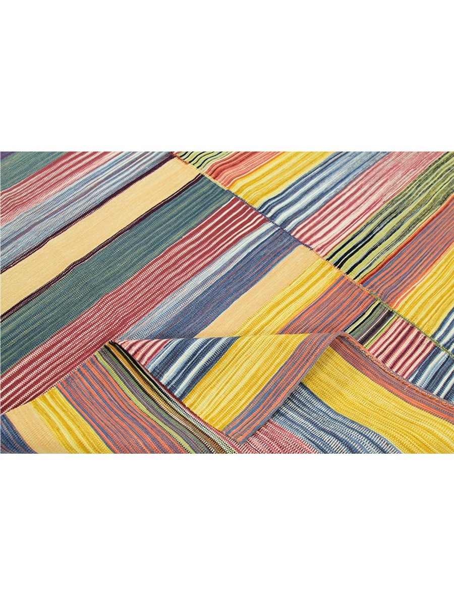 A beautiful blend of purple, blue, red, yellow, gray, and green gives this 5x7 Persian Kilim rug a vibrant and stylish appeal. Handwoven from fine wool, its flat-weave texture makes it lightweight and easy to move. This rug enhances any setting with its unique color combination and cultural craftsmanship. Its intricate design adds depth and character, making it a standout piece in any room. Crafted for both beauty and durability, this rug effortlessly balances charm with long-lasting quality. The rich texture and expert craftsmanship ensure it remains a cherished addition to your home for years to come, seamlessly complementing a variety of interior styles.