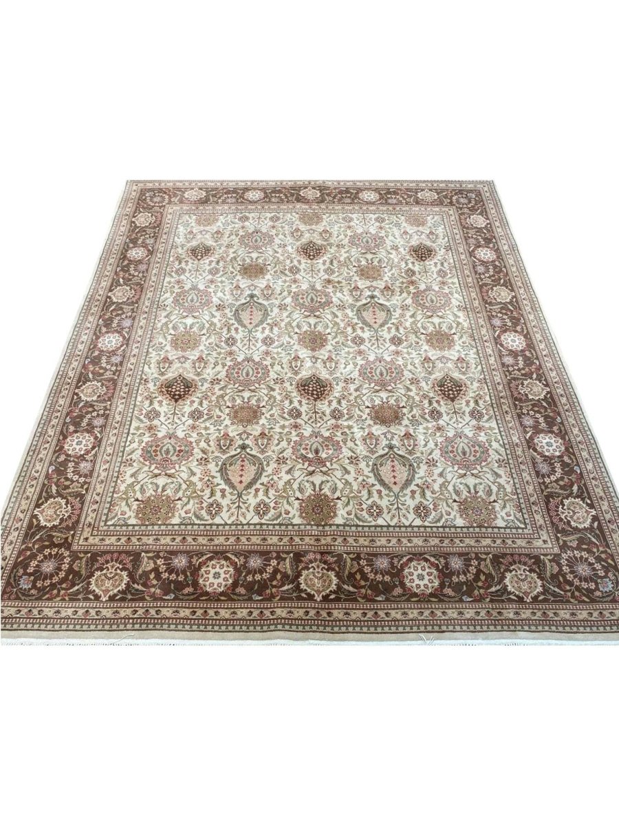 Enhance your dining room, bedroom, or living area with this one-of-a-kind 8x10 Persian Style Area Rug, which blends beige, brown, pink, and gray hues. Hand-knotted by skilled Chinese artisans, this traditional rug adds a comfortable and artistic touch to any space. Its durable wool construction makes it ideal for high-traffic zones, while the elegant floral pattern creates a chic yet inviting atmosphere. This piece brings unique character and warmth to your home decor. Enjoy free shipping within the US for a hassle-free purchase.