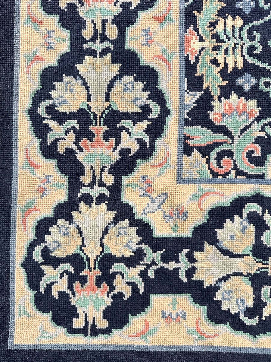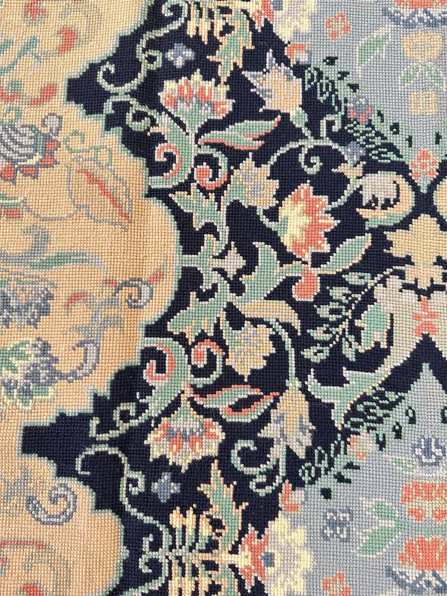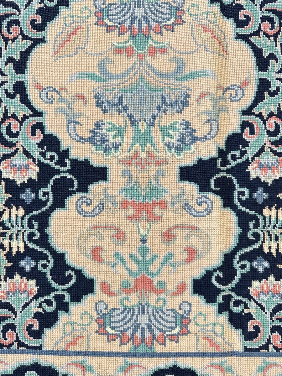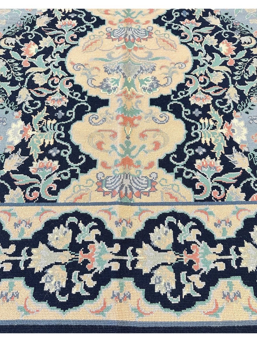 Crafted from premium wool using traditional needlepoint techniques and made in China, this new rug delivers exceptional artistry, a smooth tapestry-like texture, and striking visual presence.