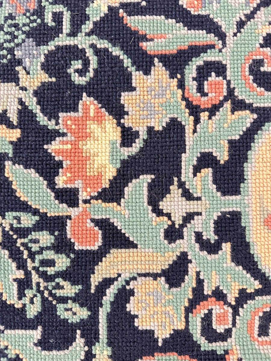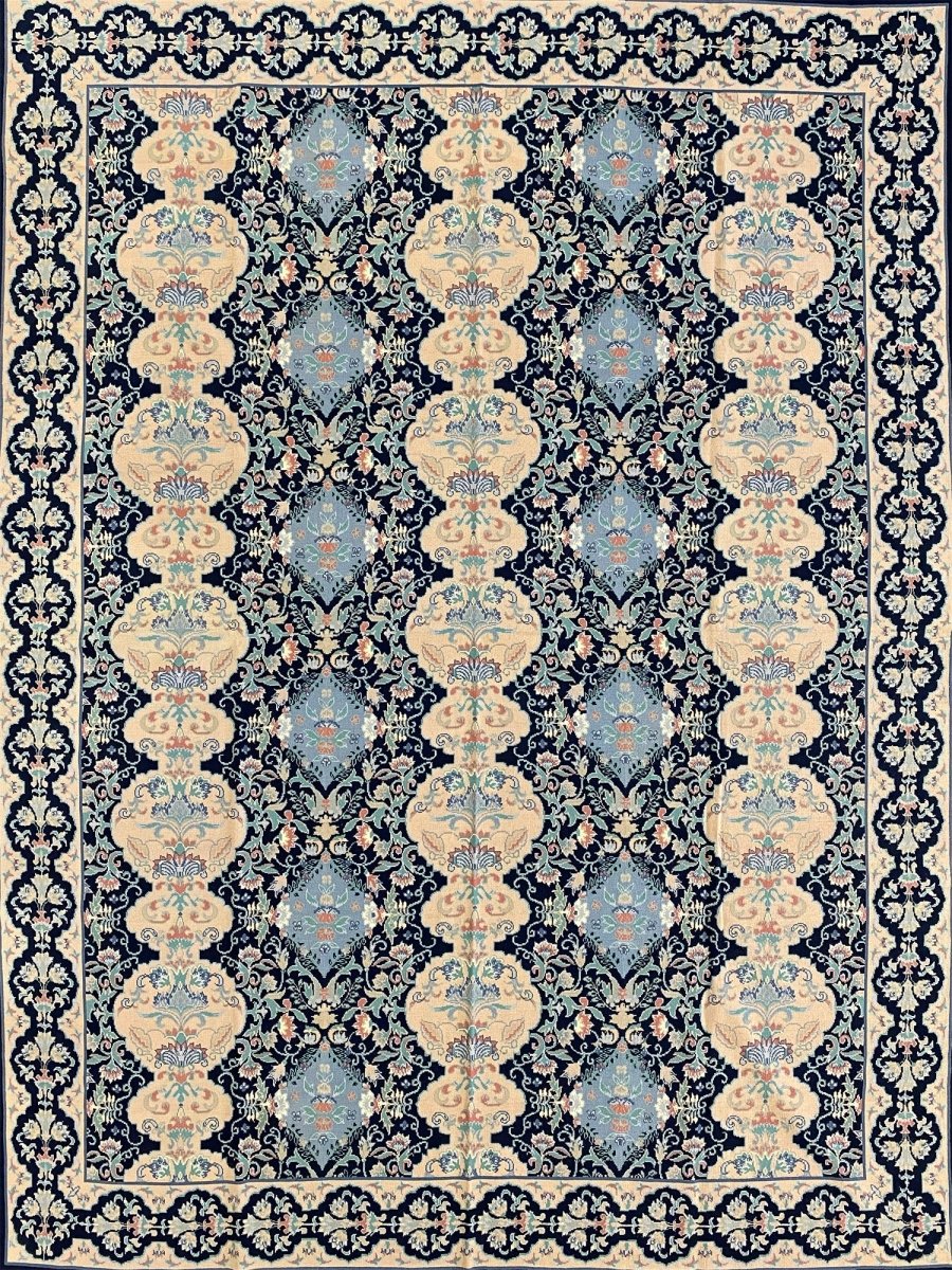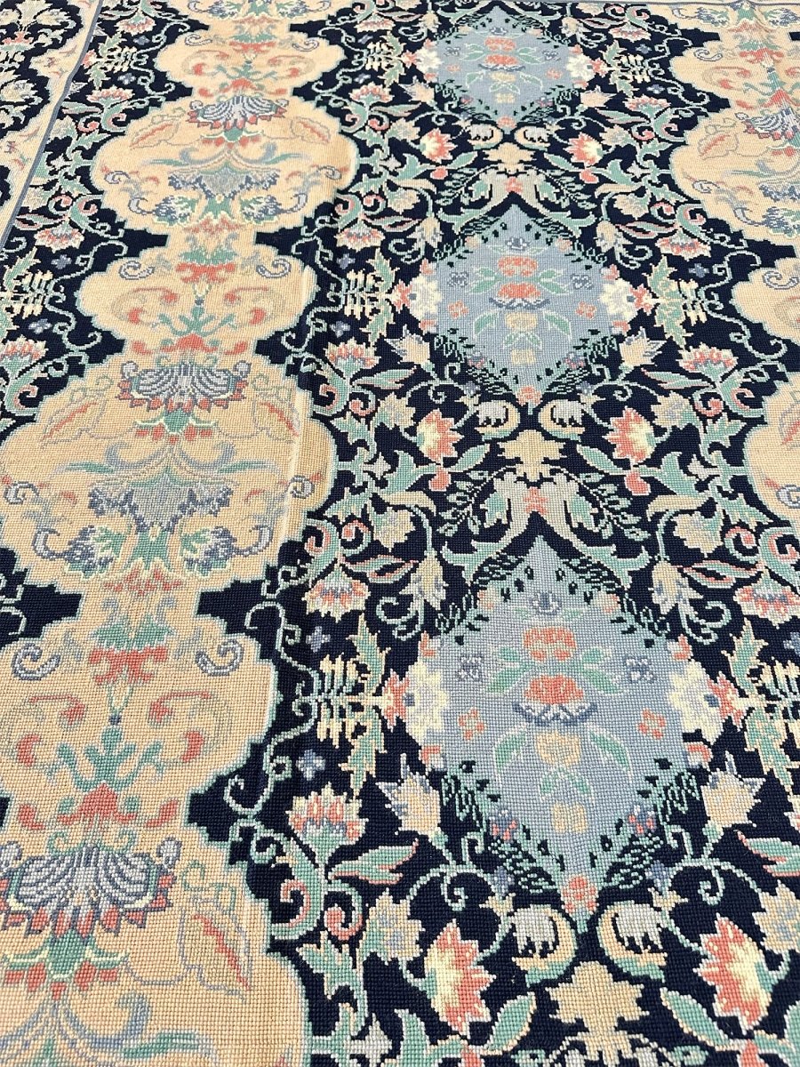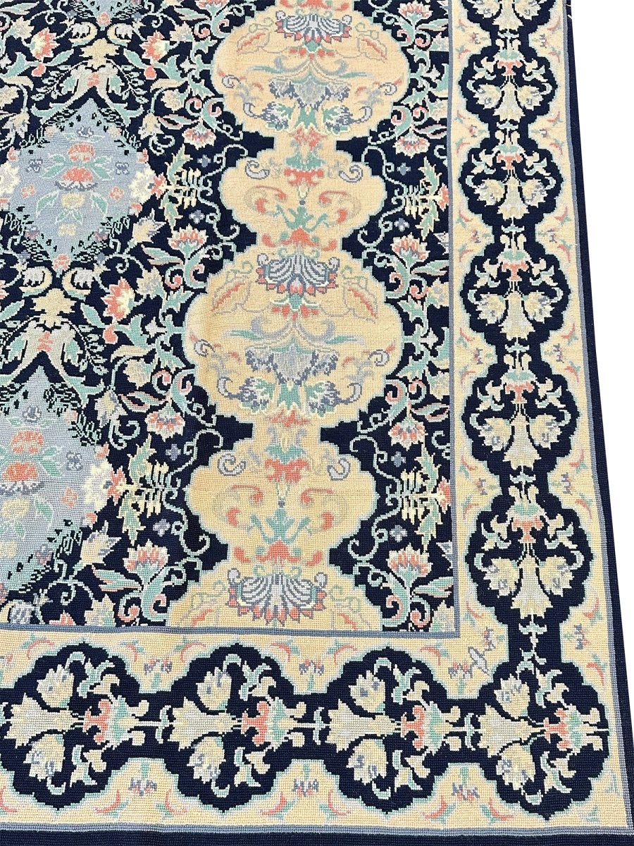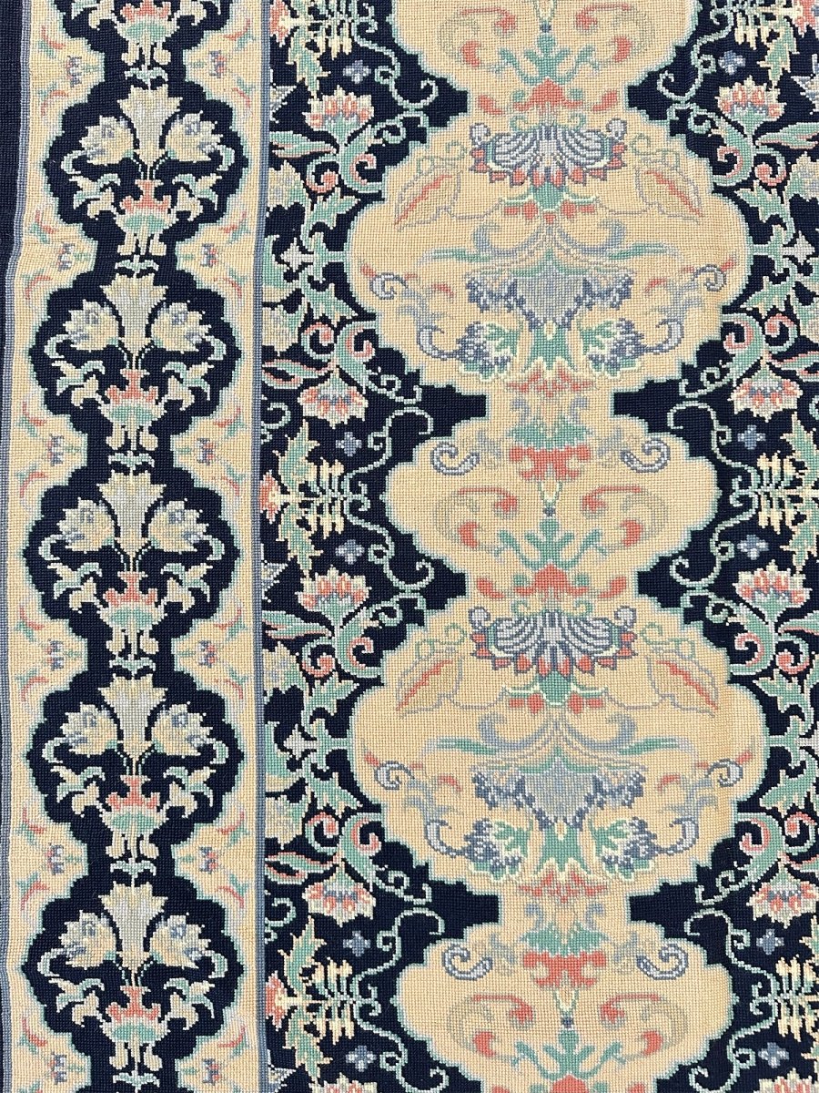 Crafted from premium wool using traditional needlepoint techniques and made in China, this new rug delivers exceptional artistry, a smooth tapestry-like texture, and striking visual presence.