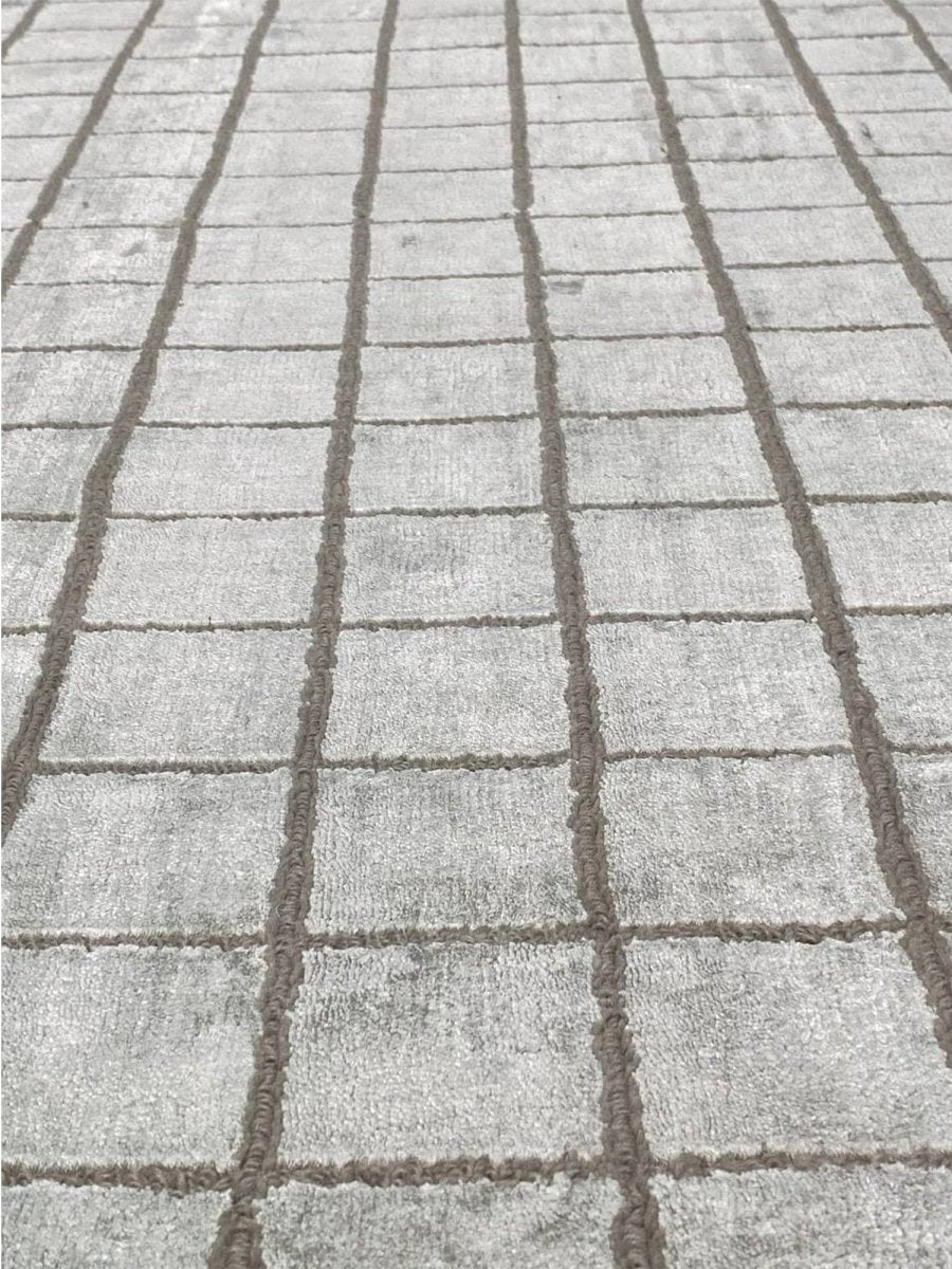 The 8x10 Contemporary Area Rug is a unique treasure that embodies the rich history of Indian weaving and adds elegance to any interior. Made from high-quality wool and bamboo silk, this gorgeous rug features a geometric design that complements a variety of decor styles. Its warm and inviting texture creates a cozy atmosphere, while the striking blend of soft ivory and brown hues adds depth and character. With its classic style and sophisticated design, this rug is a versatile addition that enhances any space. Enjoy free U.S.. delivery.