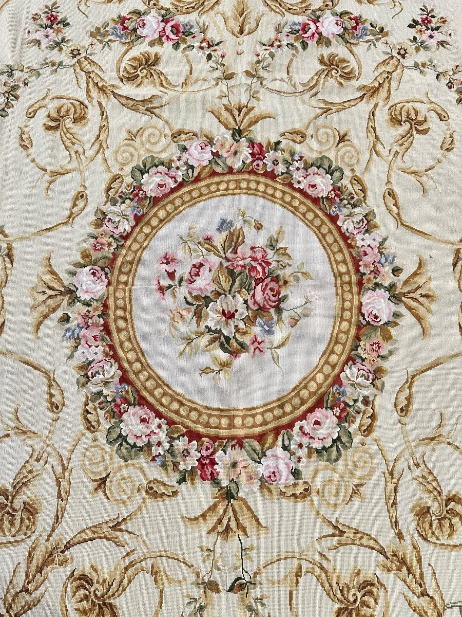 This 8x10 French Style Needlepoint Area Rug is a richly detailed piece inspired by classical French decorative art. Handcrafted in China from new wool, the rug features refined needlepoint-style workmanship with an elegant, architectural composition.