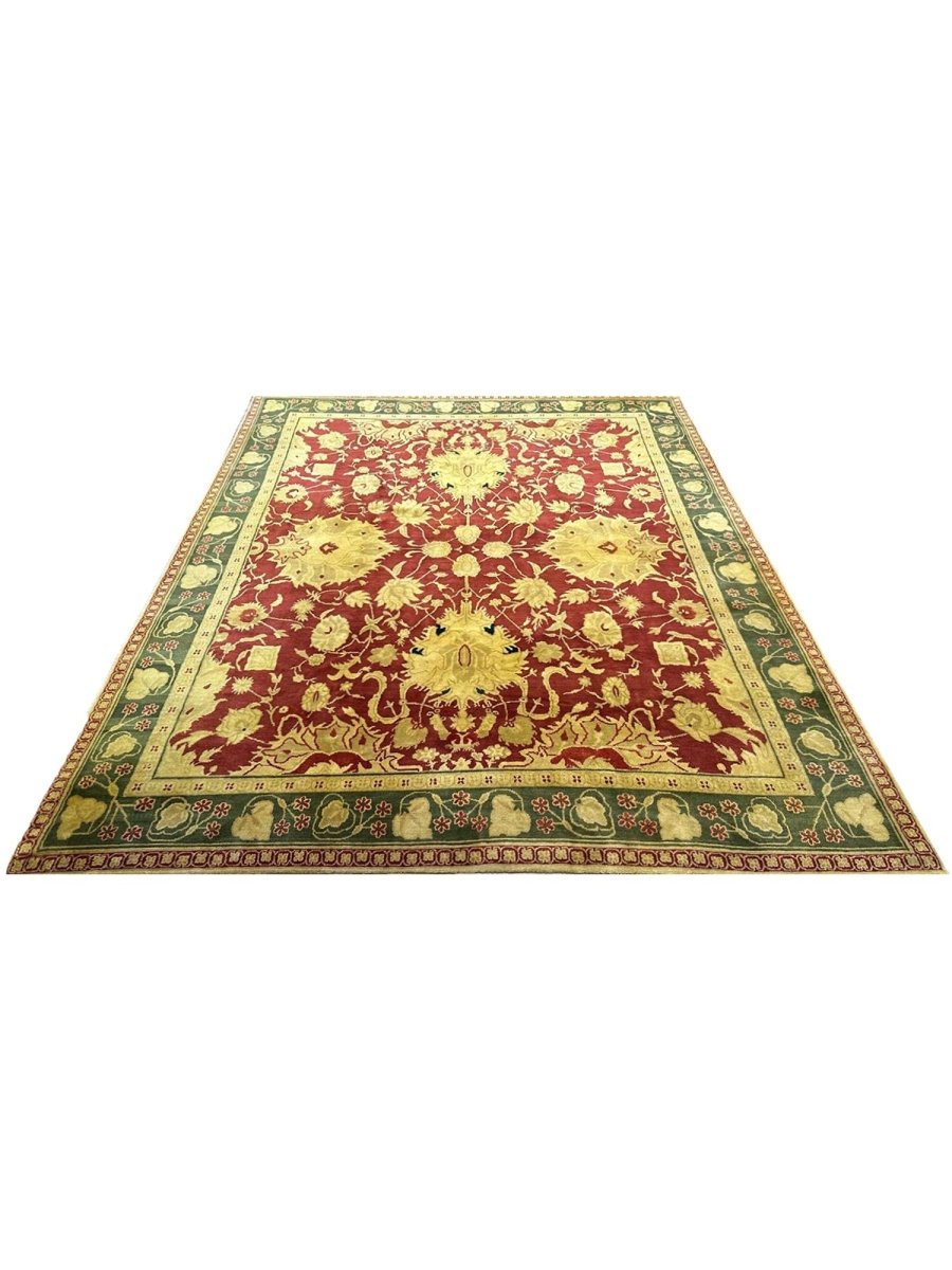 Upgrade your space with the sophisticated allure of this magnificent 8x10 Oushak Style area rug. Hand-knotted by skilled artisans in India, this piece showcases a captivating floral pattern that brings a refined and inviting atmosphere to any room. Crafted from premium wool, this rug offers a luxurious underfoot feel and exceptional durability. The colors, including subtle tones of deep red, light green, and gold, create a harmonious and calming effect that effortlessly complements diverse decor styles. Its versatile size makes it an ideal choice for enhancing a spacious living room, adding elegance to a formal dining area, or bringing comfort to a serene bedroom, seamlessly integrating into your existing aesthetic. This hand-knotted rug is a true testament to Indian weaving artistry, promising to be a cherished addition that elevates the aesthetic and comfort of your home.