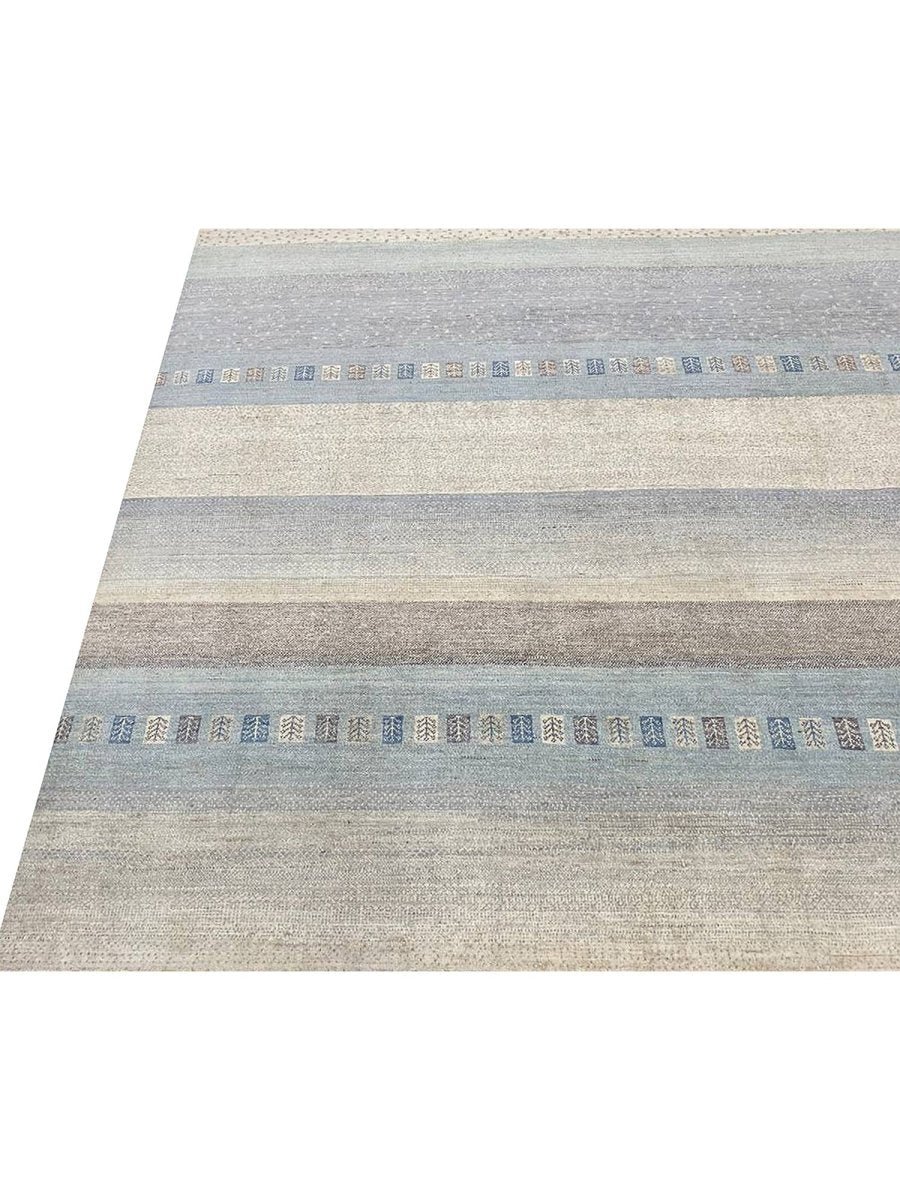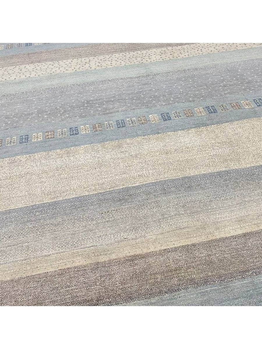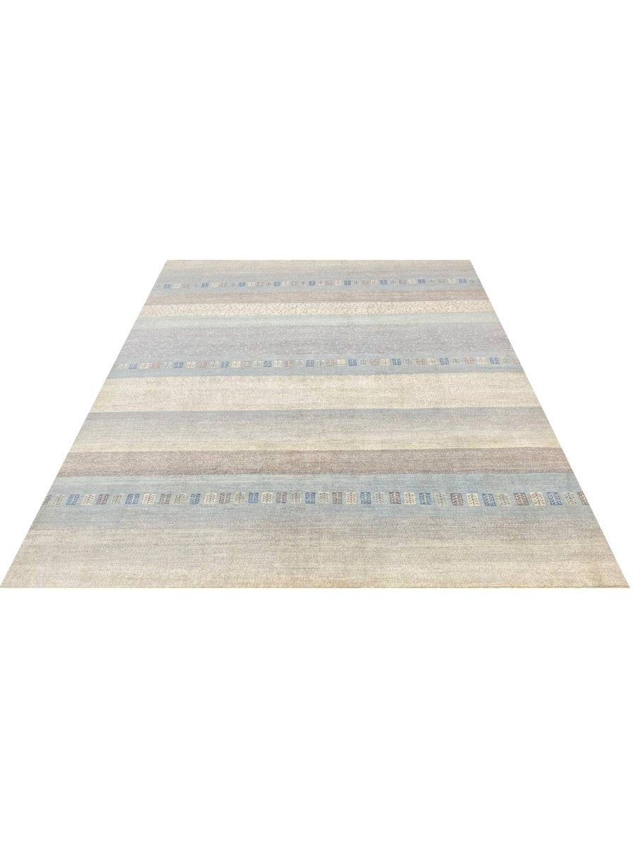 Discover the refined appeal of this 8x10 Transitional Gabbeh Area Rug, a striking accent that effortlessly enhances any interior setting. Expertly hand-knotted from high-quality wool, this rug offers exceptional durability along with a soft, inviting texture underfoot. Its elegant striped design introduces depth and visual interest, creating a balanced look that feels both classic and contemporary.