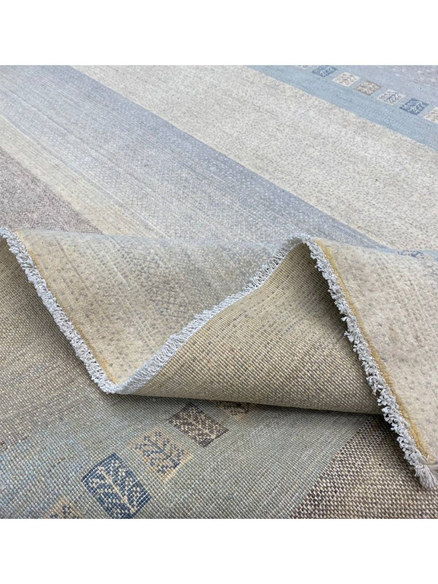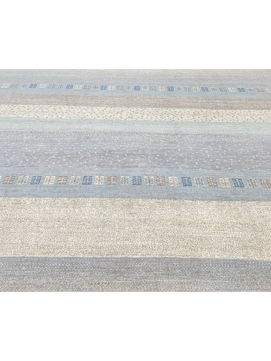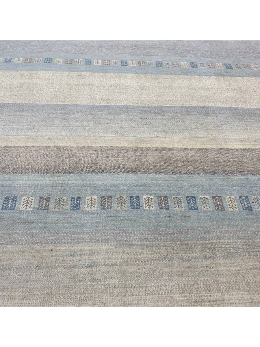 Discover the refined appeal of this 8x10 Transitional Gabbeh Area Rug, a striking accent that effortlessly enhances any interior setting. Expertly hand-knotted from high-quality wool, this rug offers exceptional durability along with a soft, inviting texture underfoot. Its elegant striped design introduces depth and visual interest, creating a balanced look that feels both classic and contemporary.