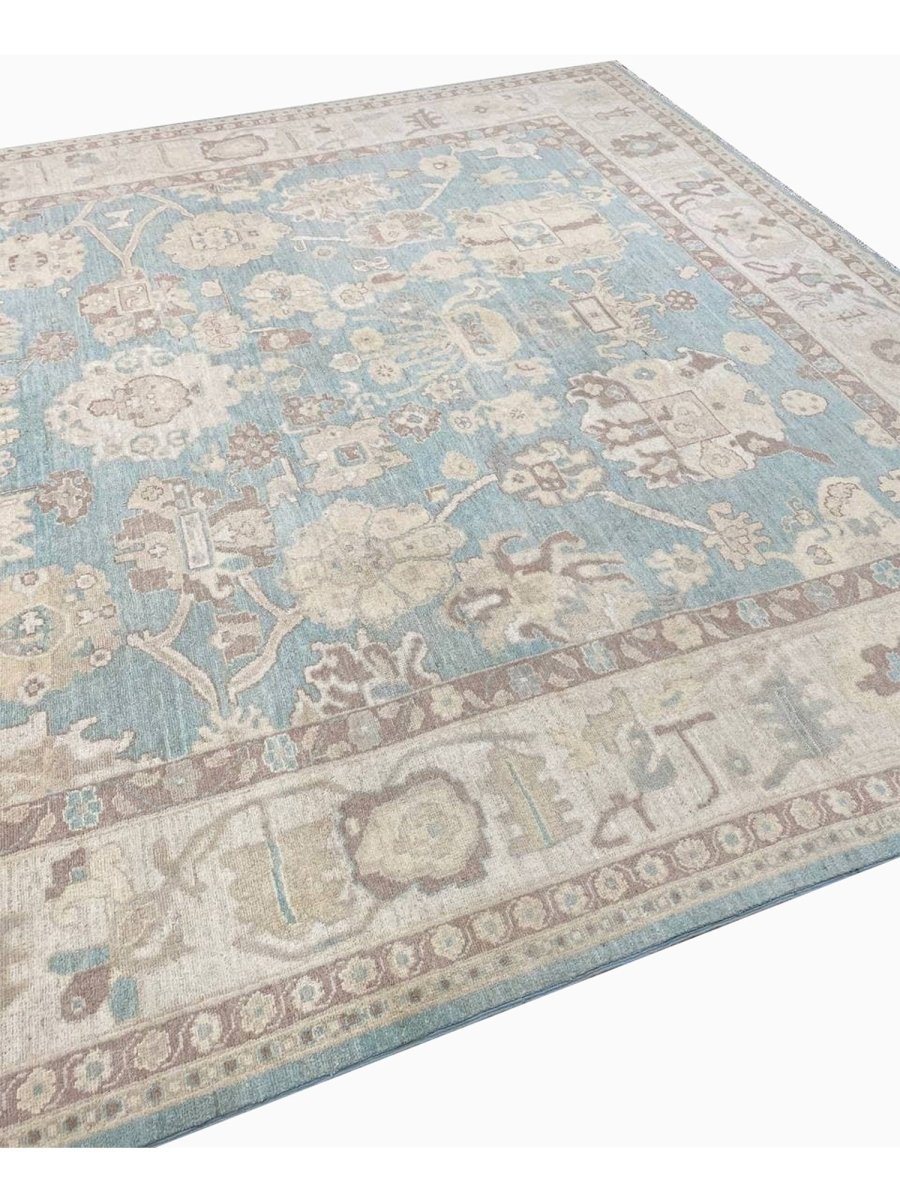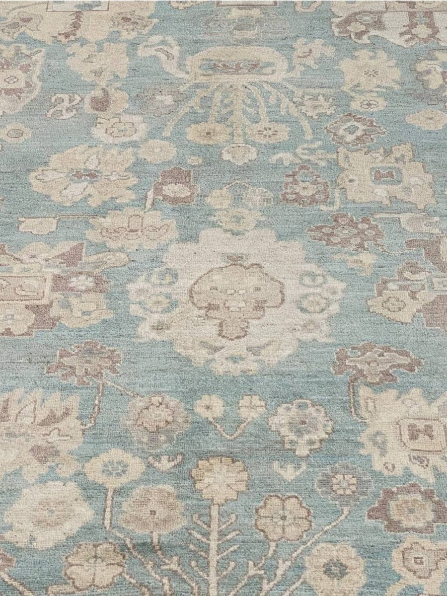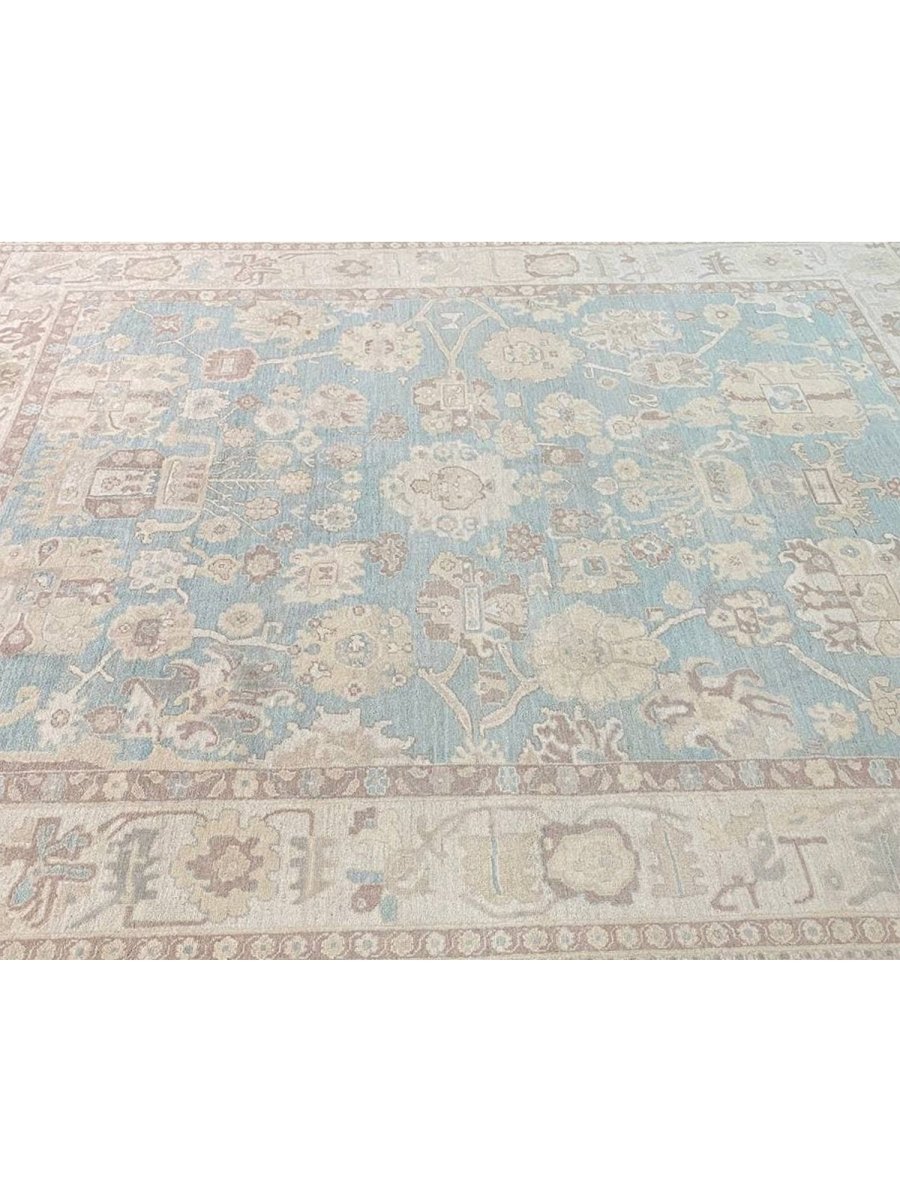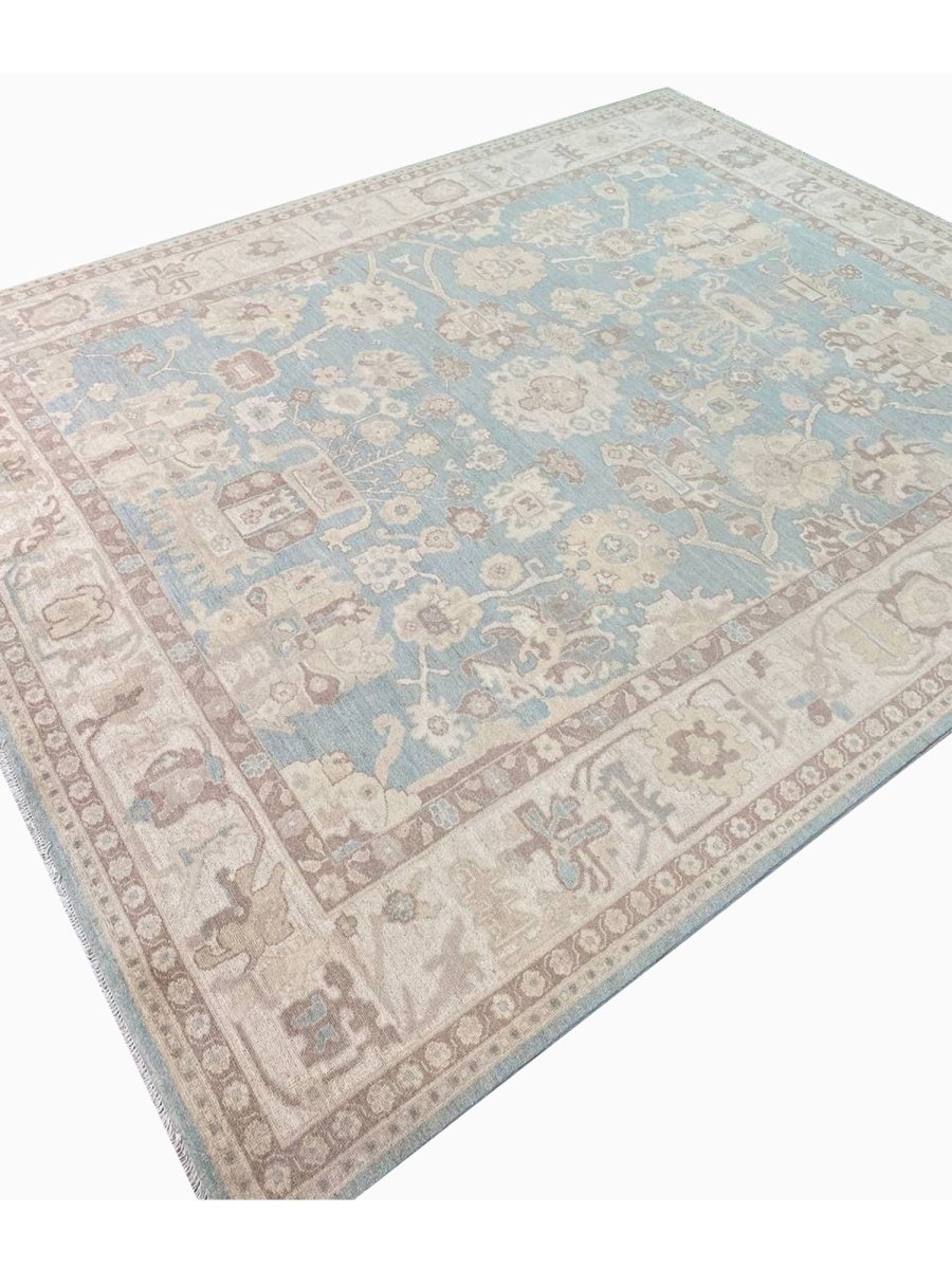 The 8x10 Oushak Style Area Rug is a unique treasure that embodies the rich history of Pakistani weaving and will transform your living area. Made from high-quality wool, this gorgeous traditional rug features a geometric design that blends in perfectly with any type of interior design. It provides a friendly atmosphere and is perfect for large dining rooms, comfortable living spaces, or as a chic addition in your workplace. It is a multipurpose addition to your house because of the striking blend of blue, beige, and brown that offer depth and character. This amazing carpeting is a stunning work of art that elevates your living area and goes beyond simple decoration. Take advantage of free US delivery.