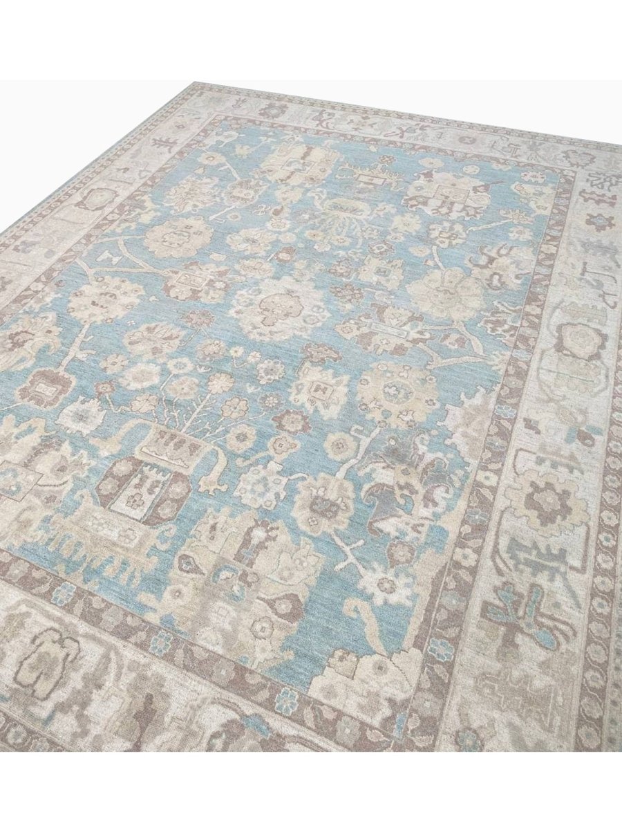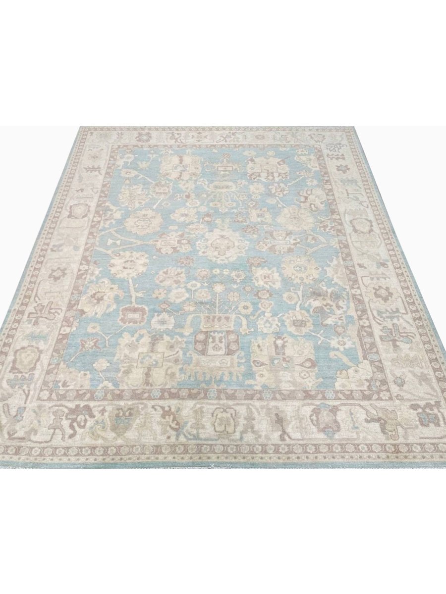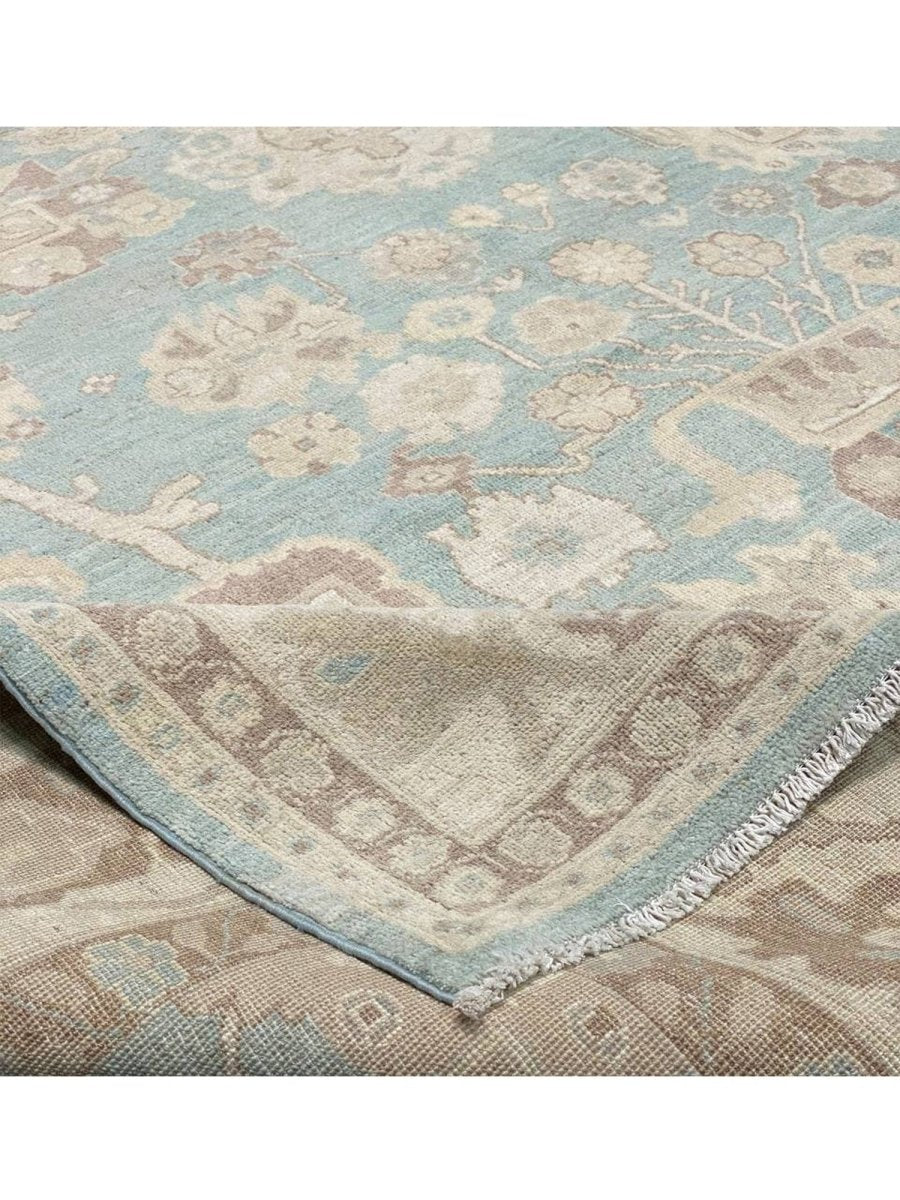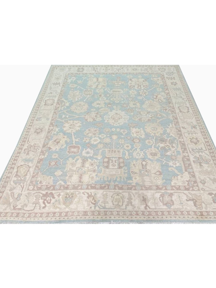 The 8x10 Oushak Style Area Rug is a unique treasure that embodies the rich history of Pakistani weaving and will transform your living area. Made from high-quality wool, this gorgeous traditional rug features a geometric design that blends in perfectly with any type of interior design. It provides a friendly atmosphere and is perfect for large dining rooms, comfortable living spaces, or as a chic addition in your workplace. It is a multipurpose addition to your house because of the striking blend of blue, beige, and brown that offer depth and character. This amazing carpeting is a stunning work of art that elevates your living area and goes beyond simple decoration. Take advantage of free US delivery.