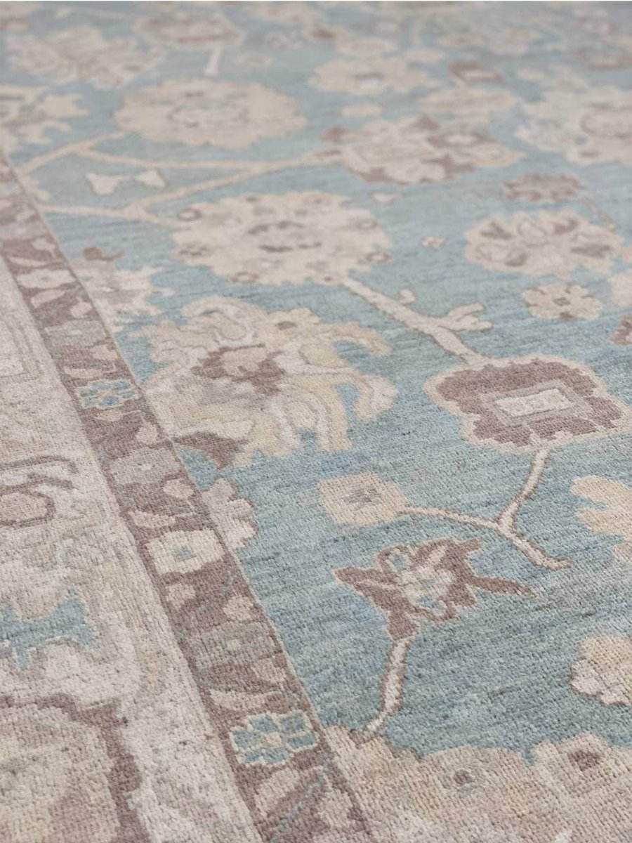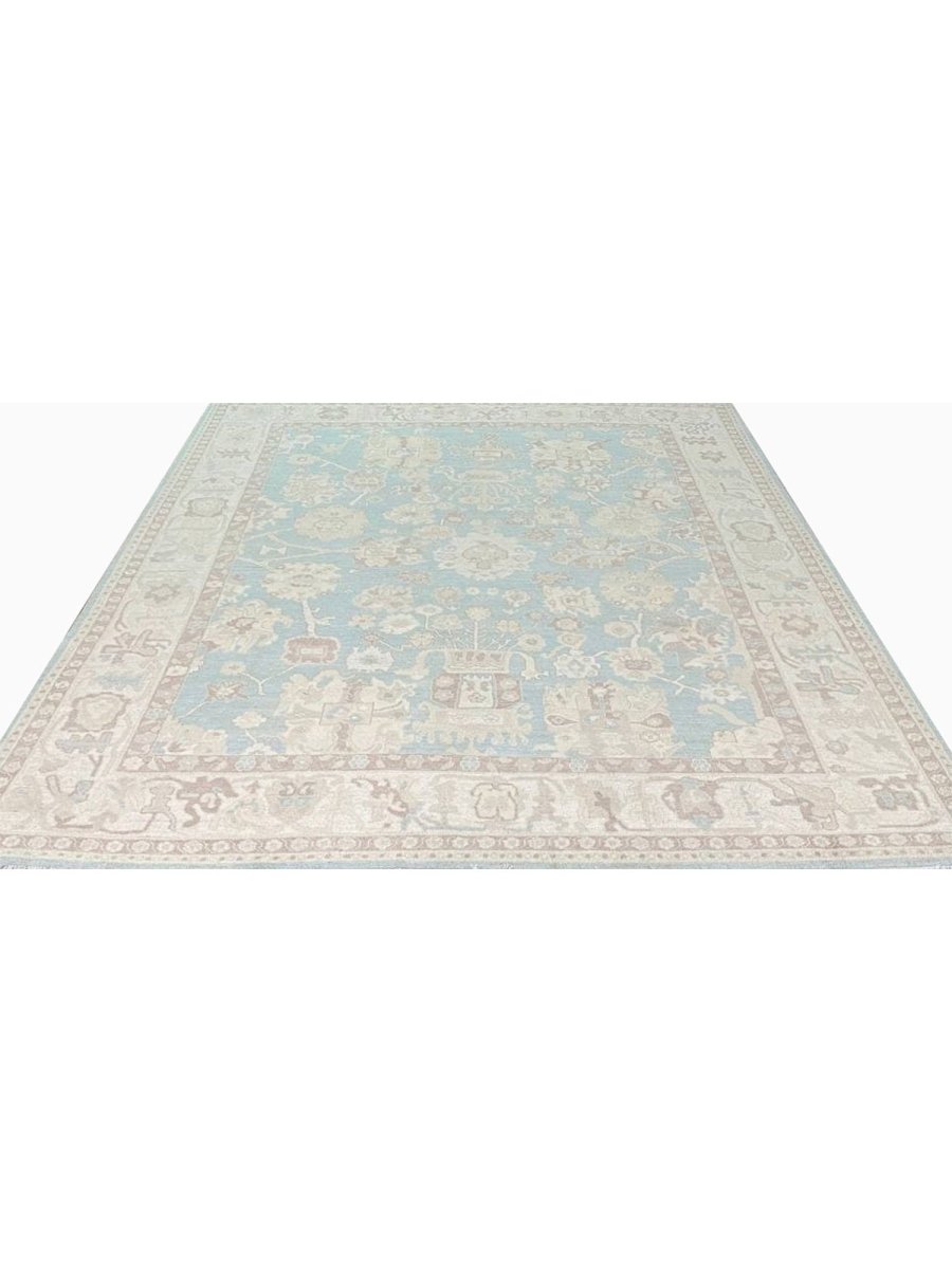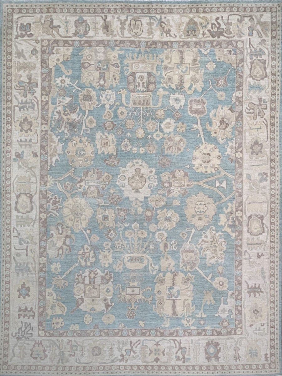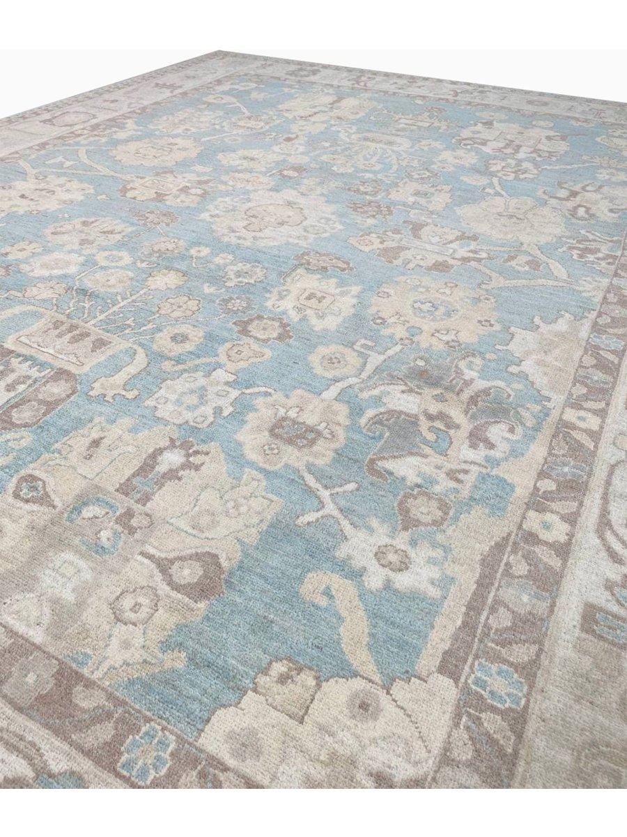 The 8x10 Oushak Style Area Rug is a unique treasure that embodies the rich history of Pakistani weaving and will transform your living area. Made from high-quality wool, this gorgeous traditional rug features a geometric design that blends in perfectly with any type of interior design. It provides a friendly atmosphere and is perfect for large dining rooms, comfortable living spaces, or as a chic addition in your workplace. It is a multipurpose addition to your house because of the striking blend of blue, beige, and brown that offer depth and character. This amazing carpeting is a stunning work of art that elevates your living area and goes beyond simple decoration. Take advantage of free US delivery.