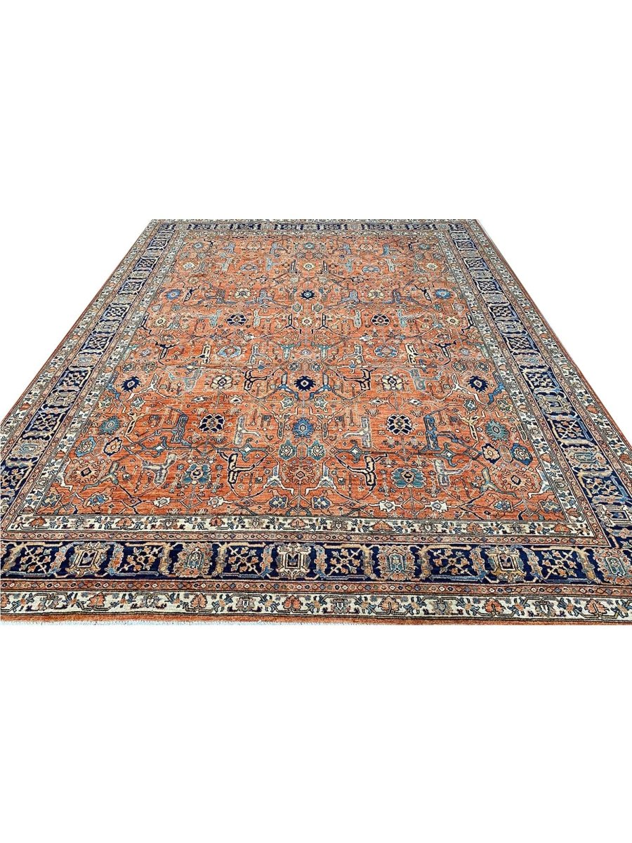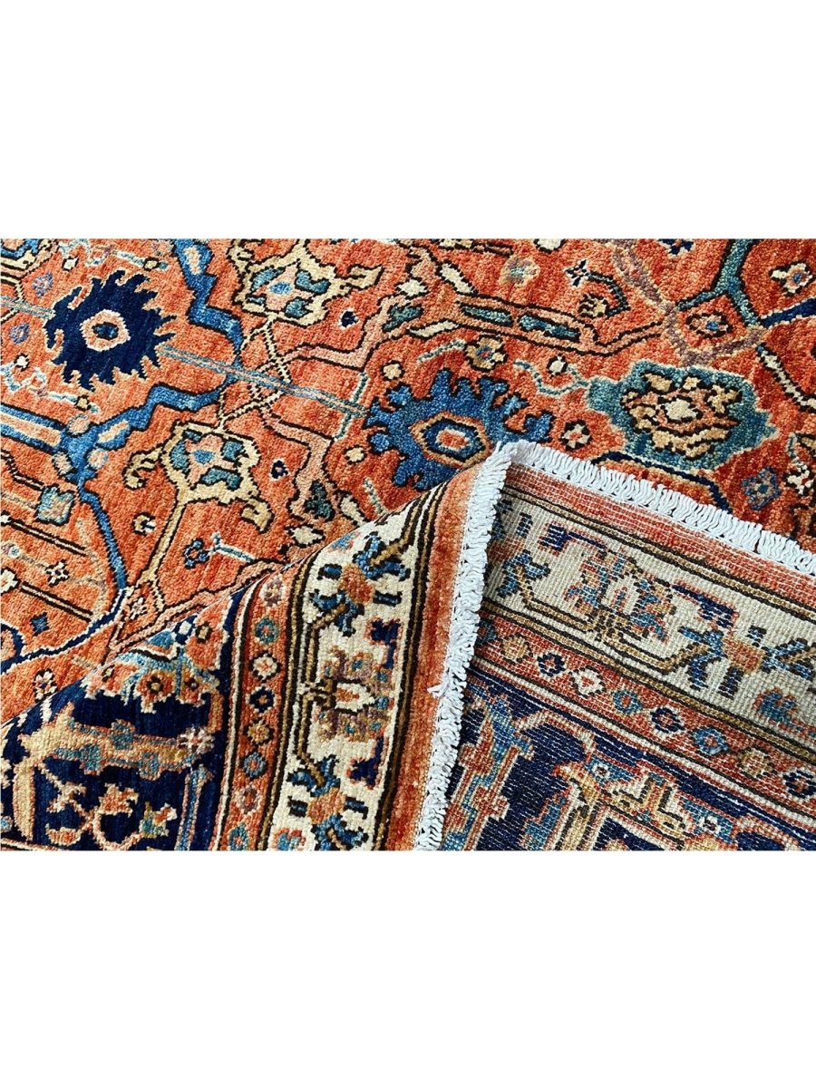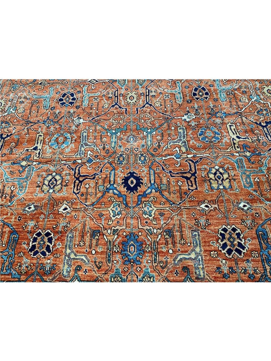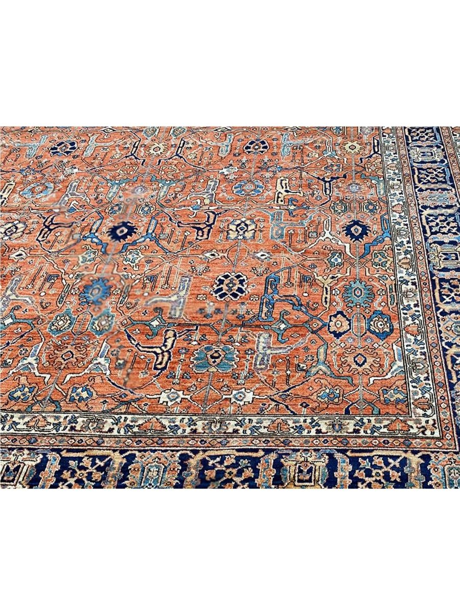 Experience the elegance of the 9x12 Handwoven Serapi Style Area Rug, a unique piece that brings traditional beauty to your home. Hand-knotted from quality wool, this beautiful rug boasts a geometric pattern that adds charm to any room. Ideal for grand living rooms, dining rooms, or as a focal point in your entranceway, it makes any space feel cozy and inviting. The stunning combination of rust, pink, blue, and ivory colors make it a great option for any style. This outstanding item not only beautifies your space but also stands as a stunning piece of art. Get free shipping in the US.