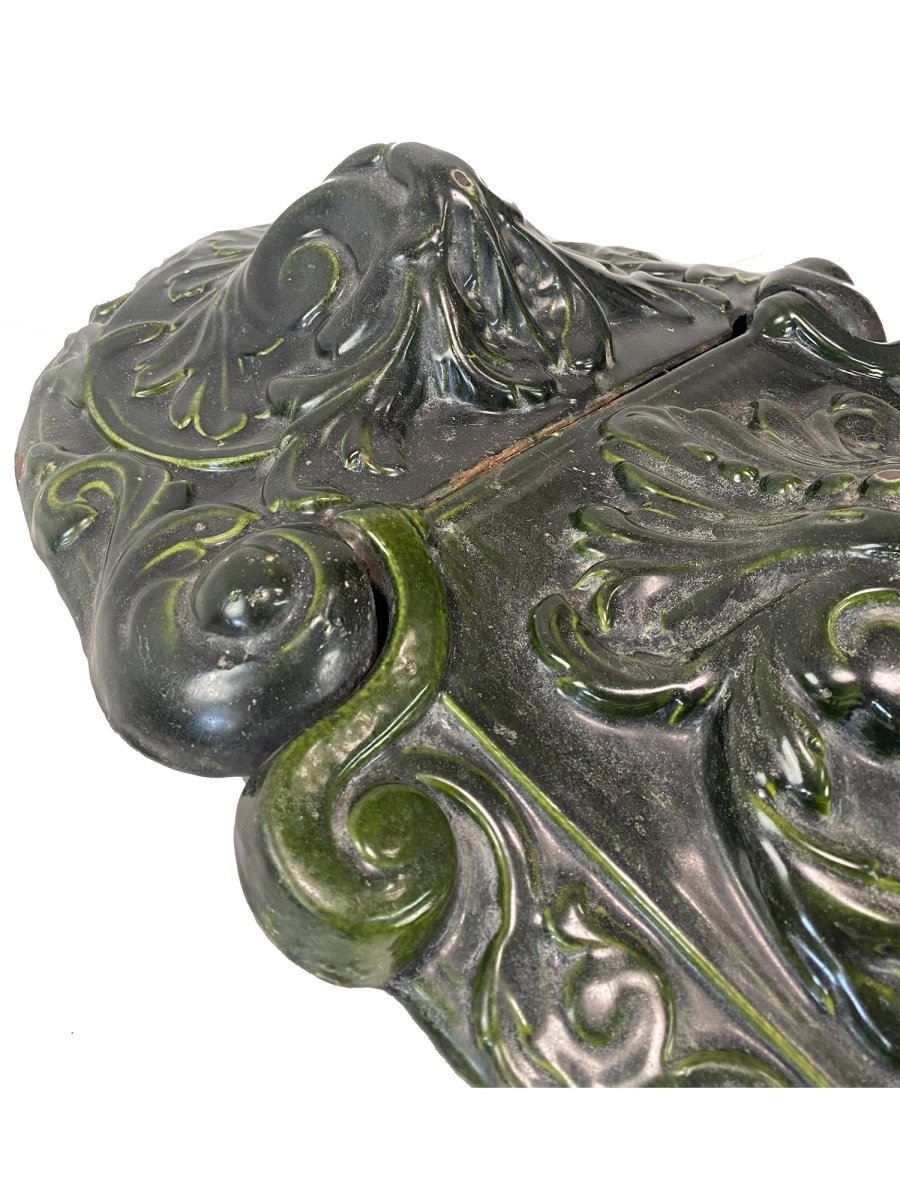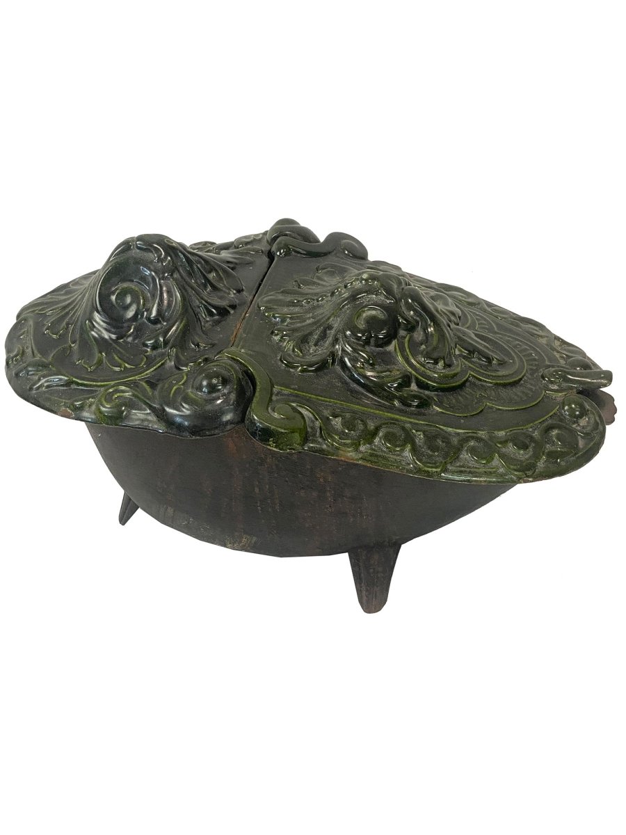 This antique 19th-century cast iron coal holder features a classic green enamel finish, combining practicality with vintage charm. Sturdy and functional, it’s designed to hold coal,wood, or other solid fuels, while its timeless design and durable construction give it strong decorative appeal.