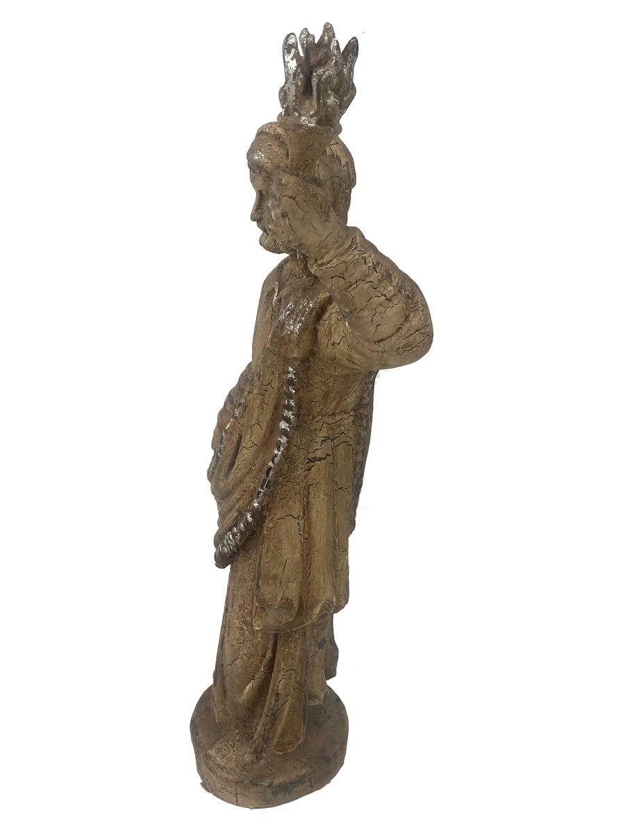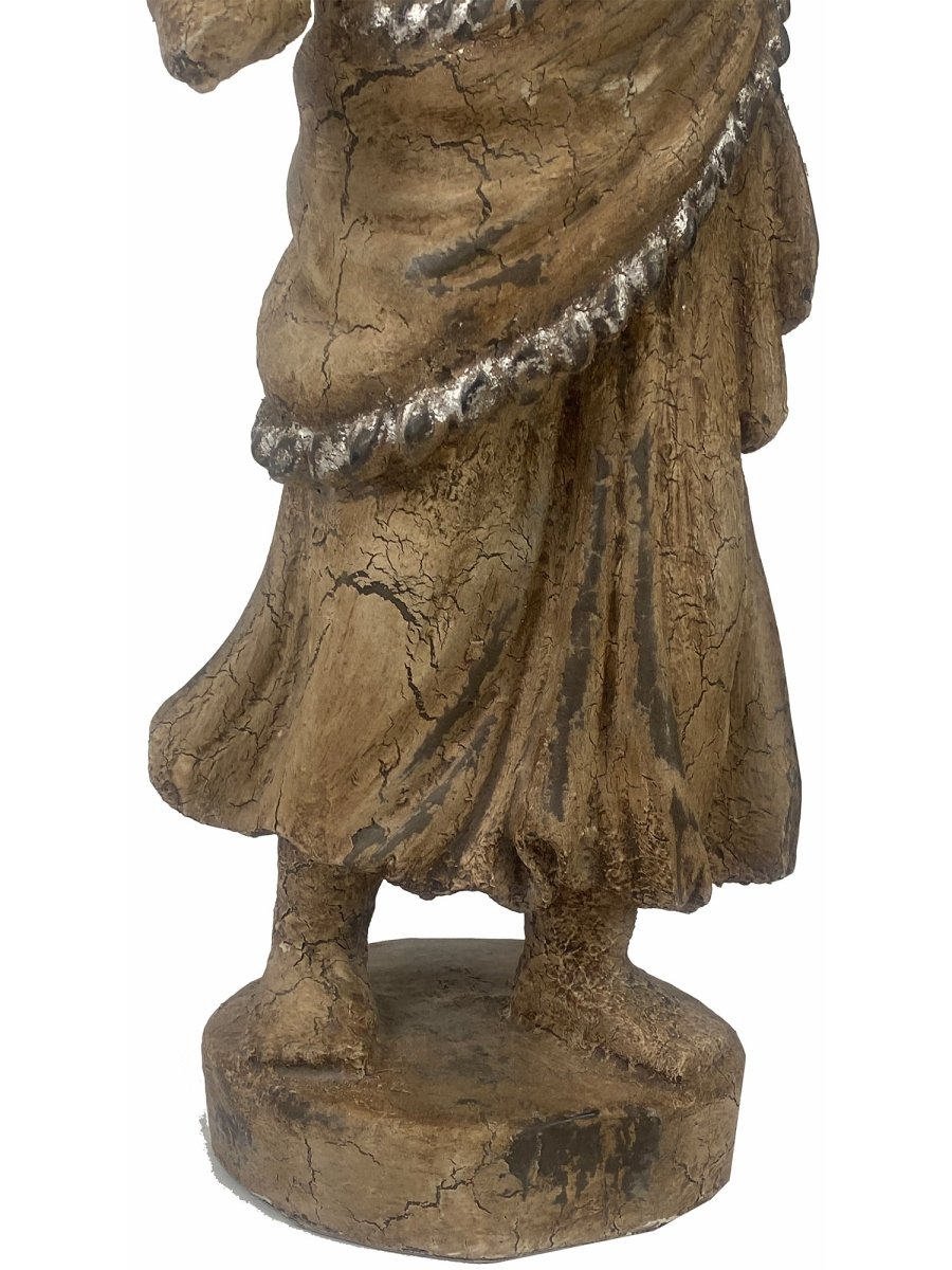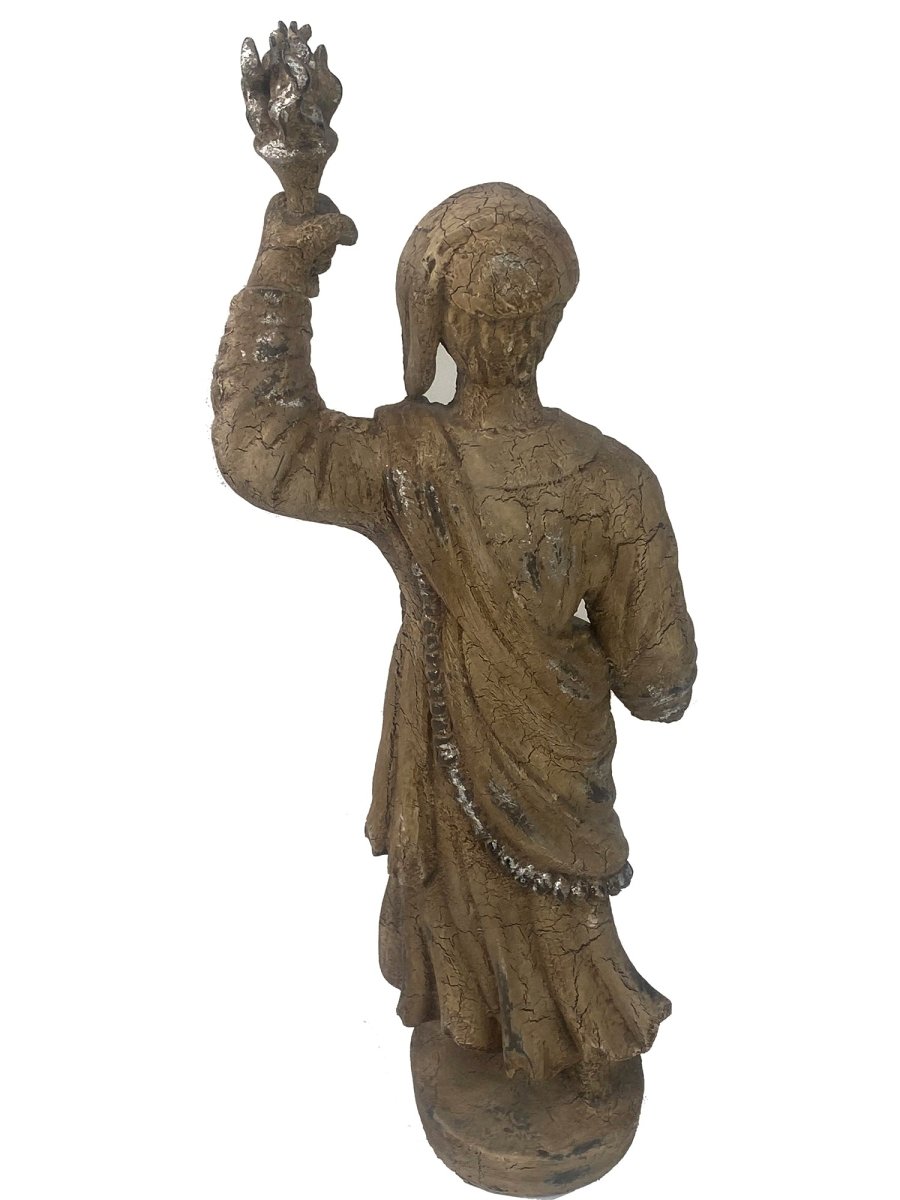 Embrace old-world artisanship with the Italian Tuscan style Santos Sculpture. This 26-inch piece showcases the ease of Tuscan design through stunning detailing and a distinctively weathered finish that infers the hallmark of Italian sculpture. The figure with its elegant posture and lifelike folds in the drapery creates a feeling of classical beauty in any refined space.