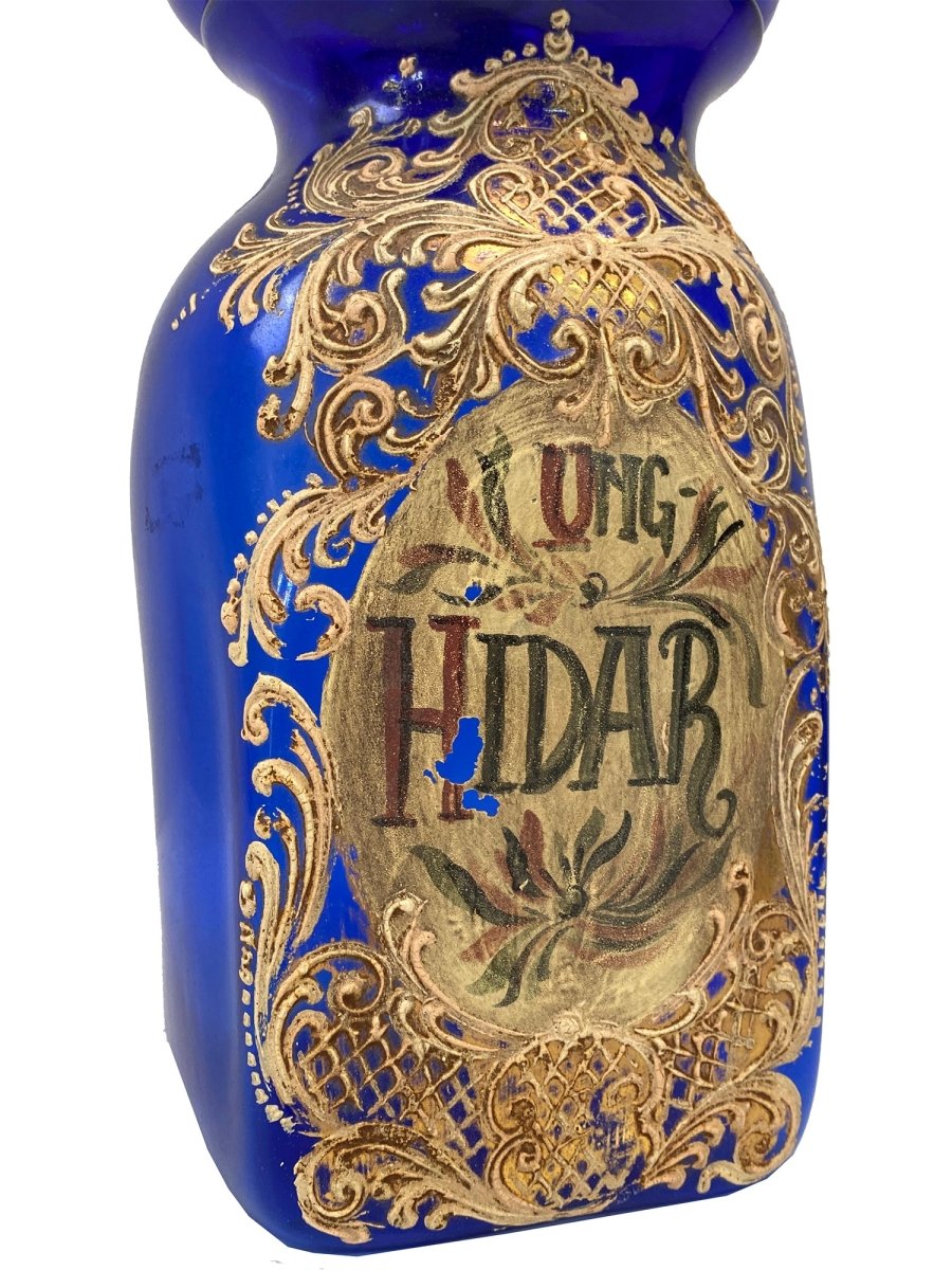 Old Italian Hand Painted Leaded Glass Pharmacy Canister - 3906