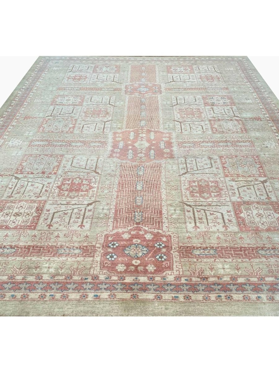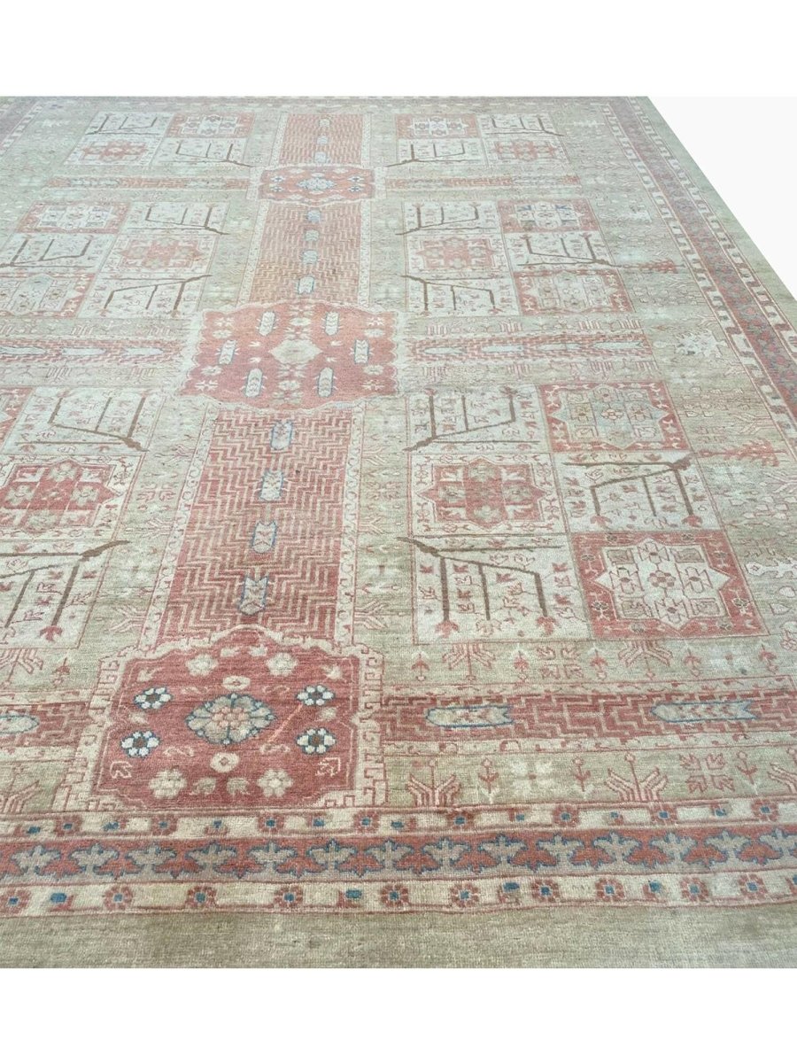 Add a touch of casual style to your home with this 10x13 Old Persian Bakshayesh Area Rug, crafted in Turkey. This traditional rug features a captivating geometric pattern, showcasing a simple yet effective design in an olive green, ivory, rust, brown, and blue palette. Its durable wool construction ensures longevity and easy care. The clean finish reflects quality craftsmanship and design. This piece effortlessly brightens, adding warmth, texture, and a relaxed feel. A blend of simple design and function, it easily enhances any space. Enjoy the benefit of free shipping across the United States. Each rug offers a distinct look, with subtle variations inherent to its creation.