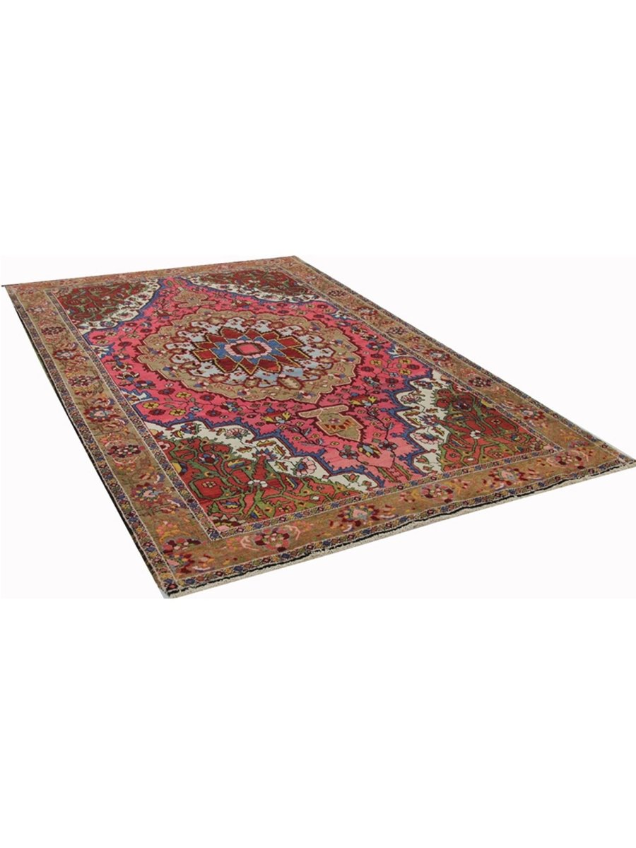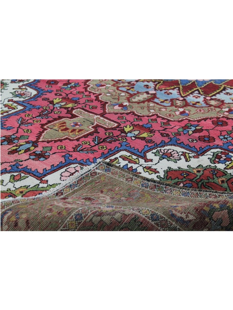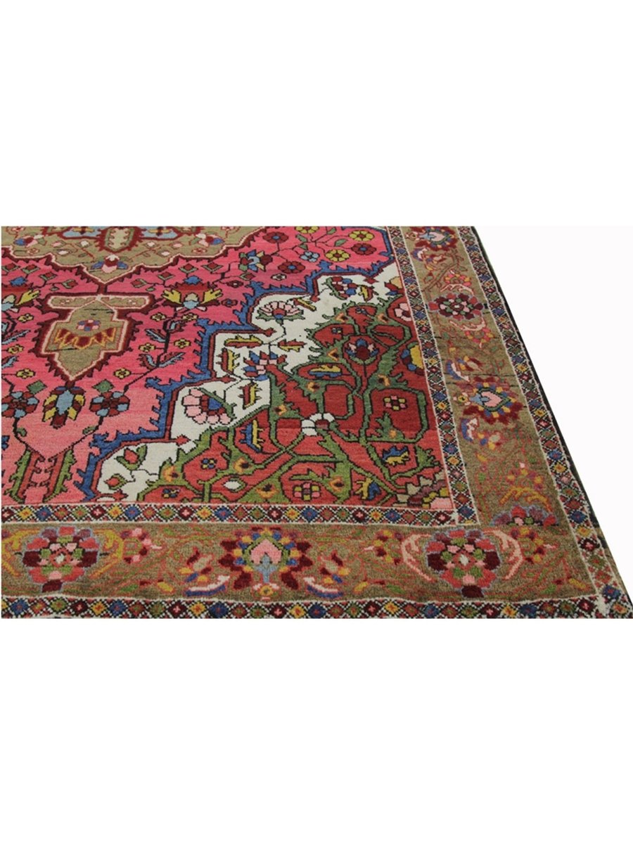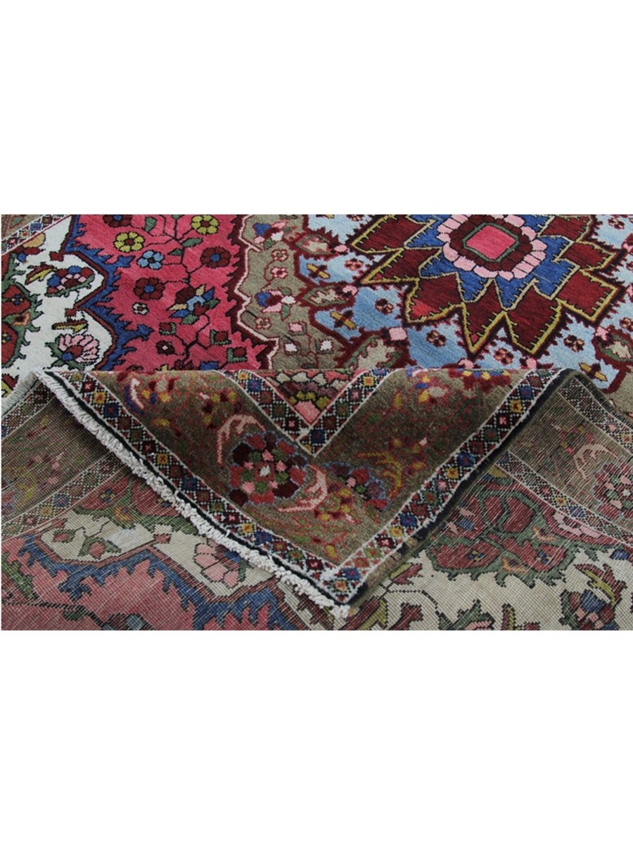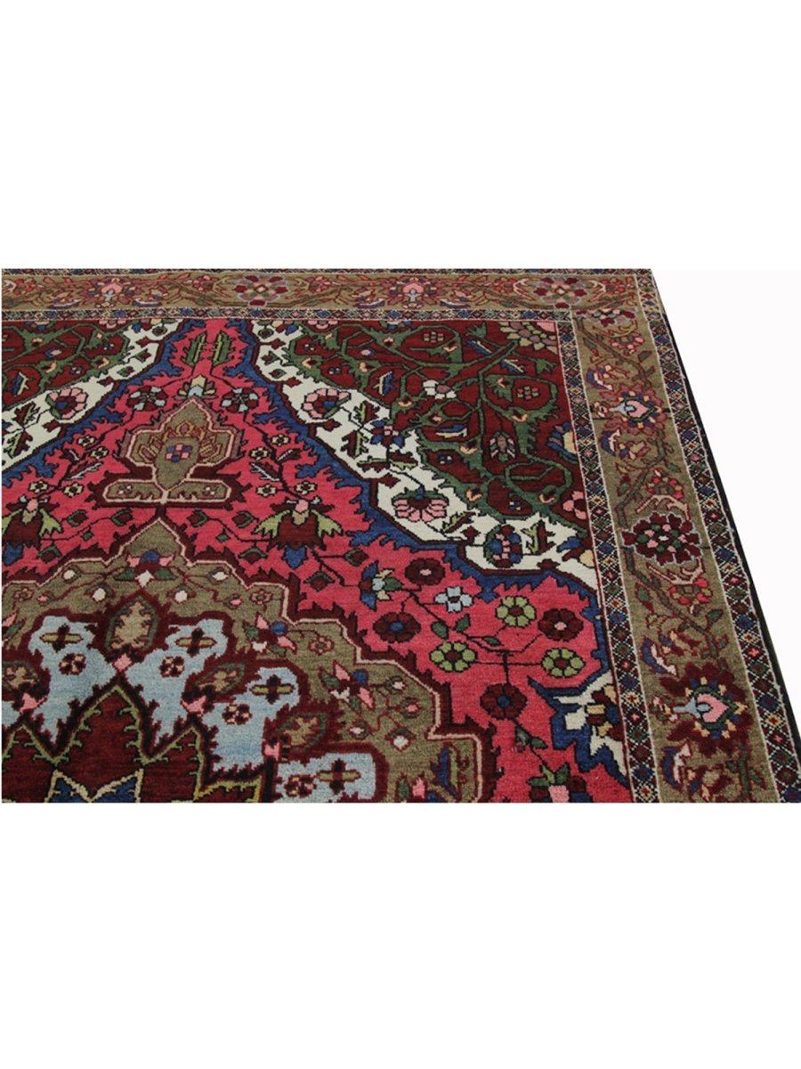This 4x7 Antique Persian Bakhtiari rug is a bold and beautiful piece with a classic medallion pattern. Hand-knotted in Persia, this piece features strong, earthy colors, including deep red, olive green, sky blue, and ivory, all woven together in a rich floral design. The sharp contrast between the central medallion and the colorful background gives this rug a striking look. It’s perfect for adding warmth and character to smaller rooms, hallways, or cozy corners.
