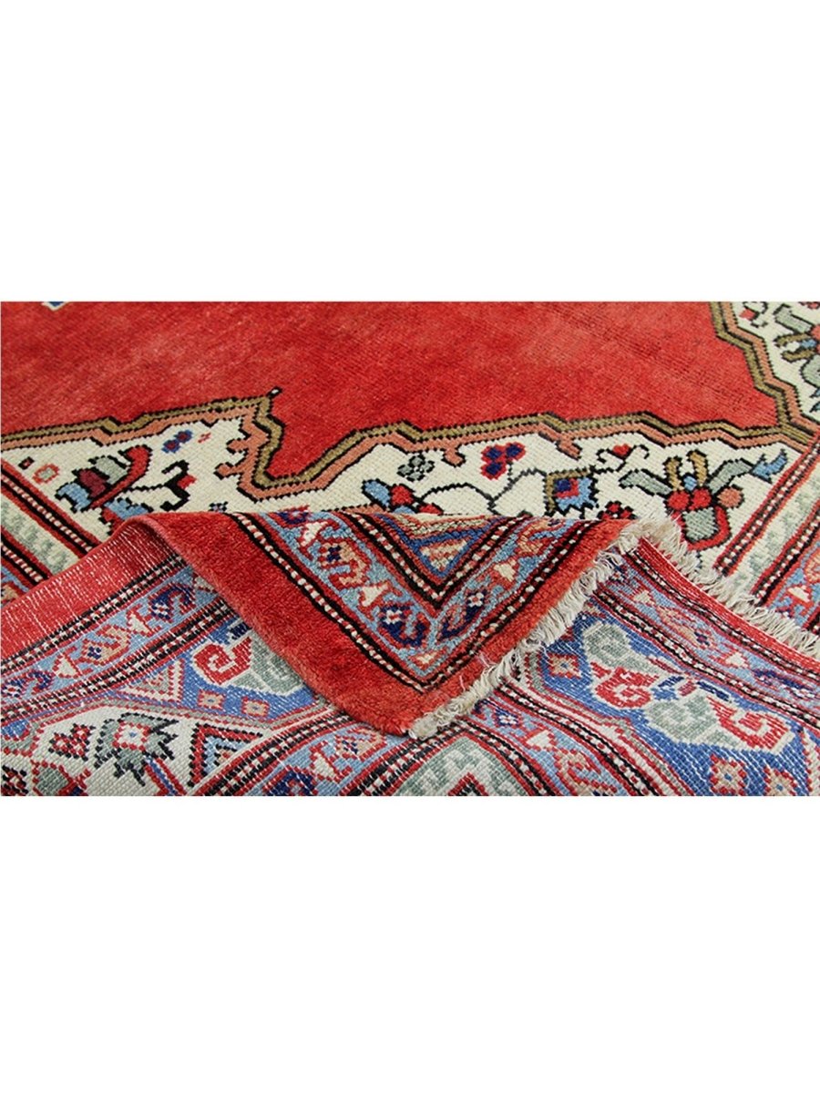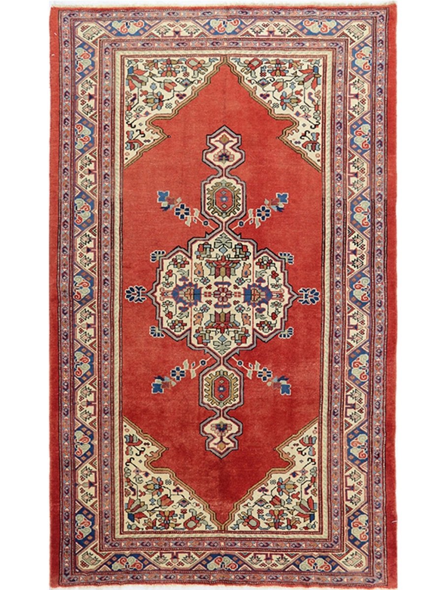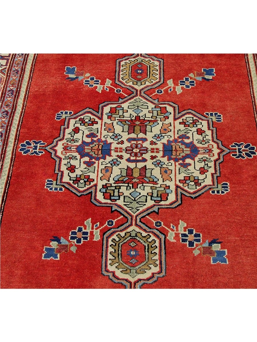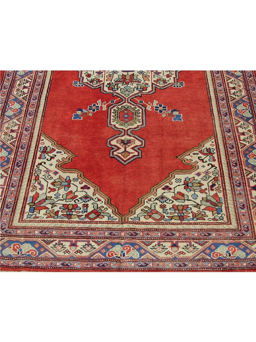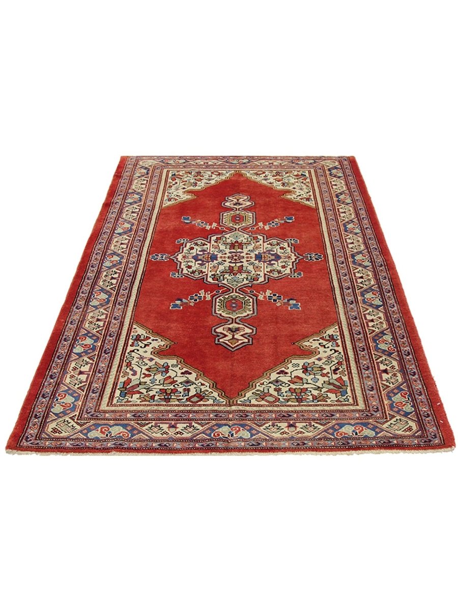 Hand-knotted in Persia with durable wool and skilled craftsmanship, this charming 4x7 Old Persian Heriz rug offers lasting beauty and visual interest for your home. The distinctive medallion pattern, featuring bold geometric and floral elements, is crafted with careful attention. This rug features a field predominantly in deep red, with pattern elements that notably incorporate blue and ivory tones. It's versatile, and a smaller size is ideal for accenting living areas, entryways, or the kitchen, adding classic style and undeniable charm. This traditional Persian rug is renowned for its sturdy construction and visually appealing design, making it an ideal choice for smaller spaces. Adding this rug is an easy way to bring enduring character into a room, offering many years of use and enjoyment. Enjoy the convenience of free US shipping right to your door for this fabulous rug.