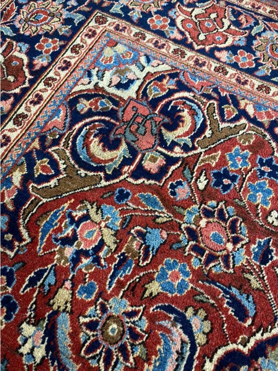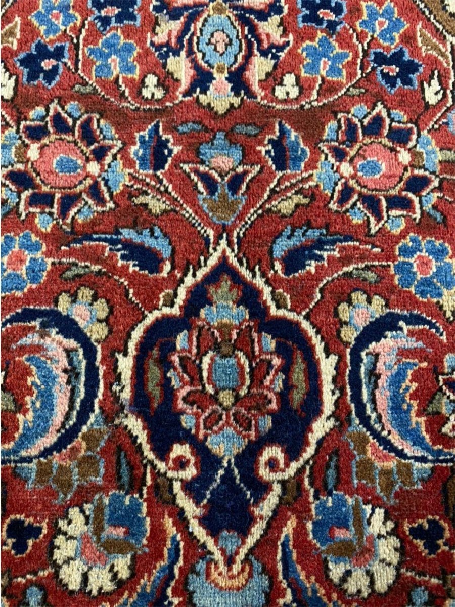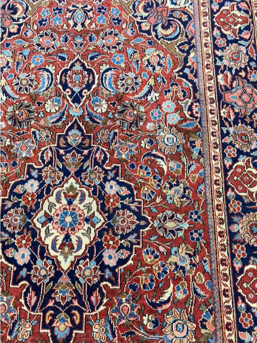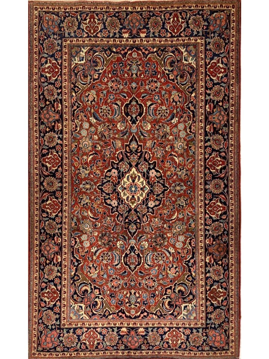 Hand-knotted in Persia, this 4x7 Old Persian Kashan rug offers a captivating blend of tradition and artistry. The intricate floral pattern radiates from a distinguished central medallion, showcasing a rich color palette of deep red, navy blue, and earthy tones. Crafted from fine wool, this rug offers both durability and a plush texture underfoot. The floral motifs and symmetrical medallion create a sense of balance and elegance, making it a timeless piece for small living rooms, offices, or formal dining areas. Its compact size allows it to bring warmth and character to more intimate spaces. Every detail reflects generations of skilled craftsmanship. Free shipping is available across the US.