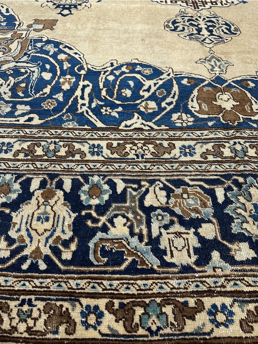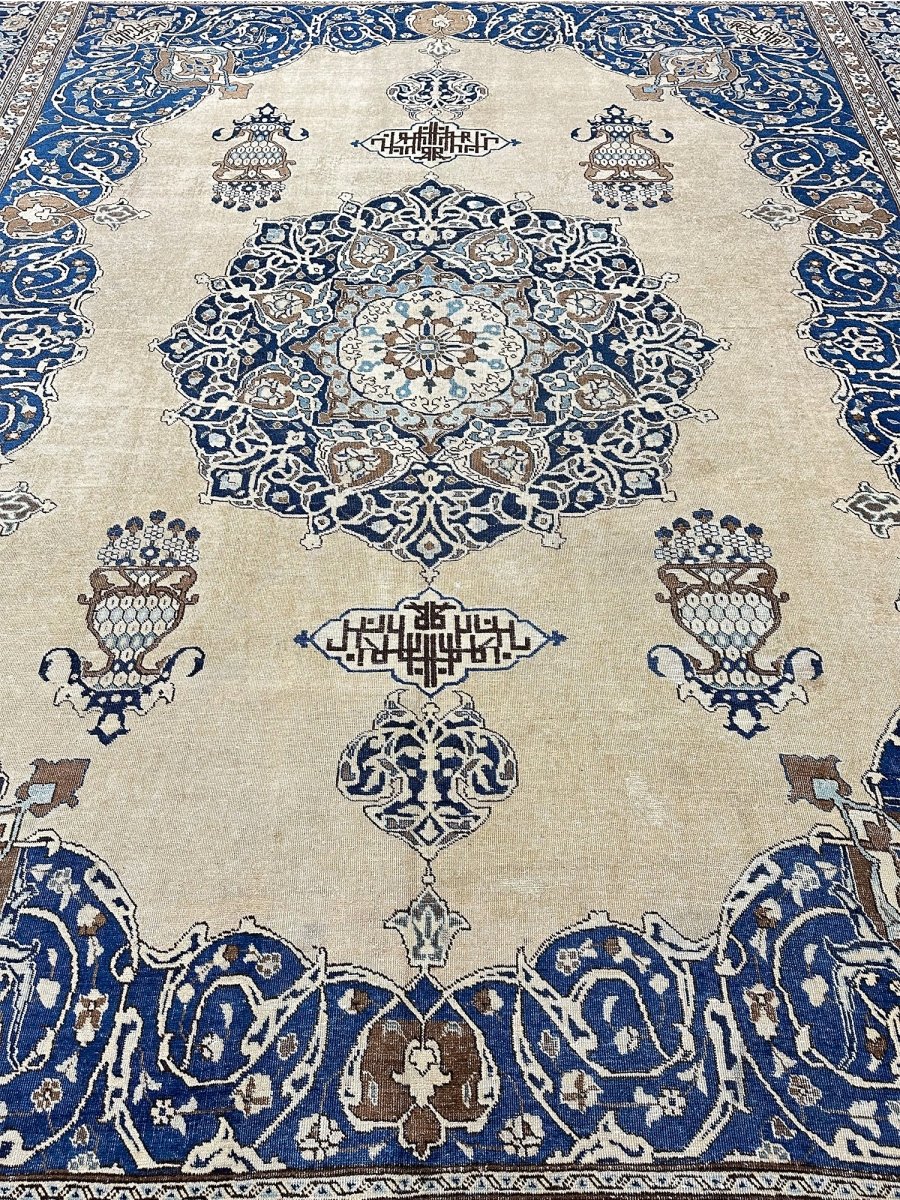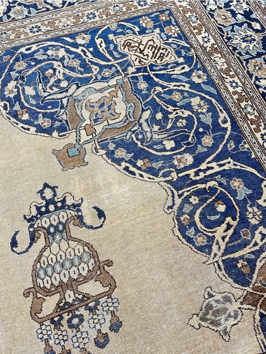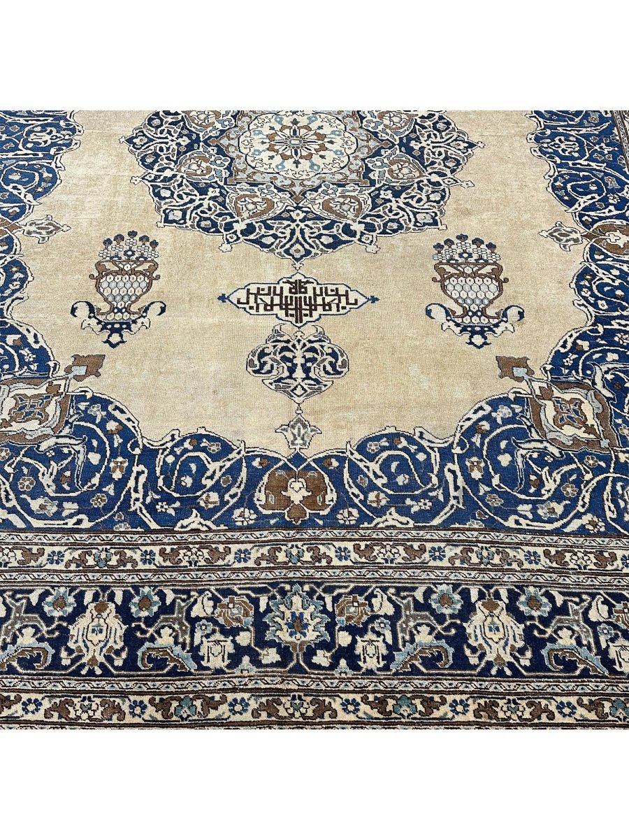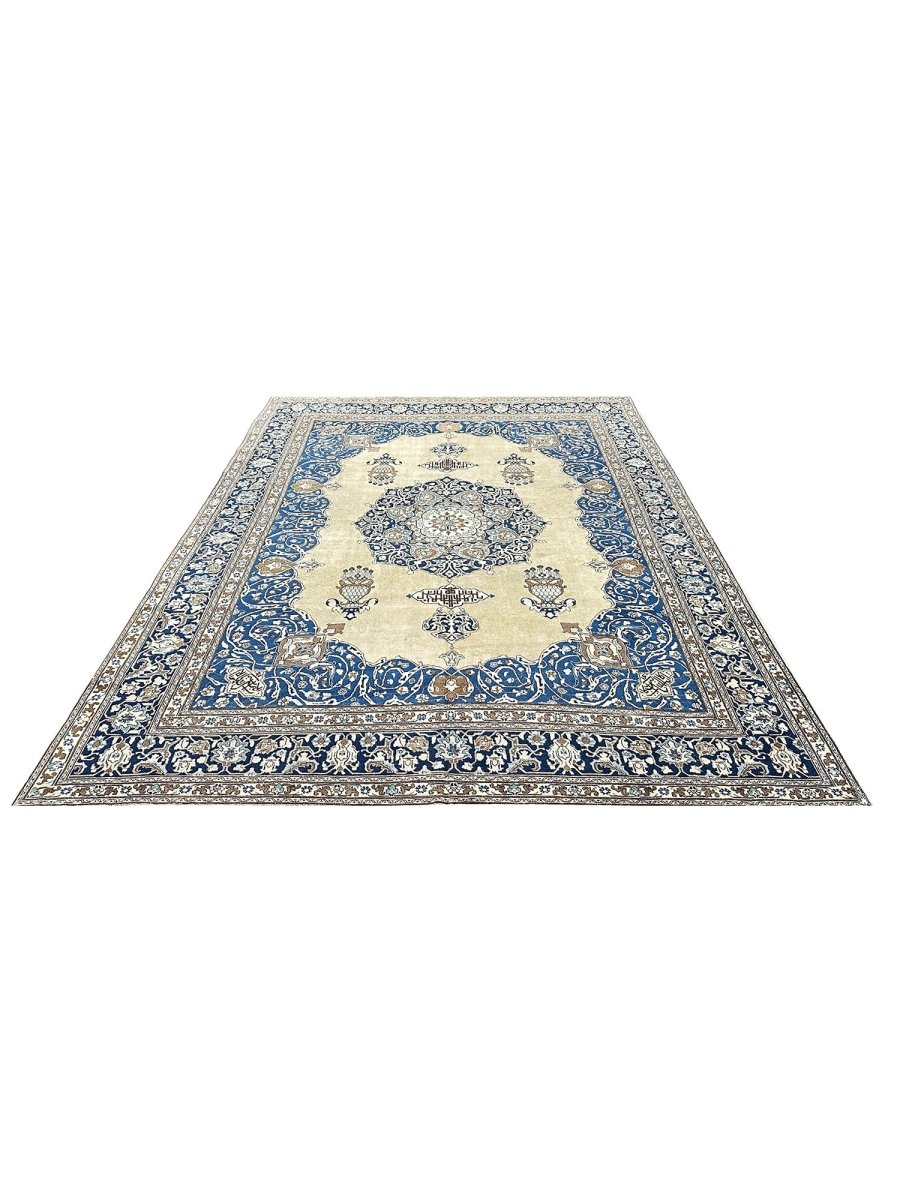 Transform your space with the 11x14 Antique Persian Tabriz Area Rug, a unique piece that embodies the timeless elegance of classic Persian rug. Crafted from premium wool, this sophisticated traditional rug showcases a floral medallion design that seamlessly enhances any interior it fosters a warm and inviting ambiance. The refined shades of beige, blue, and brown provide added depth and style, making it a chic enhancement to your home. This exquisite rug serves not only as a decorative feature but also as a stunning work of art that brightens your living area. Plus, enjoy free shipping across the US.