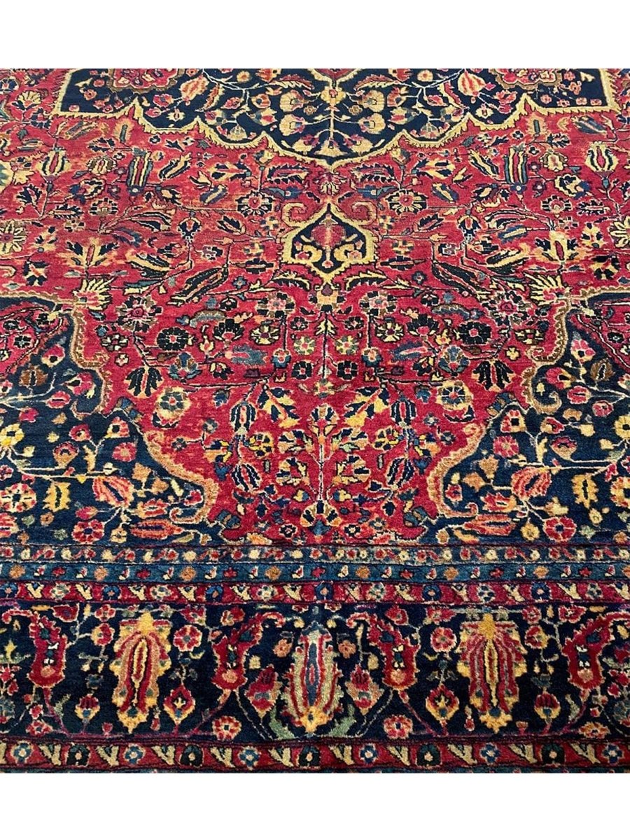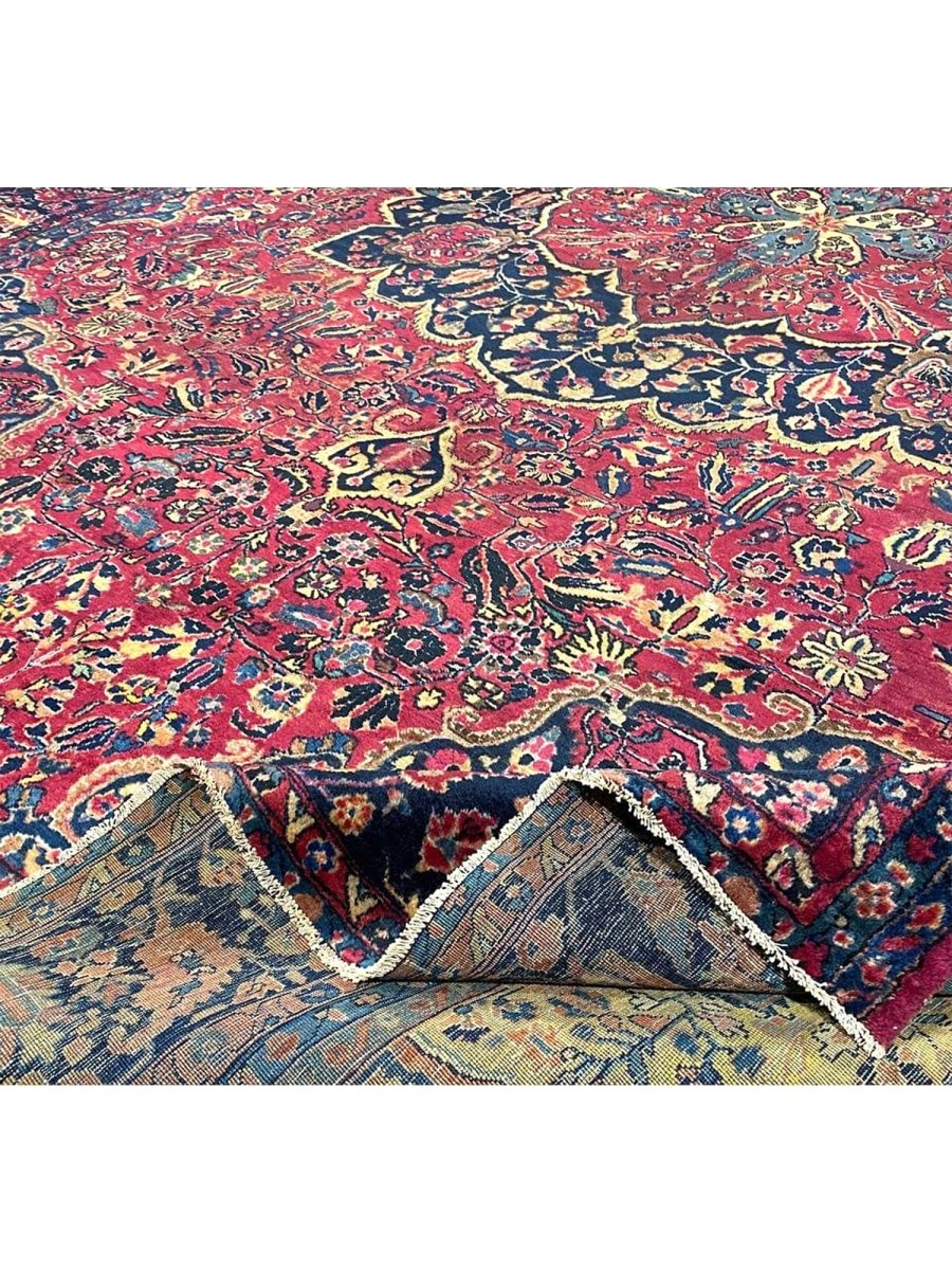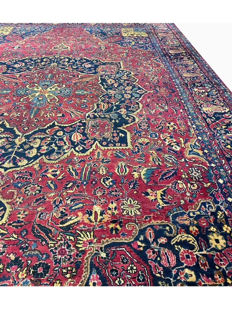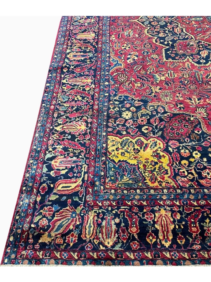 Immerse your space in the grandeur of this 12x16 Antique Persian Sarouk Area Rug. Handwoven in Persia, this rug showcases the enduring artistry of Persian weaving. The expansive size makes it a magnificent centerpiece for large living rooms and spacious bedrooms, adding a touch of historical elegance to your decor. The central medallion pattern gives it a sophisticated and eye-catching focal point. The color palette features a vibrant combination of red, blue, gold, and beige tones. These rich and contrasting colors create a lively and inviting ambiance. Made from durable wool, this rug is not just a floor covering; it's a piece of history that will enhance your home decor for generations.