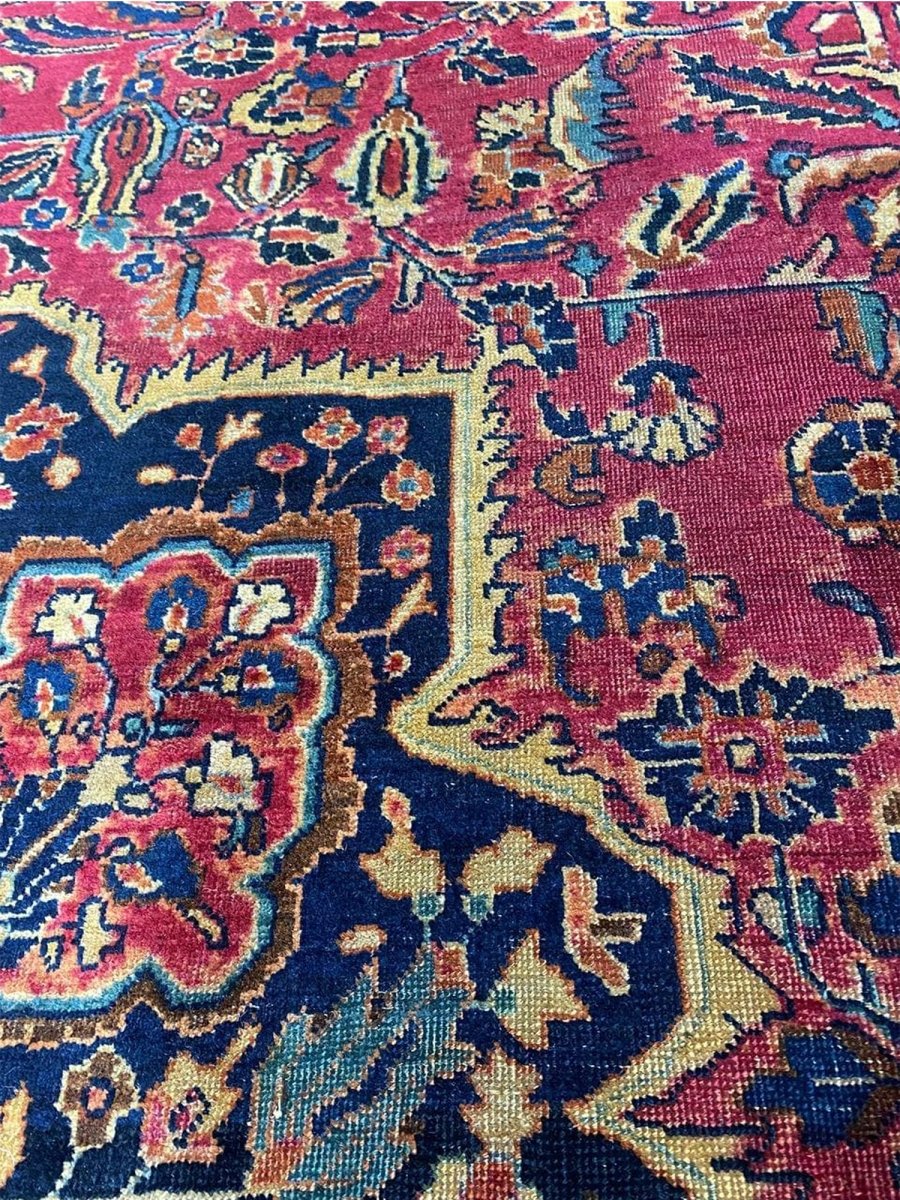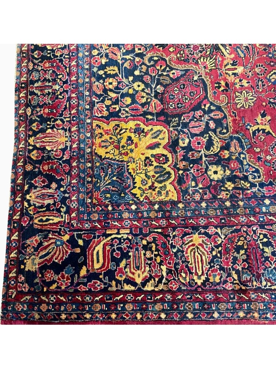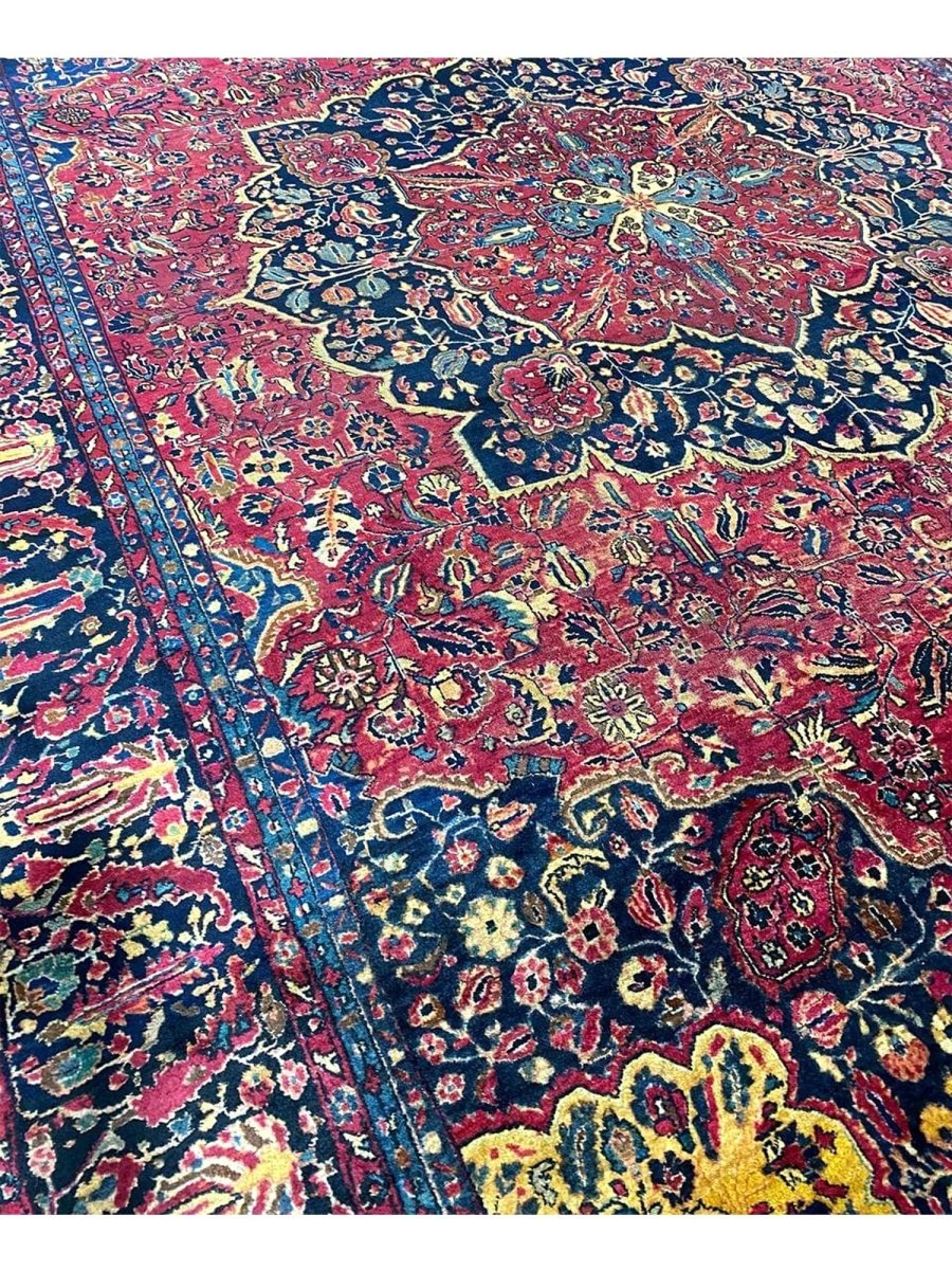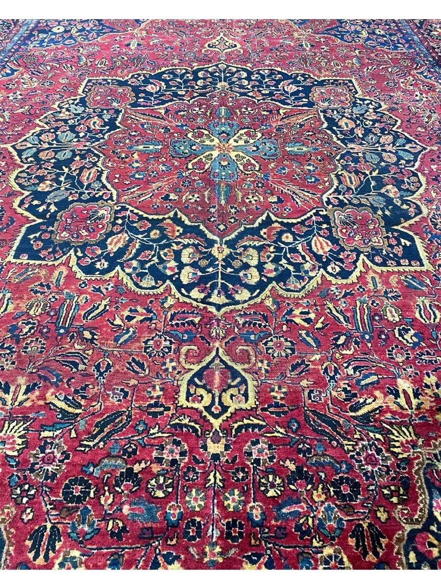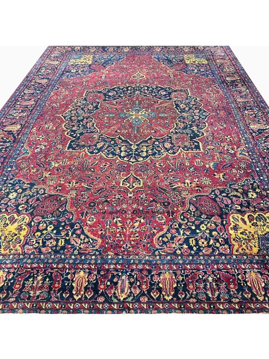 Immerse your space in the grandeur of this 12x16 Antique Persian Sarouk Area Rug. Handwoven in Persia, this rug showcases the enduring artistry of Persian weaving. The expansive size makes it a magnificent centerpiece for large living rooms and spacious bedrooms, adding a touch of historical elegance to your decor. The central medallion pattern gives it a sophisticated and eye-catching focal point. The color palette features a vibrant combination of red, blue, gold, and beige tones. These rich and contrasting colors create a lively and inviting ambiance. Made from durable wool, this rug is not just a floor covering; it's a piece of history that will enhance your home decor for generations.
