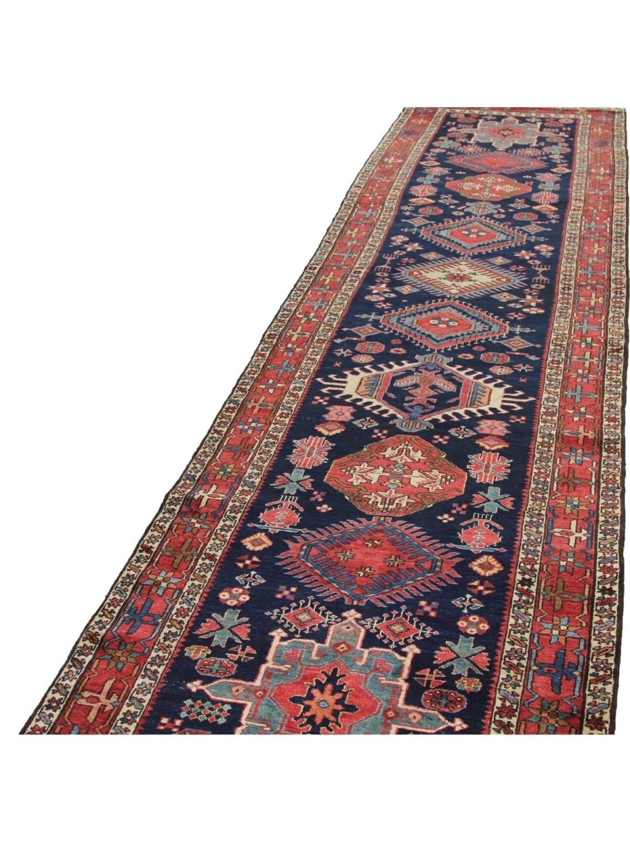Add a touch of casual style to your home with this 3x13 Old Persian Heriz Runner Rug, crafted in Persia. This classic rug features a captivating repetitive, medallion pattern, showcasing a simple yet effective design in a navy, red, blue, pink, and beige palette. Its durable wool construction ensures longevity and easy care, perfect for narrow spaces such as hallways or entryways. The clean finish reflects quality craftsmanship and design. This piece effortlessly brightens, adding warmth, texture, and a relaxed feel. A blend of simple design and function, it easily enhances any space. Enjoy the benefit of free shipping across the United States. Each rug offers a distinct look, with subtle variations inherent to its creation.