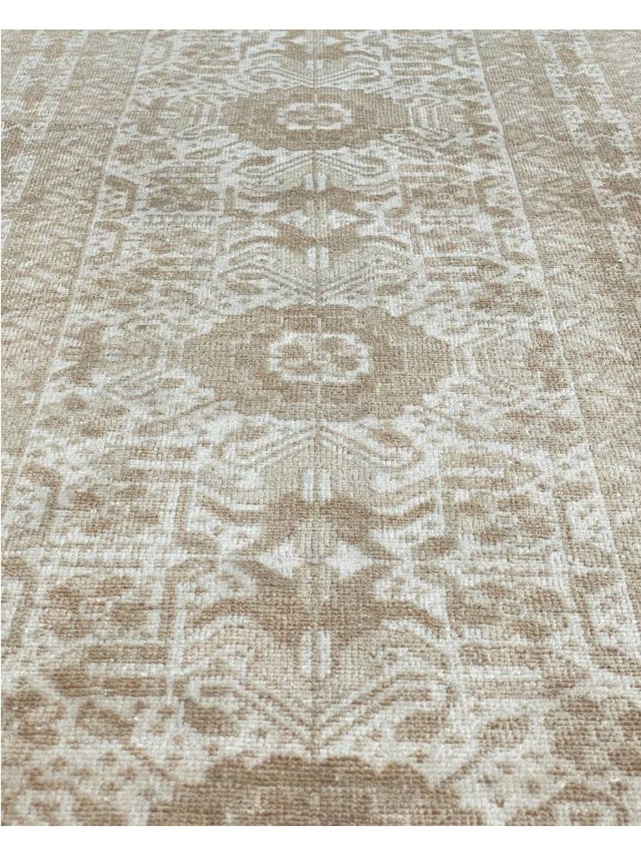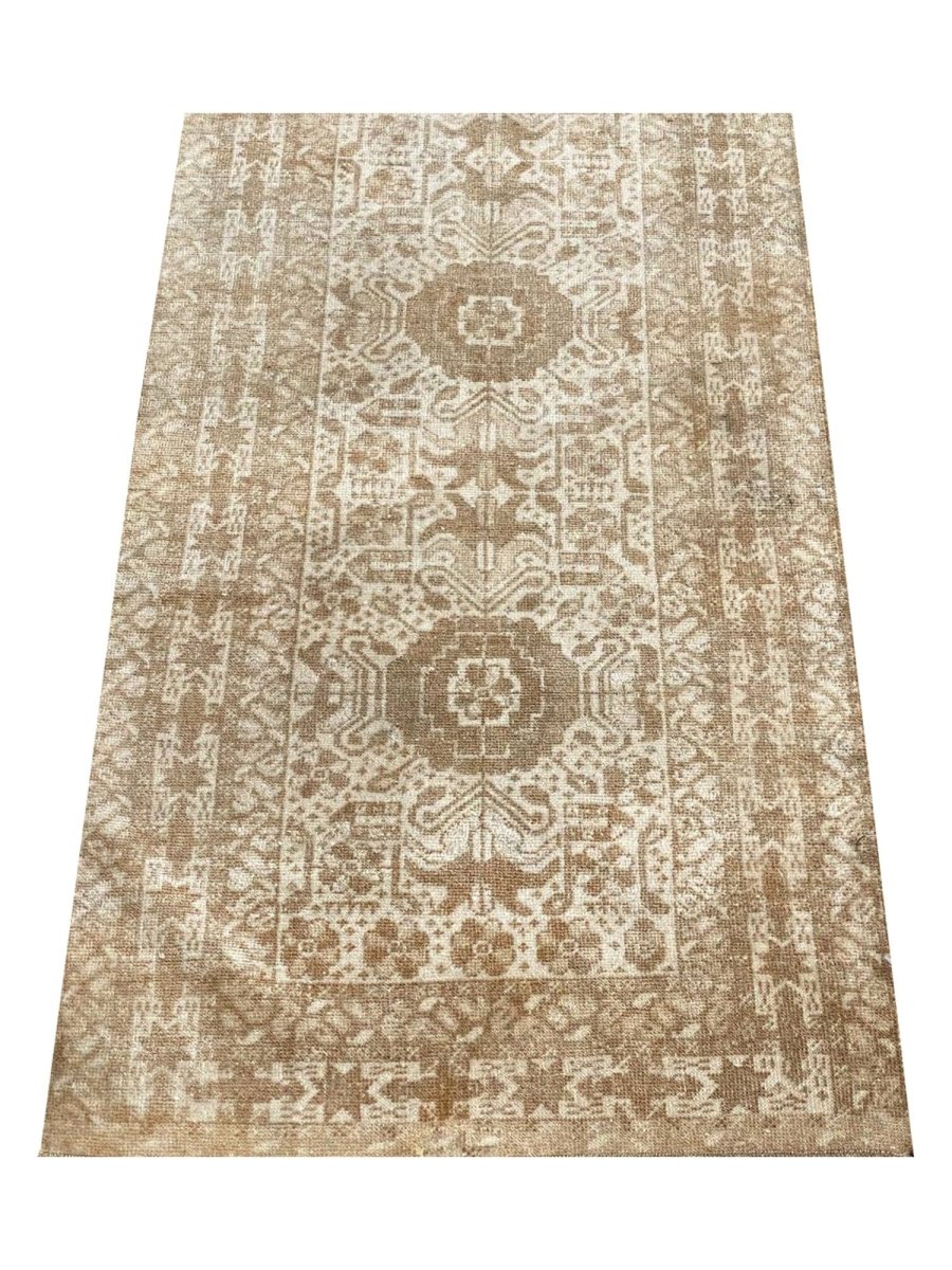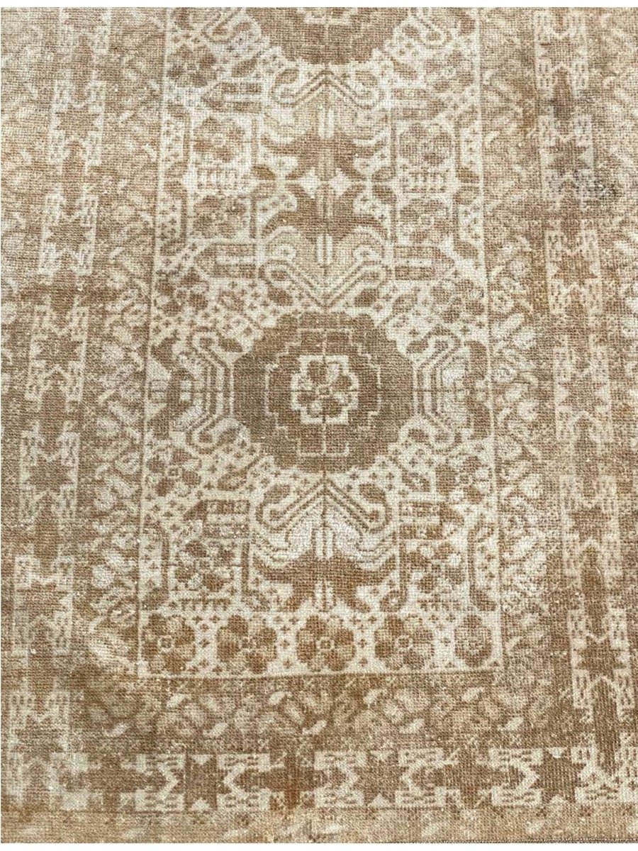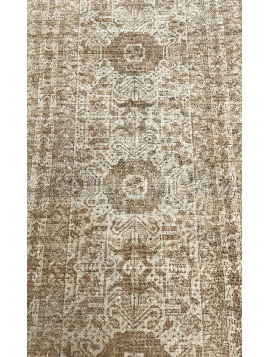 The 3x13 handwoven Old Afghani Runner Rug is a unique treasure that embodies the rich history of Afghani weaving and will transform your living area. Made from high-quality wool, this gorgeous rug features a geometric design that blends in perfectly with any type of interior design. It provides a friendly atmosphere and is perfect for narrow spaces such as hallways or entryways or as a chic addition in your workplace. It is a multipurpose addition to your house because of the striking blend of beige, light, and dark brown hues that offer depth and character. This amazing carpeting is a stunning work of art that elevates your living area and goes beyond simple decoration. Take advantage of free US delivery.