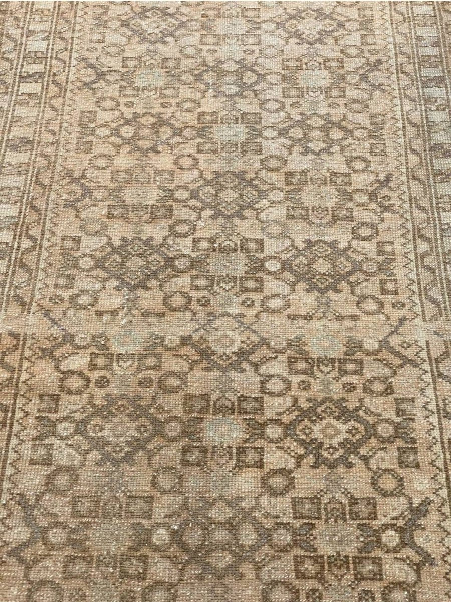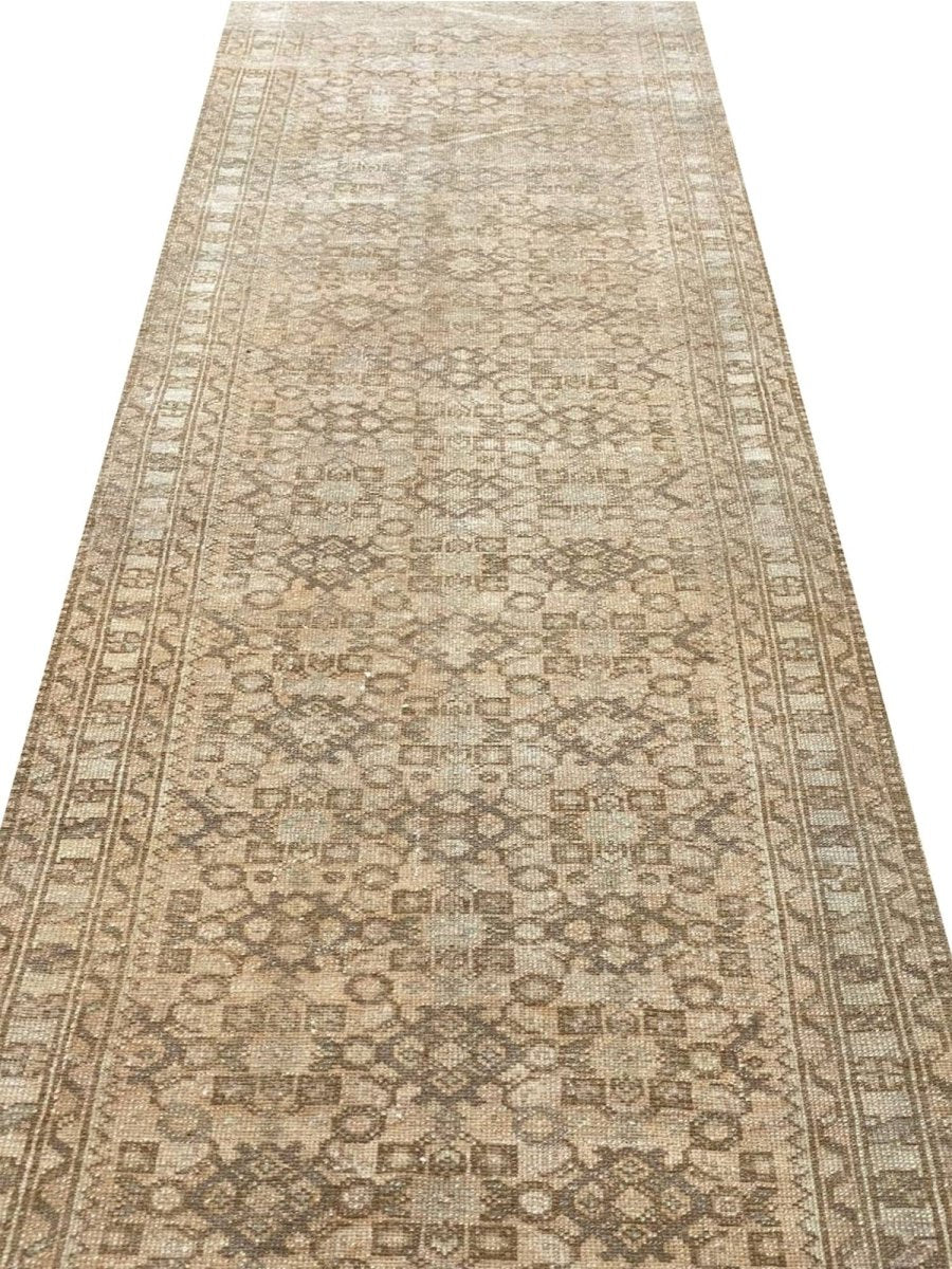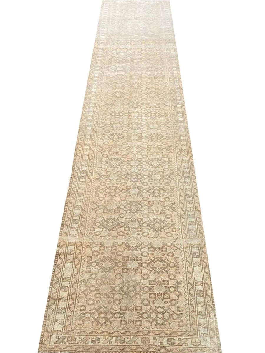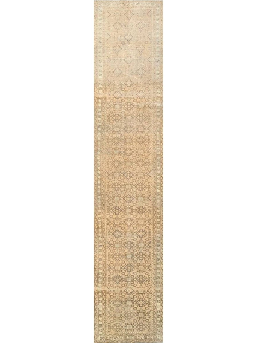 Elevate your home with the enduring allure of this 3x13 Old Persian Hamadan Runner Rug. Meticulously handwoven in Persia, this rug exemplifies the celebrated artistry of Hamadan weaving. Its size is a perfect fit for hallways, entryways, and other narrow spaces, introducing an element of traditional elegance to your decor. The rug showcases a geometric pattern, demonstrating a sense of refined beauty. The color palette presents a harmonious combination of beige and light brown tones. Crafted from durable wool, this runner rug is made to last, promising to be a cherished element in your home for years. Enjoy the beauty and heritage of a handwoven Persian rug, with the added benefit of free US shipping.