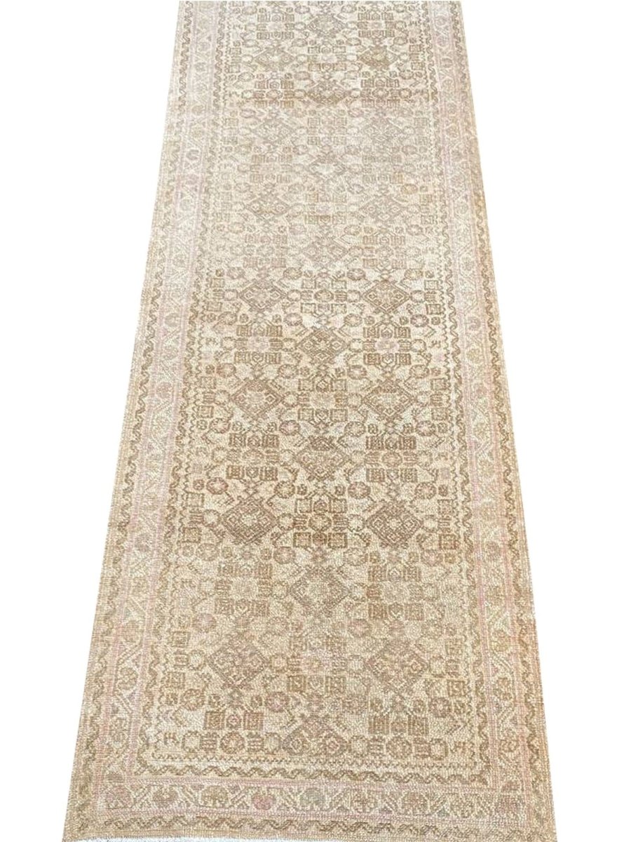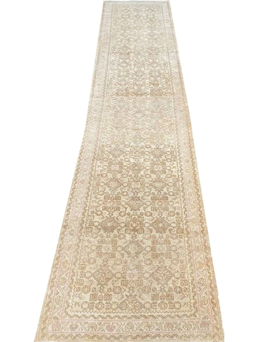 Enhance your home with the timeless charm of this 3x13 Old Persian Hamadan Runner Rug. Handwoven in Persia, this rug showcases the enduring craftsmanship of traditional weaving. Its size makes it a perfect choice for hallways, entryways, and other narrow spaces, adding a touch of traditional elegance to your decor. The rug features a geometric pattern, offering a sense of refined beauty. The color palette showcases a harmonious blend of beige and light brown tones. Crafted from durable wool, this runner rug is designed for longevity, becoming a cherished element in your home for years. Enjoy the beauty and heritage of a handwoven Persian rug, plus free US shipping.