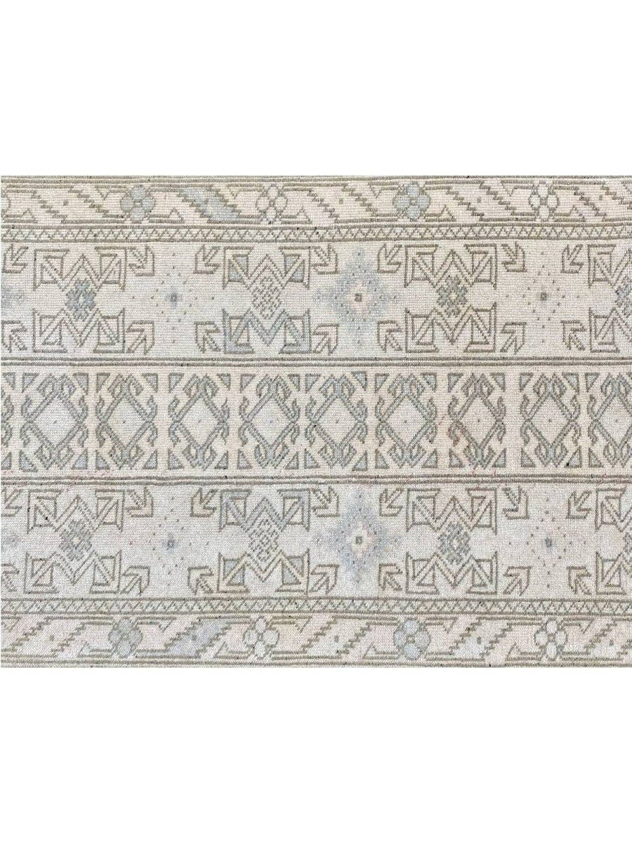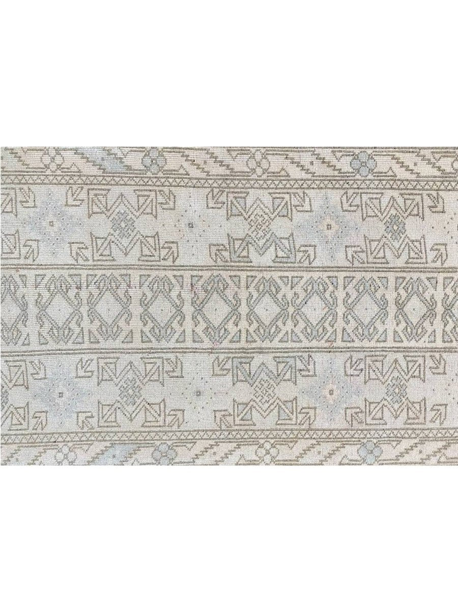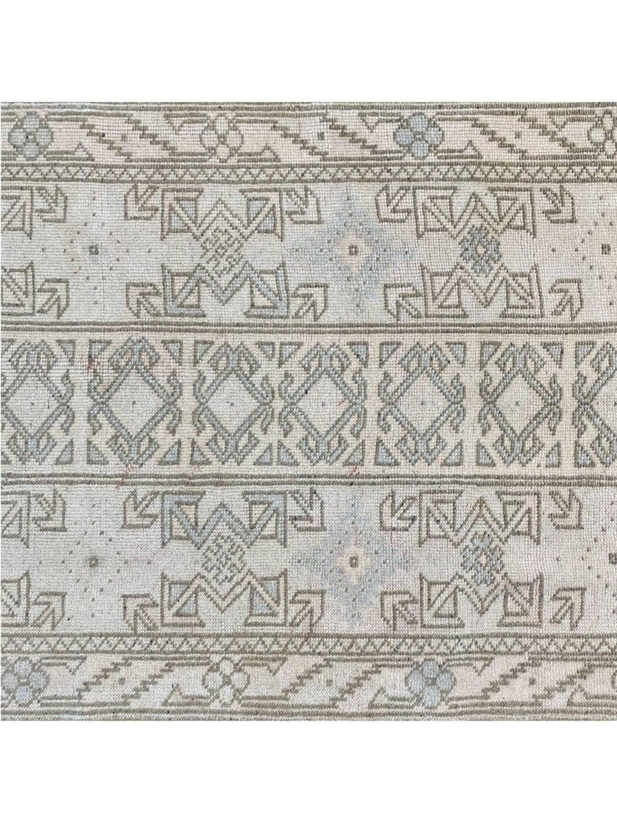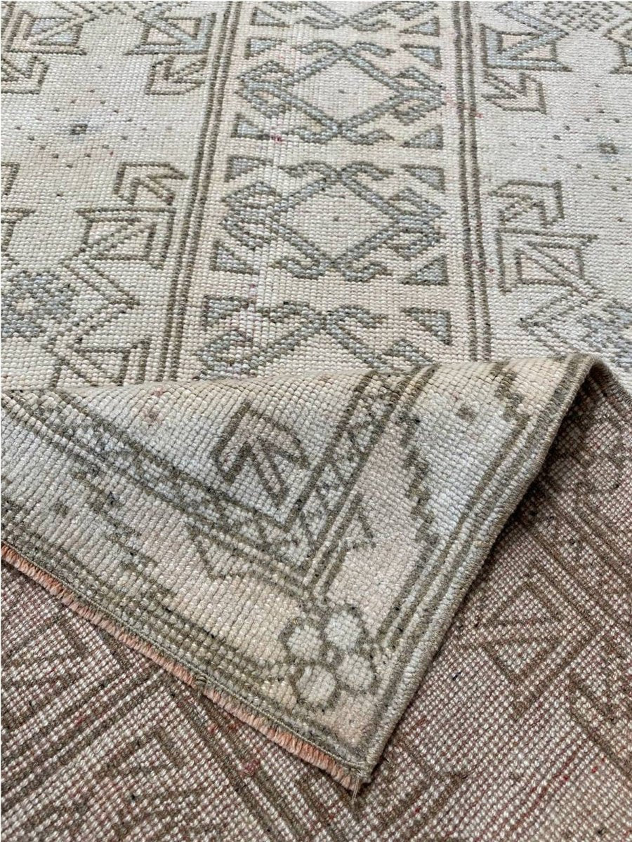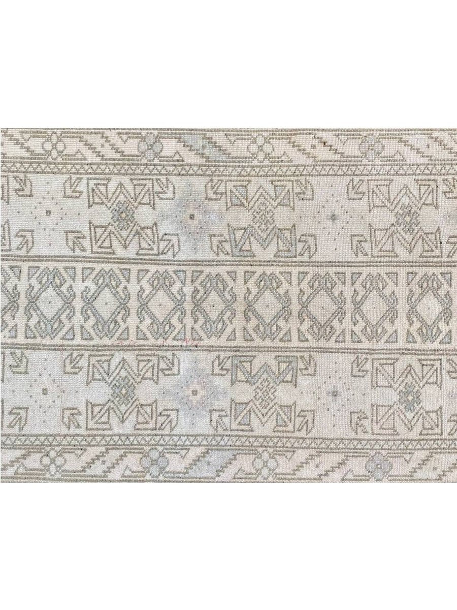 Elevate your space with the timeless elegance of this 3x15 old Turkish Anatolian hali runner. This exquisite runner showcases a classic geometric pattern, featuring a delicate lattice of diamond and cross motifs that exude traditional charm. The soft cream background is beautifully complemented by muted gray and beige tones, creating a serene and sophisticated look. A wide, intricately designed border frames the runner, adding depth and character to its overall design. Handcrafted in Turkey by skilled artisans, this runner is made from premium wool, ensuring durability and a luxurious feel underfoot. Perfect for hallways, entryways, or alongside a bed, this runner brings a touch of cultural heritage and refined artistry to any home.