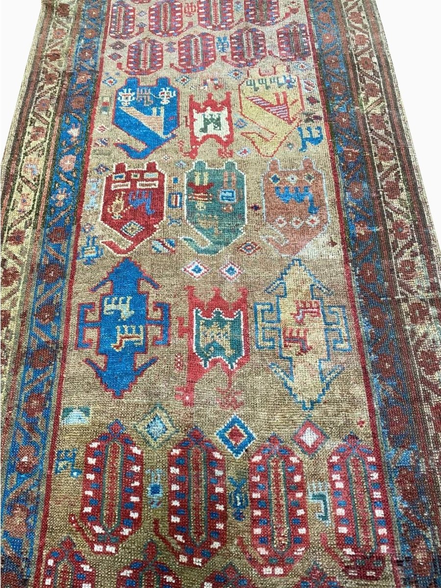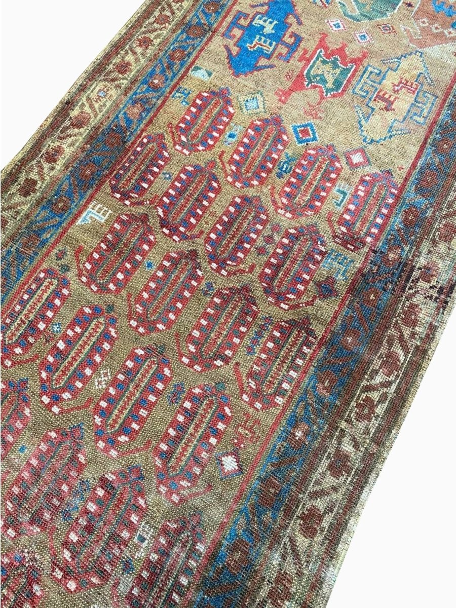 Embellish your house with the 3x16 Antique Persian Kord Runner rug, a true original that harmoniously blends traditional skill with classic style. Hand-knotted in premium wool, this exquisite rug boasts a geometric design that gives any room a chic look. Suitable for a lengthy hallway, kitchen, or as a chic touch in your living area, it produces a cozy and welcoming ambiance. The luxurious shades of red, brown, green, yellow, and blue add character and depth, and it's a great addition to any style of decor. This amazing rug is more than just a decor item, it's a work of art that lasts forever, adding to your home's personality. Get free shipping in the US.