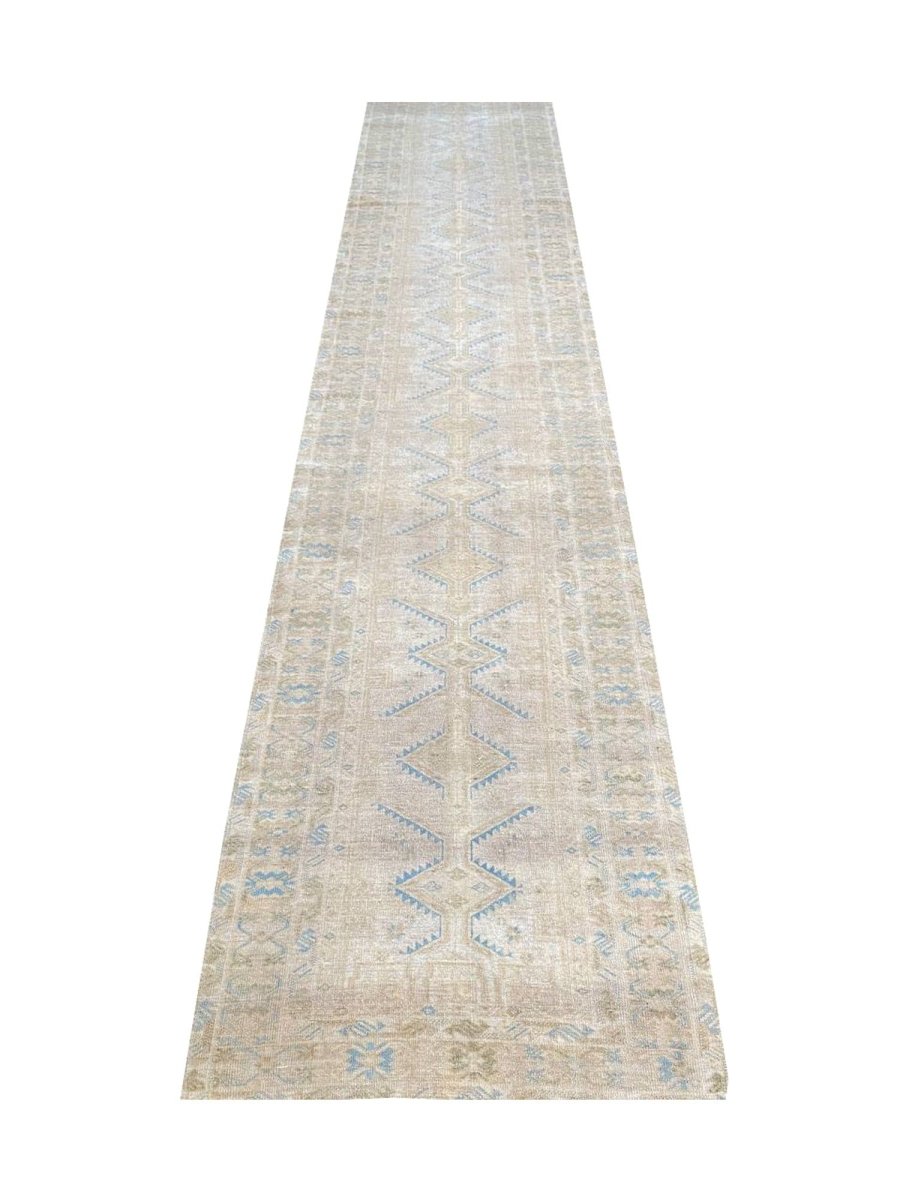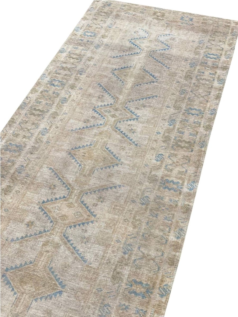 Step into authentic Persian craftsmanship with this 3x22 Old Persian Kord Runner Rug. Handwoven in Persia, this rug embodies the rich traditions of Persian weaving. Its elongated size makes it a perfect choice for hallways, entryways, and other narrow spaces, adding a touch of understated elegance to your home. The geometric pattern offers a timeless and sophisticated appeal. The color palette features soft, earthy beige and earthy brown tones, with subtle variations highlighting geometric motifs. These neutral hues create a versatile and calming ambiance. Crafted from durable wool, this runner rug is designed to withstand the test of time, becoming a cherished element in your decor for years to come. Enjoy the beauty and heritage of a handwoven Persian rug, plus free US shipping.