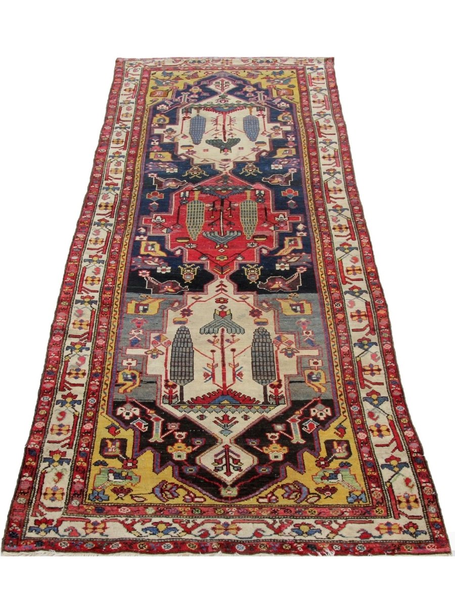 Enhance the vibrancy and intricate craftsmanship of your living room, bedroom, or dining area with this 5x11 Old Persian Bakhtiari Area Rug. Meticulously hand-knotted from fine wool, it features a detailed floral pattern woven in shades of black, ivory, warm tan, rust, green, and rich blue. This rug provides a plush, comfortable feel underfoot and is durable enough to withstand everyday use. Its unique design complements both traditional and eclectic interiors, adding character and warmth to any space. Enjoy free shipping within the US with your purchase.
