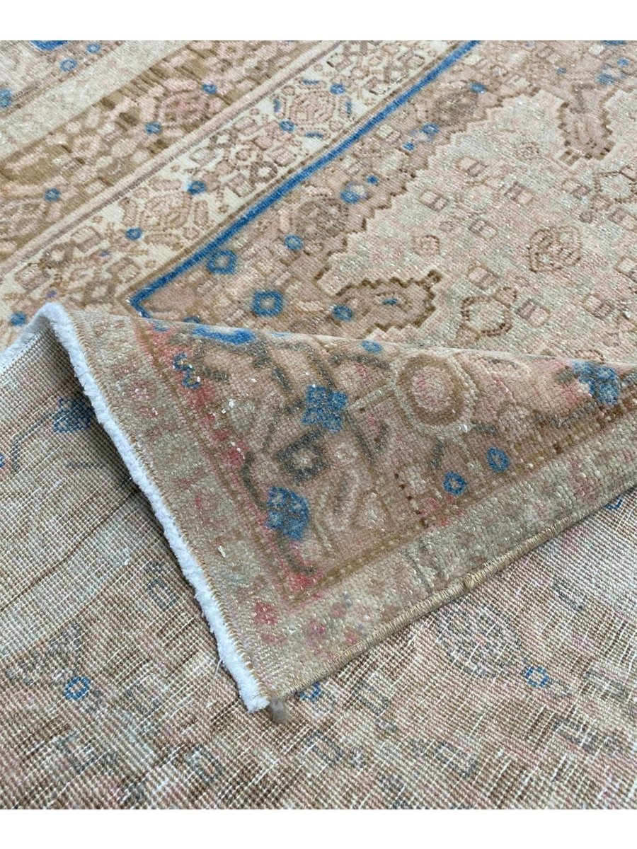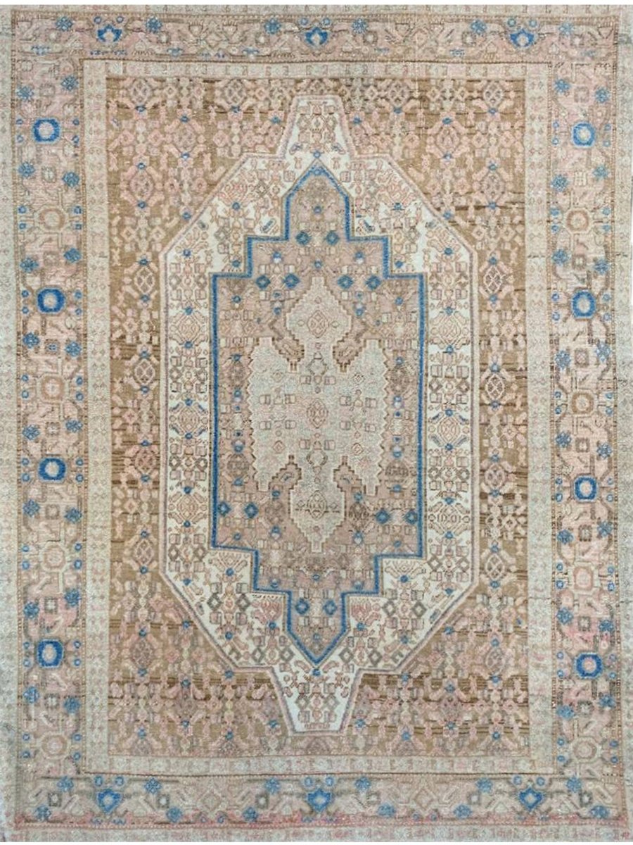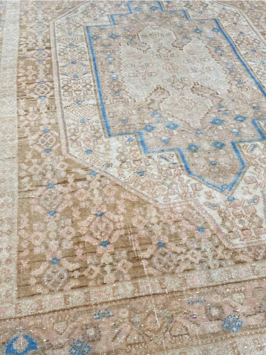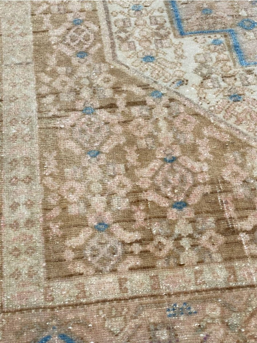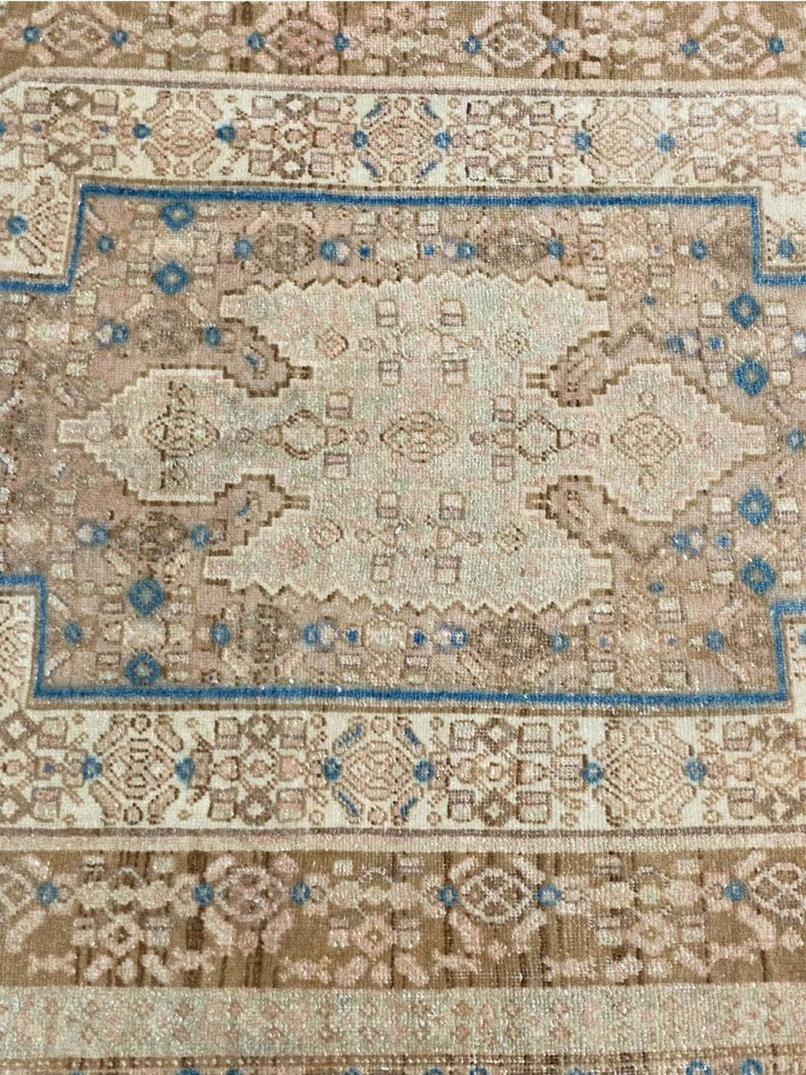 Add the beauty of this 4x5 Old Persian Kurdish Area Rug. Handwoven in Persia, this rug showcases skilled artistry. Ideal for entryways and small areas, this rug adds a touch of historical elegance to your decor, making a charming statement in compact living spaces, or home offices. The central medallion pattern gives it a sophisticated and eye-catching focal point. The color palette features warm tones of beige and light brown as primary colors, complemented by accents of blue and a soft hue within the geometric and traditional motifs. These colors work together to create a welcoming and distinctive ambiance. Made from durable wool, this rug is more than just a floor covering; it's a piece of history that will enhance your home decor for years. Enjoy the lasting charm of a handwoven rug, plus free US shipping.