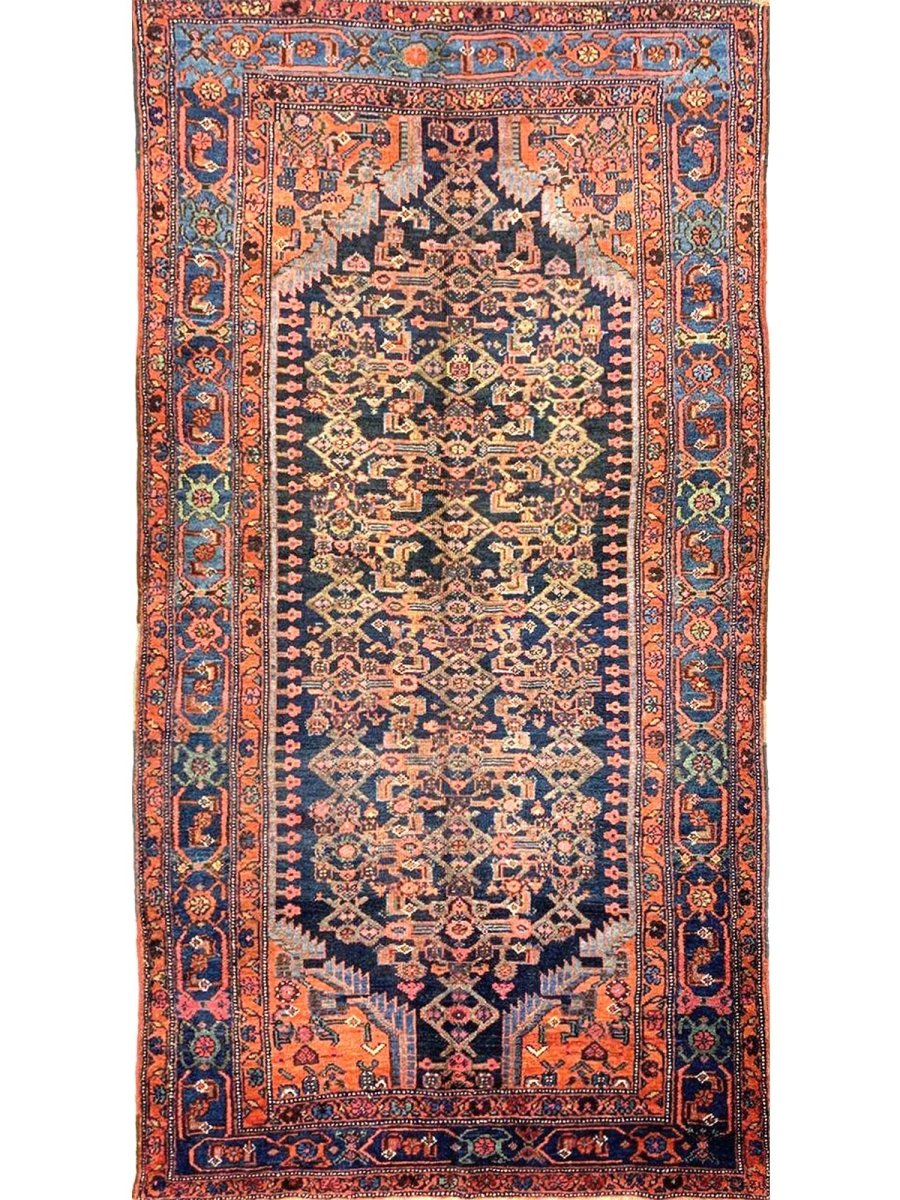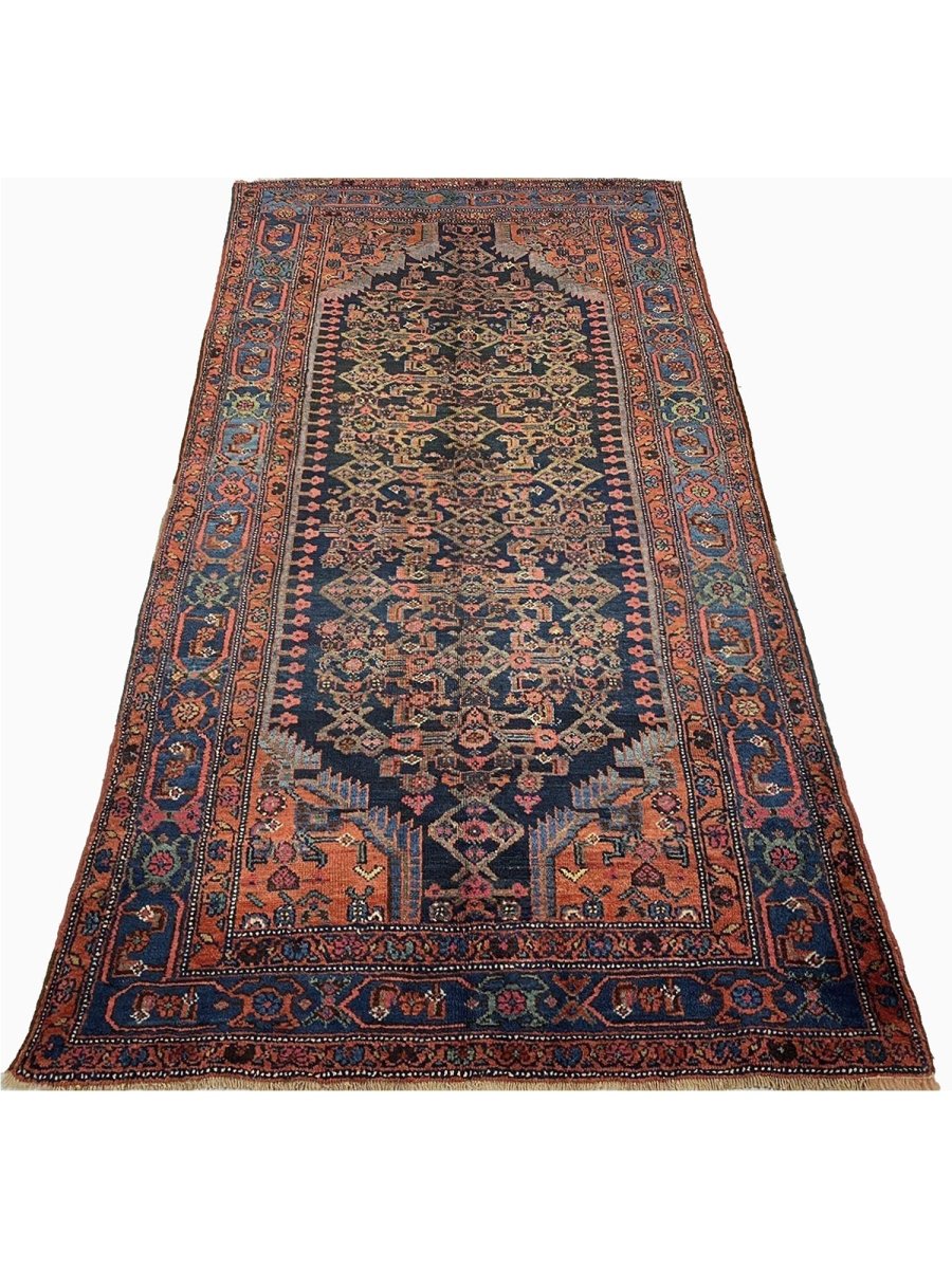 Brighten your living space with this beautiful 4x8 Old Persian Bijar area rug. This exquisite rug was carefully hand-woven in Persia's Bijar region, known for making hardy and beautiful rugs. The rug has a bold medallion design in the center surrounded by delicate motifs. The colors feature a rich, dark blue background, with the medallion and border displaying colors such as warm light blue, pale pink, green, and touches of creamy ivory. Made from long-lasting wool, Bijar rugs are highly durable and long-lasting. The 4x8 size is ideal for smaller spaces, such as living rooms, entryways, or bedrooms. This rug adds traditional beauty and a sturdy feel to any location. Indulge in the convenience of free US shipping when you bring this piece into your home.