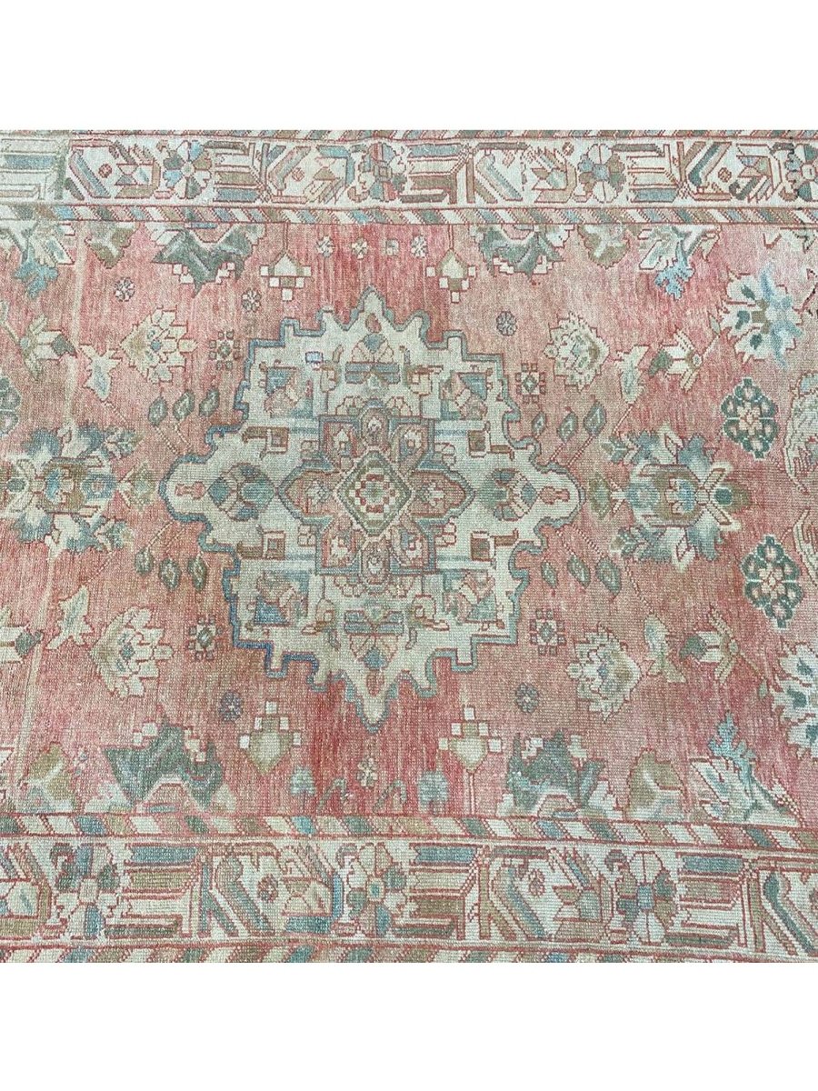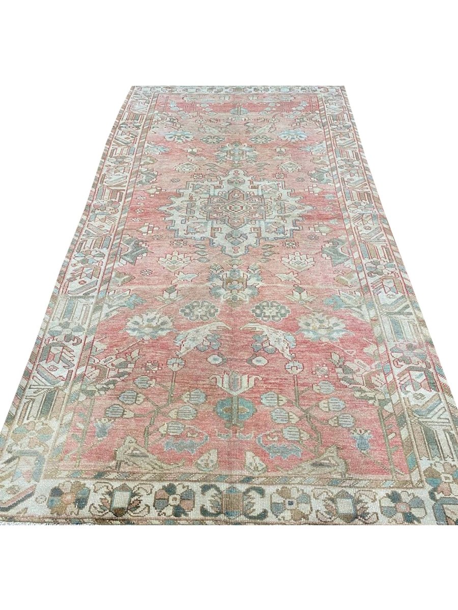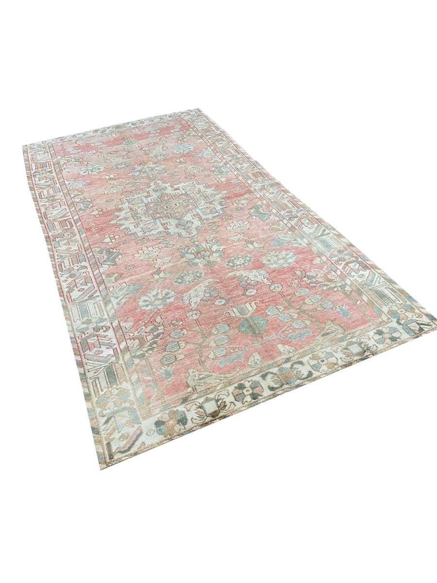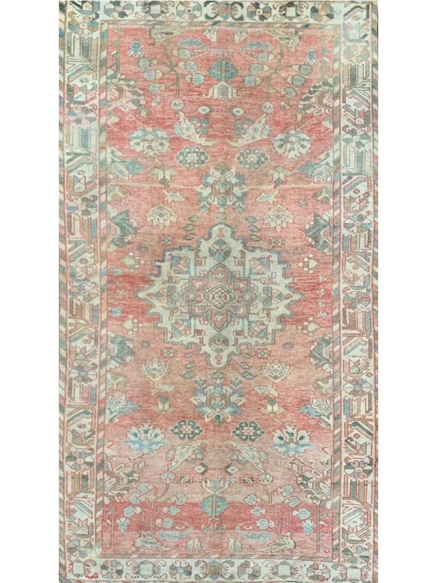 This 5x10 Old Persian Bakhtiari Area Rug is a unique treasure that showcases the rich history of Persian weaving and enhances your decor. This gorgeous traditional rug, made of high-quality wool, features a medallion design that blends perfectly with any decor style. It creates a cozy and inviting atmosphere, making it ideal for dining rooms, sophisticated living spaces, or as a focal piece in your foyer. Its sophisticated pink, beige, brown, and grayish-blue hues make it a versatile addition to your home. This stunning carpet is a remarkable work of art that enhances your living area and transcends mere decoration. Enjoy free US delivery.