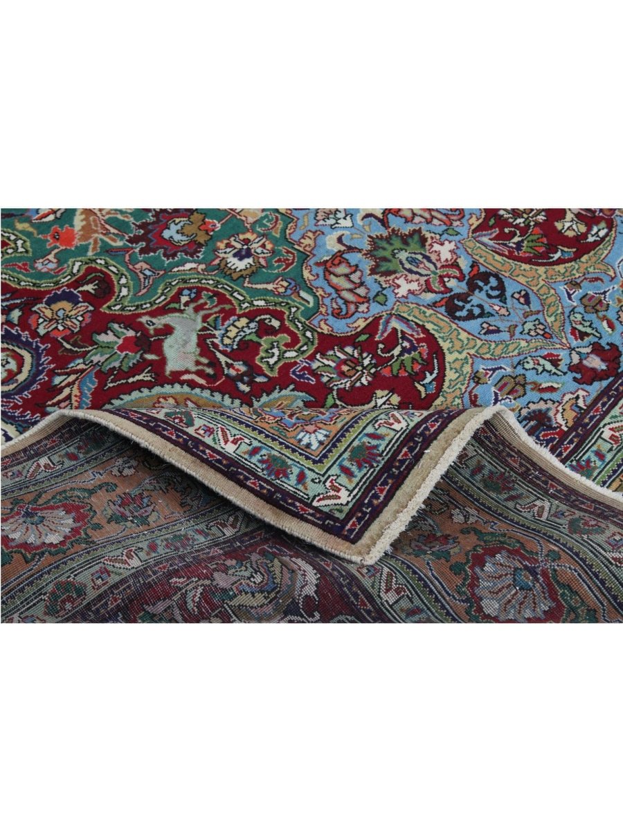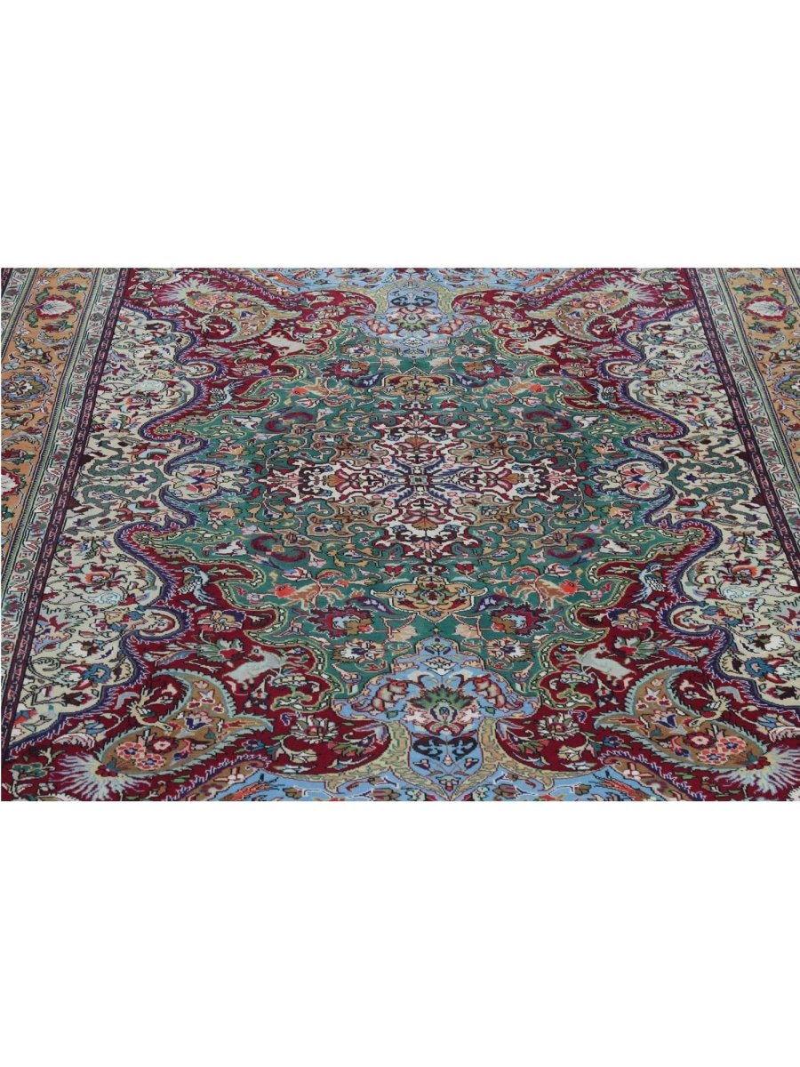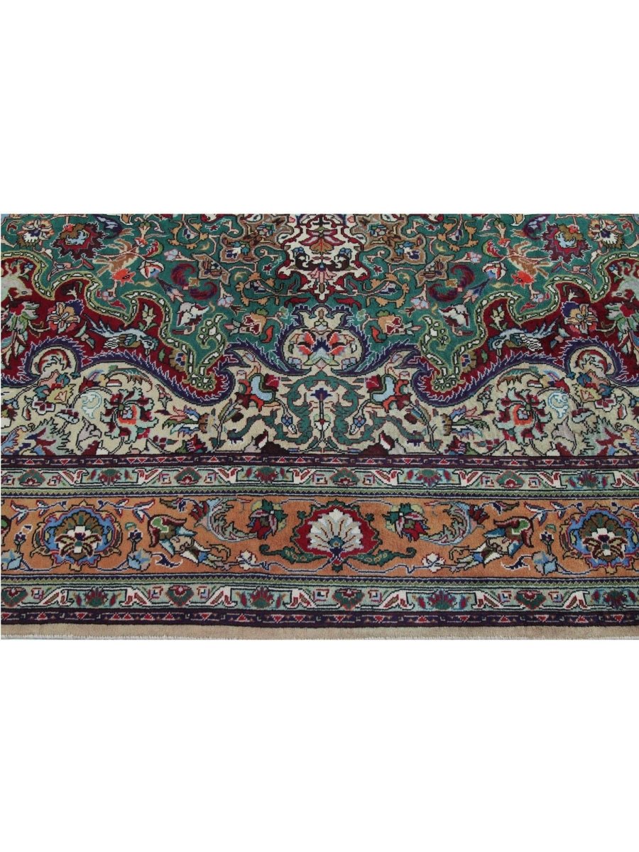 This 7x10 Old Persian Tabriz Area Rug will add elegance and coziness to any formal dining area, study, or living room. Its medallion pattern, expertly hand-knotted from high-quality wool, combines rust, green, beige, blue, and tan in a harmonious way. Its long-lasting weave guarantees both beauty and functionality, while the luxuriously rich layer provides exceptional comfort underfoot. This traditional rug adds classic beauty to your home and is ideal for areas where style and daily use coexist. Every order comes with free delivery within the United States.
