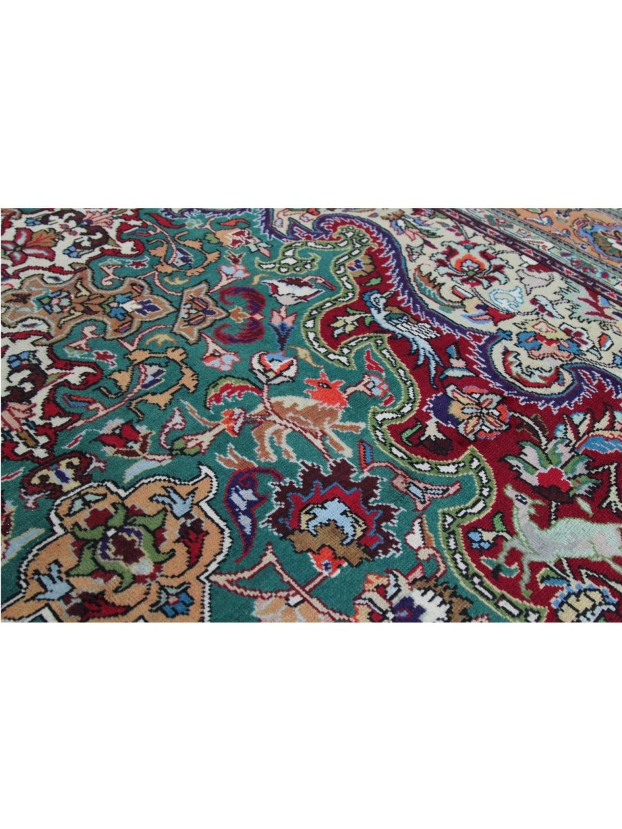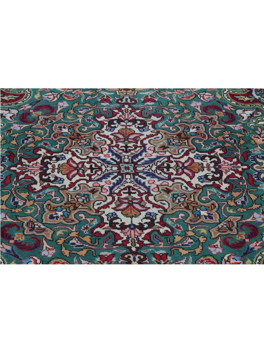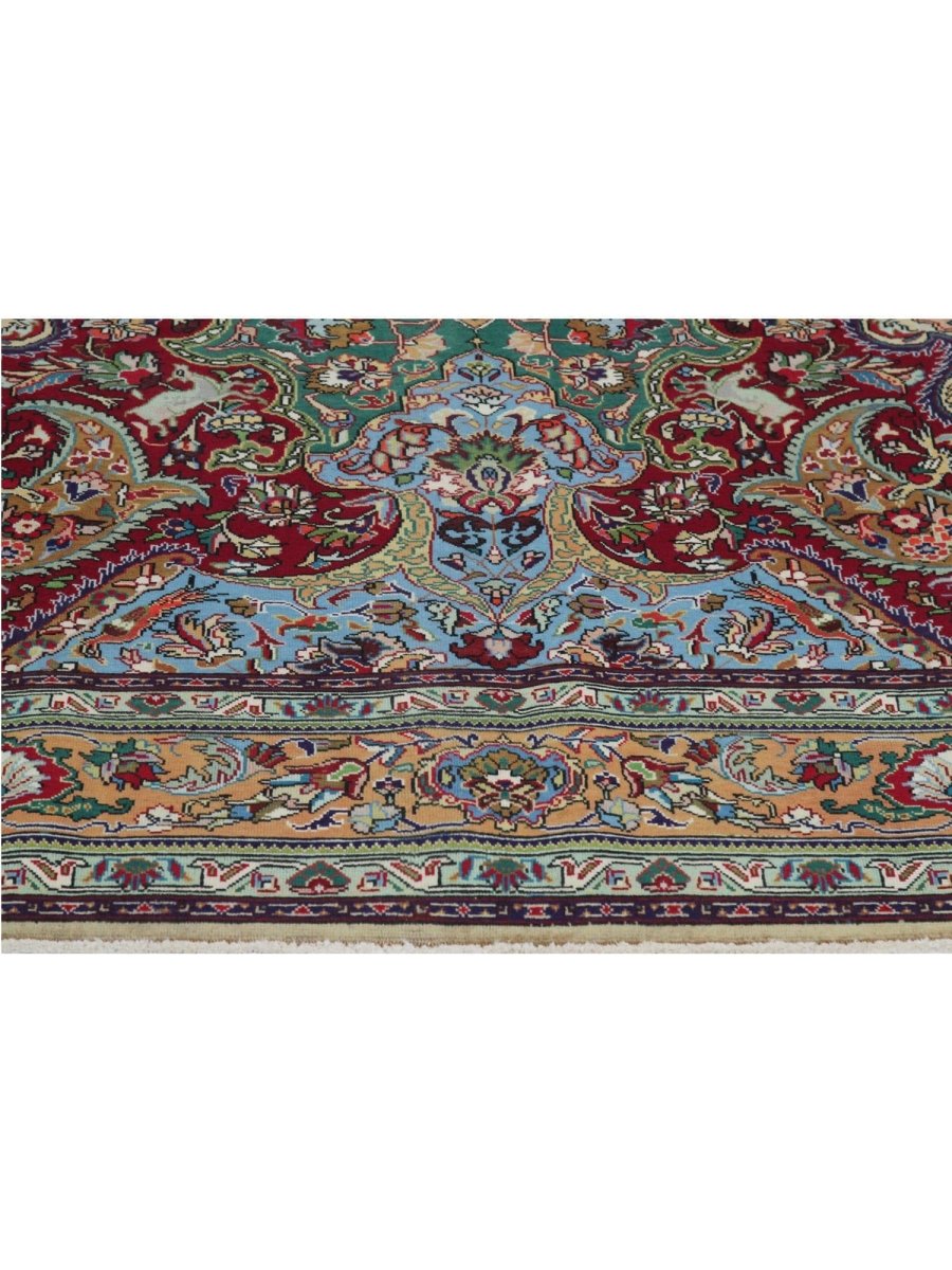 This 7x10 Old Persian Tabriz Area Rug will add elegance and coziness to any formal dining area, study, or living room. Its medallion pattern, expertly hand-knotted from high-quality wool, combines rust, green, beige, blue, and tan in a harmonious way. Its long-lasting weave guarantees both beauty and functionality, while the luxuriously rich layer provides exceptional comfort underfoot. This traditional rug adds classic beauty to your home and is ideal for areas where style and daily use coexist. Every order comes with free delivery within the United States.