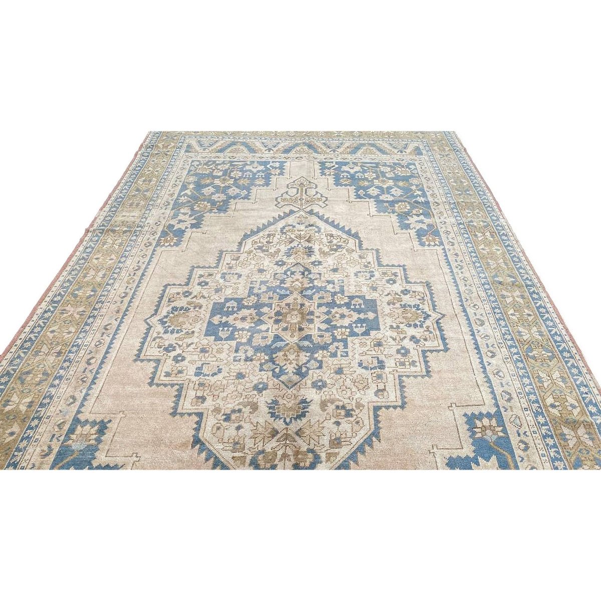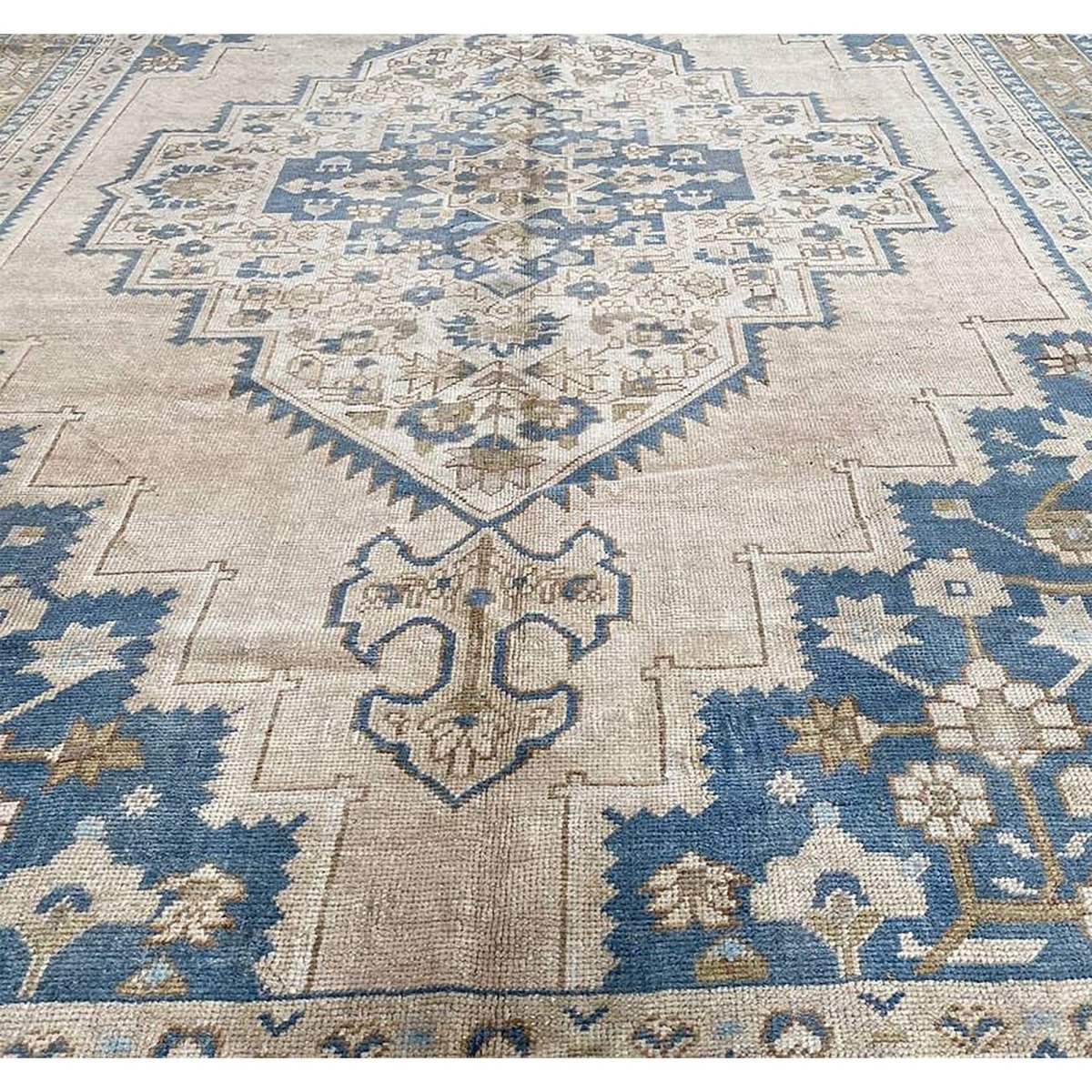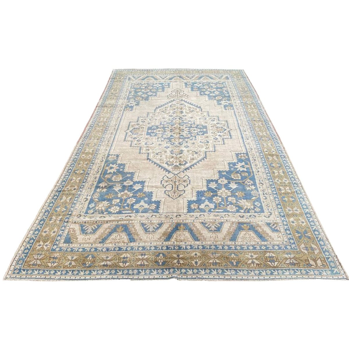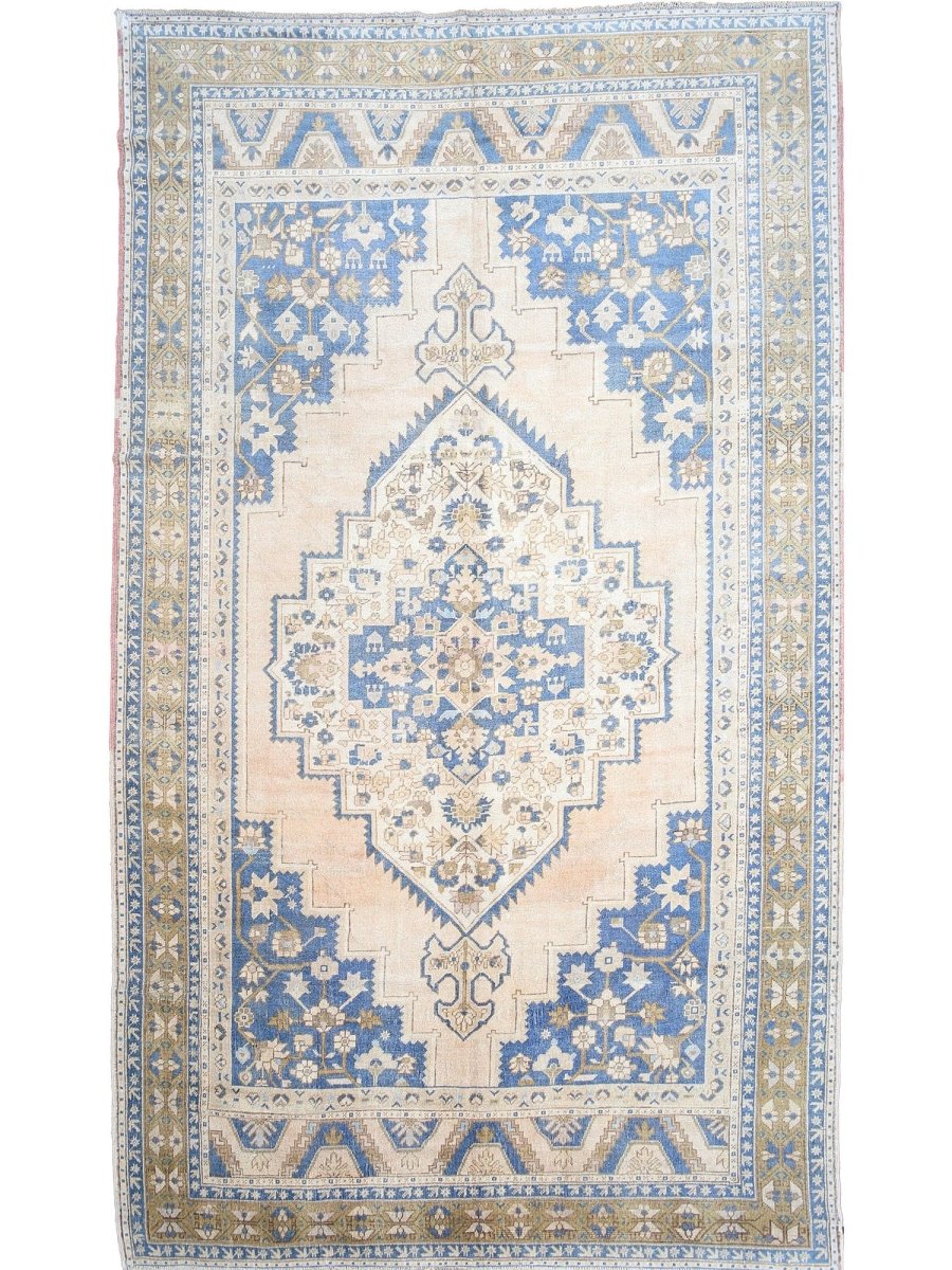 Experience the timeless beauty of traditional Turkish Anatolian craftsmanship with this exquisite 6x11 antique Turkish Anatolian area rug, expertly crafted using whole hand-knotted construction. The rug's stunning color palette features a beautiful combination of beige, light brown, and blue hues, creating a sense of warmth and sophistication. The central medallion pattern adds a touch of elegance and refinement, making this rug perfect for adding charm to any room. With its impressive size of 6'4" x 11'2", this rug is ideal for anchoring long, narrow spaces, such as hallways, corridors, or living rooms. This rug is not only a beautiful addition to any room but also a valuable collector's item, steeped in history and cultural significance.